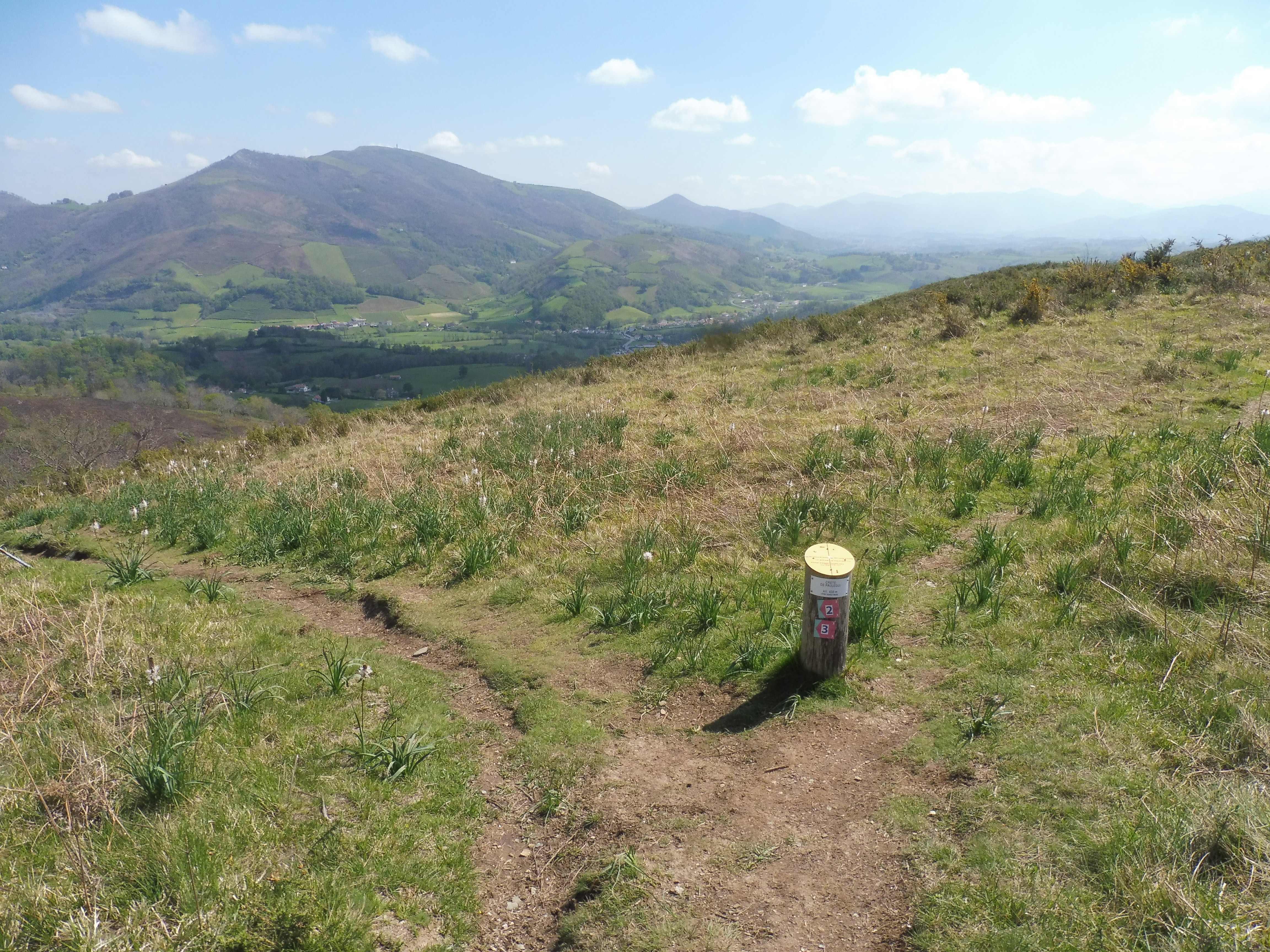 Crête de Paulegui (430 m) : suivre le chemin partant sur la gauche direction Saint-Étienne-de-Baïgorry, balisé en rouge et blanc