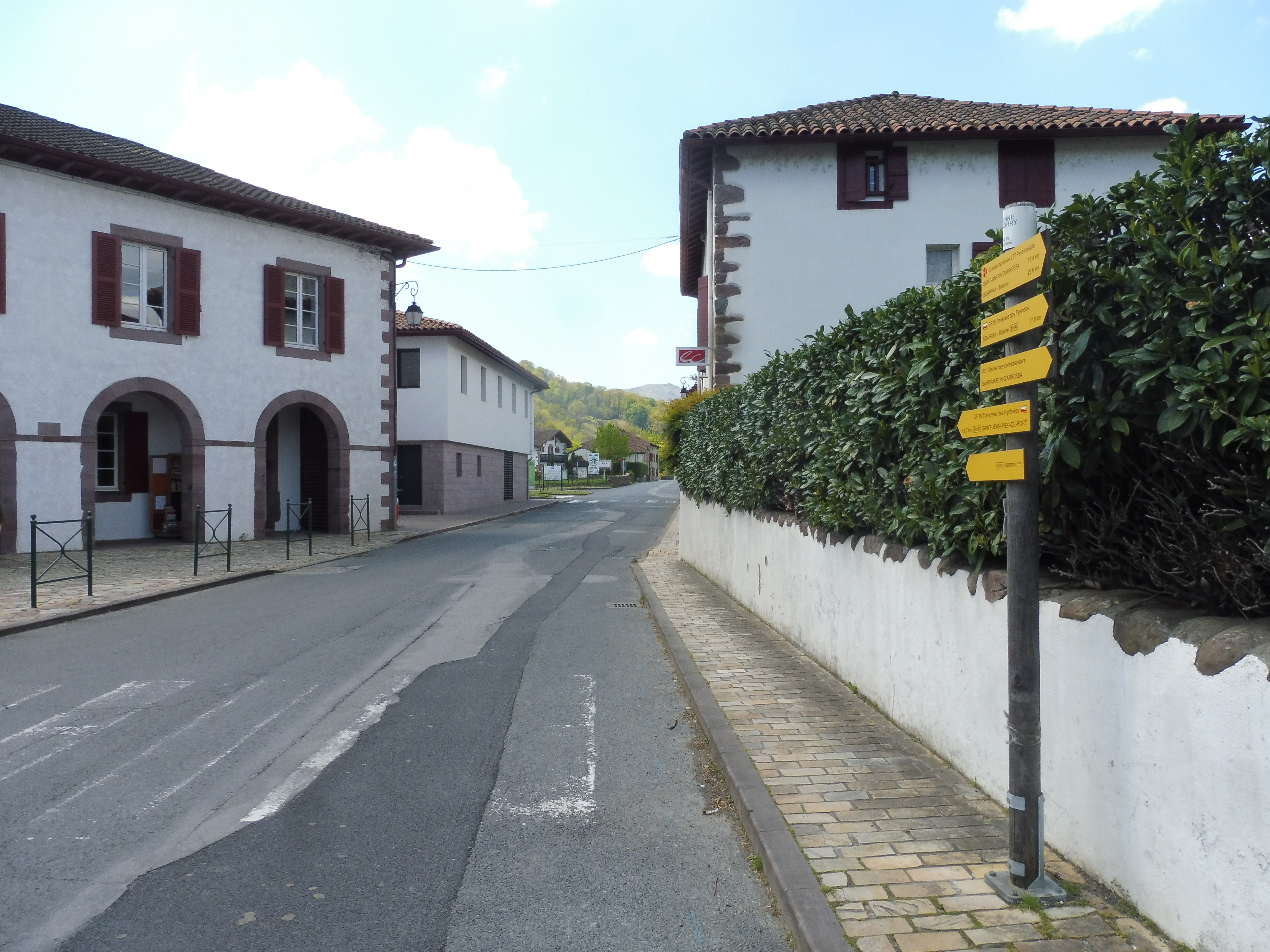 Départ Saint-Étienne-de-Baïgorry (154 m) : suivre la rue partant tout droit direction Saint-Martin-d'Arrossa, balisé en orange