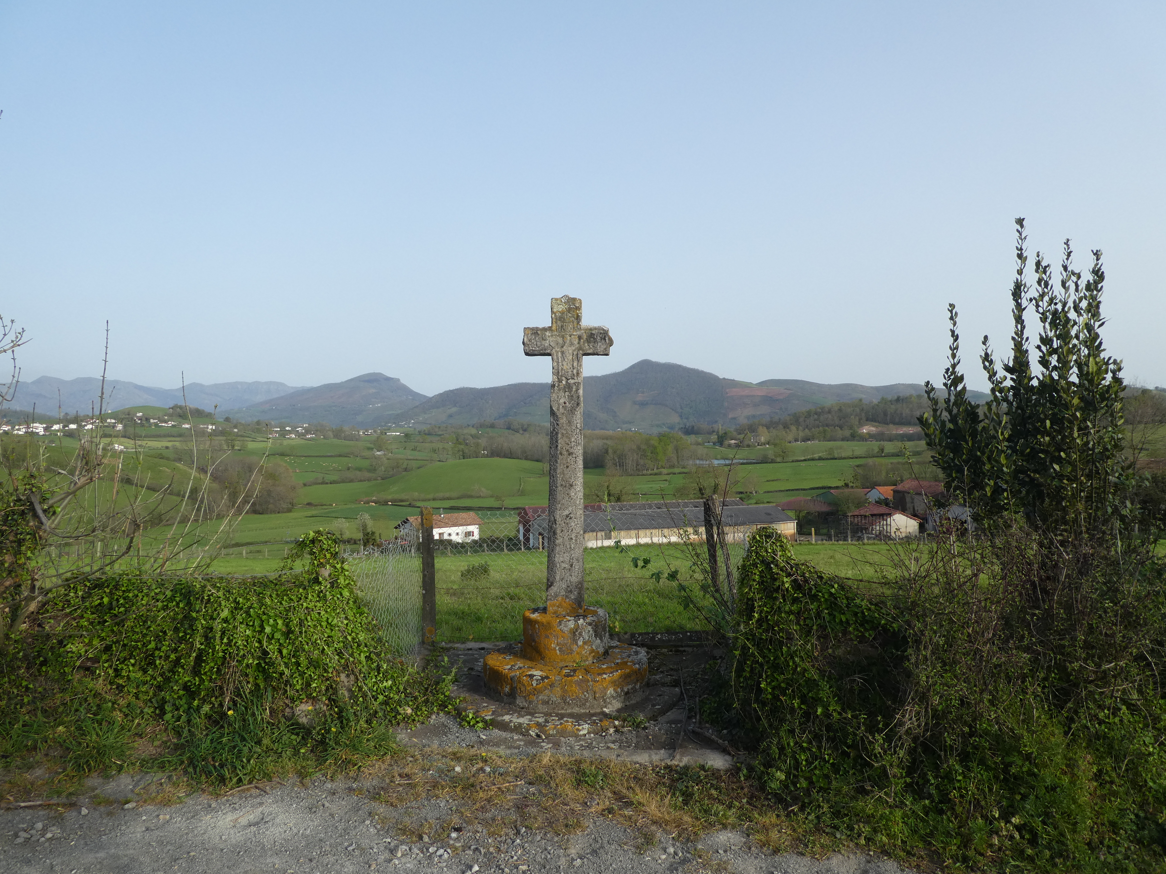 A cette intersection marquée par la présence d'une croix au niveau du lieu-dit "Gamaberria" (150 mètres après la précédente), suivre la route montant sur la gauche direction Burgistako Borda