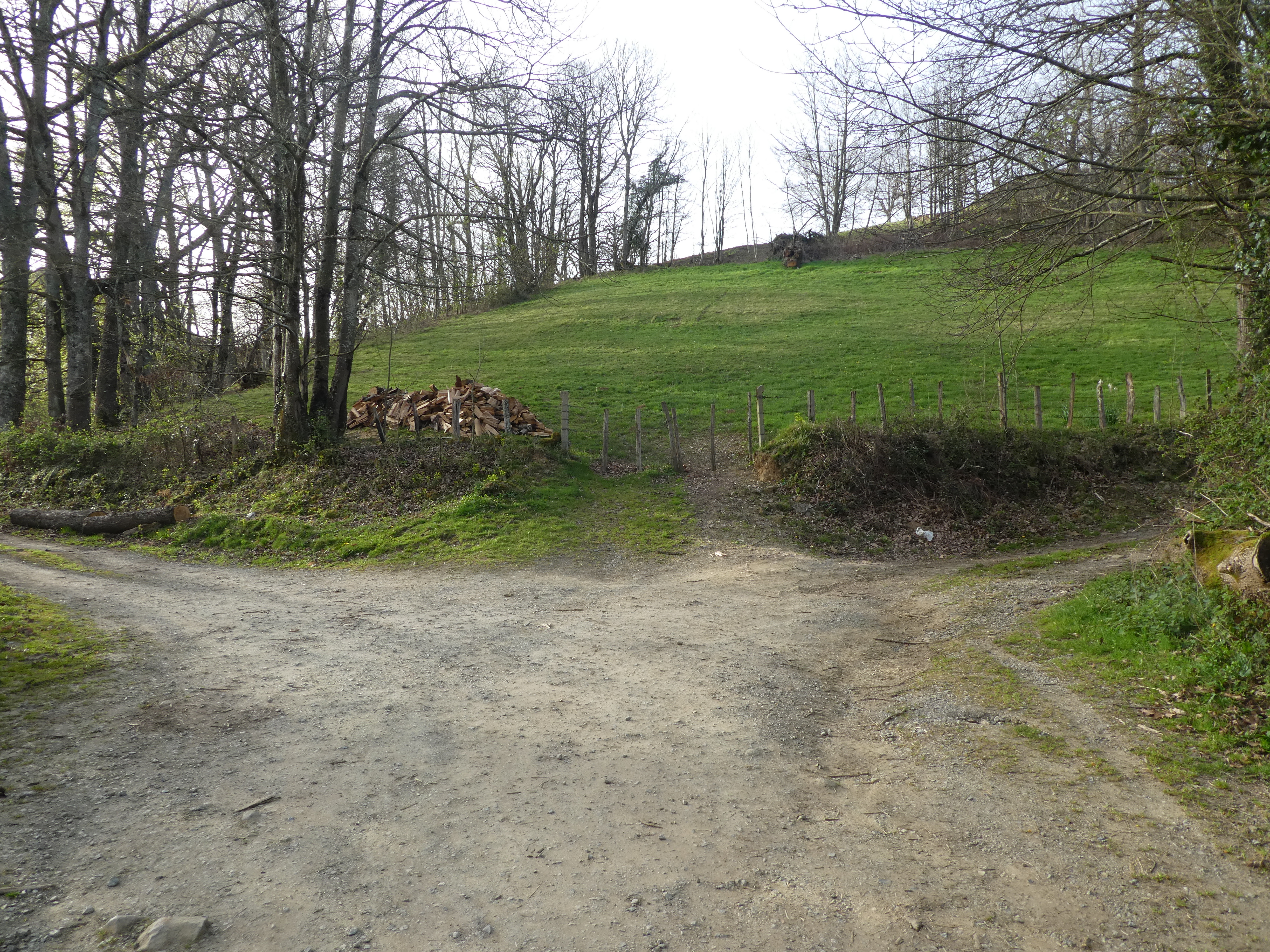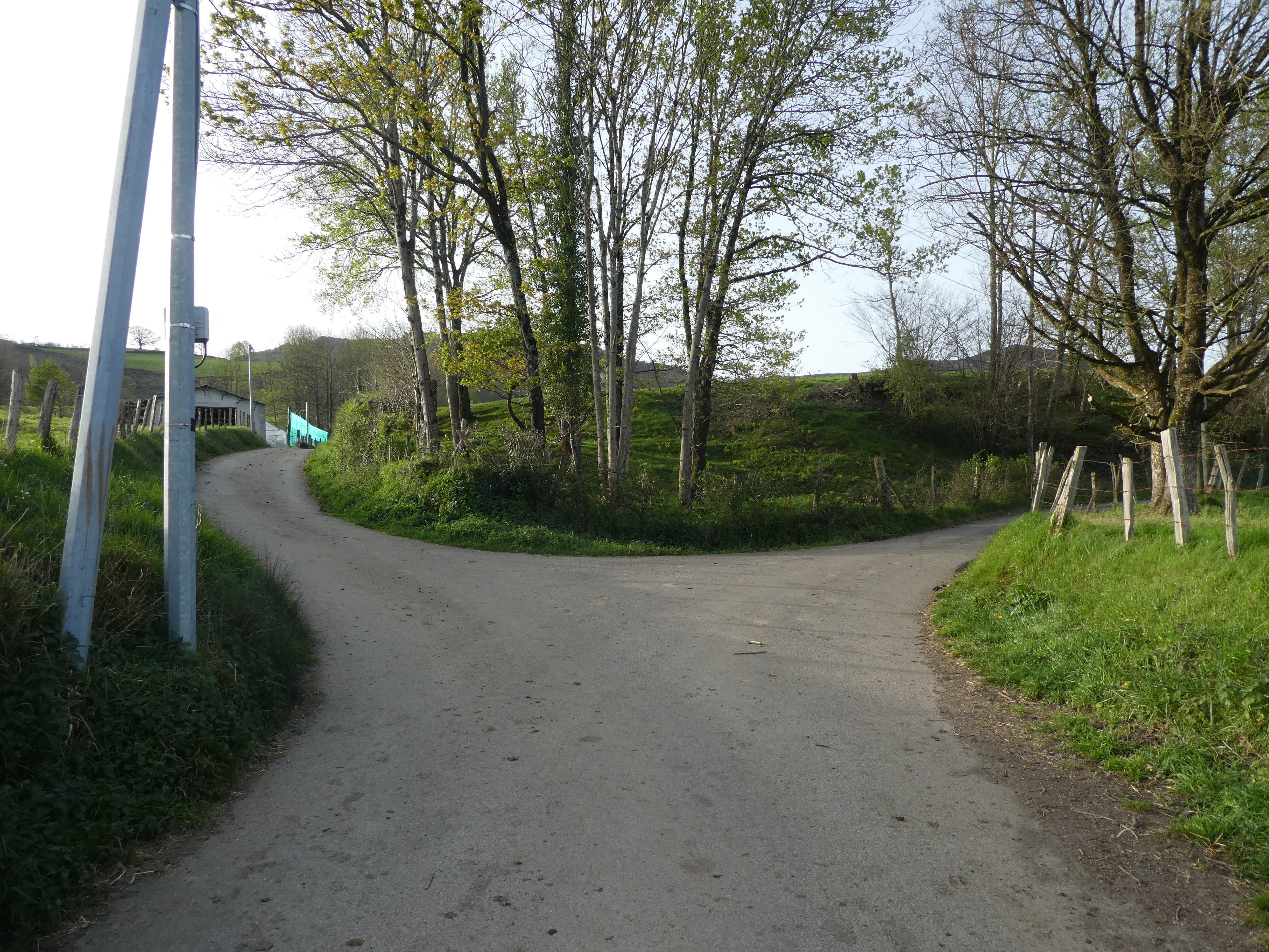 A ce croisement (900 mètres après avoir passé le lieu-dit "Burgistako Borda"), continuer à suivre le large chemin partant sur la gauche (ou celui montant tout droit) direction Gatarre