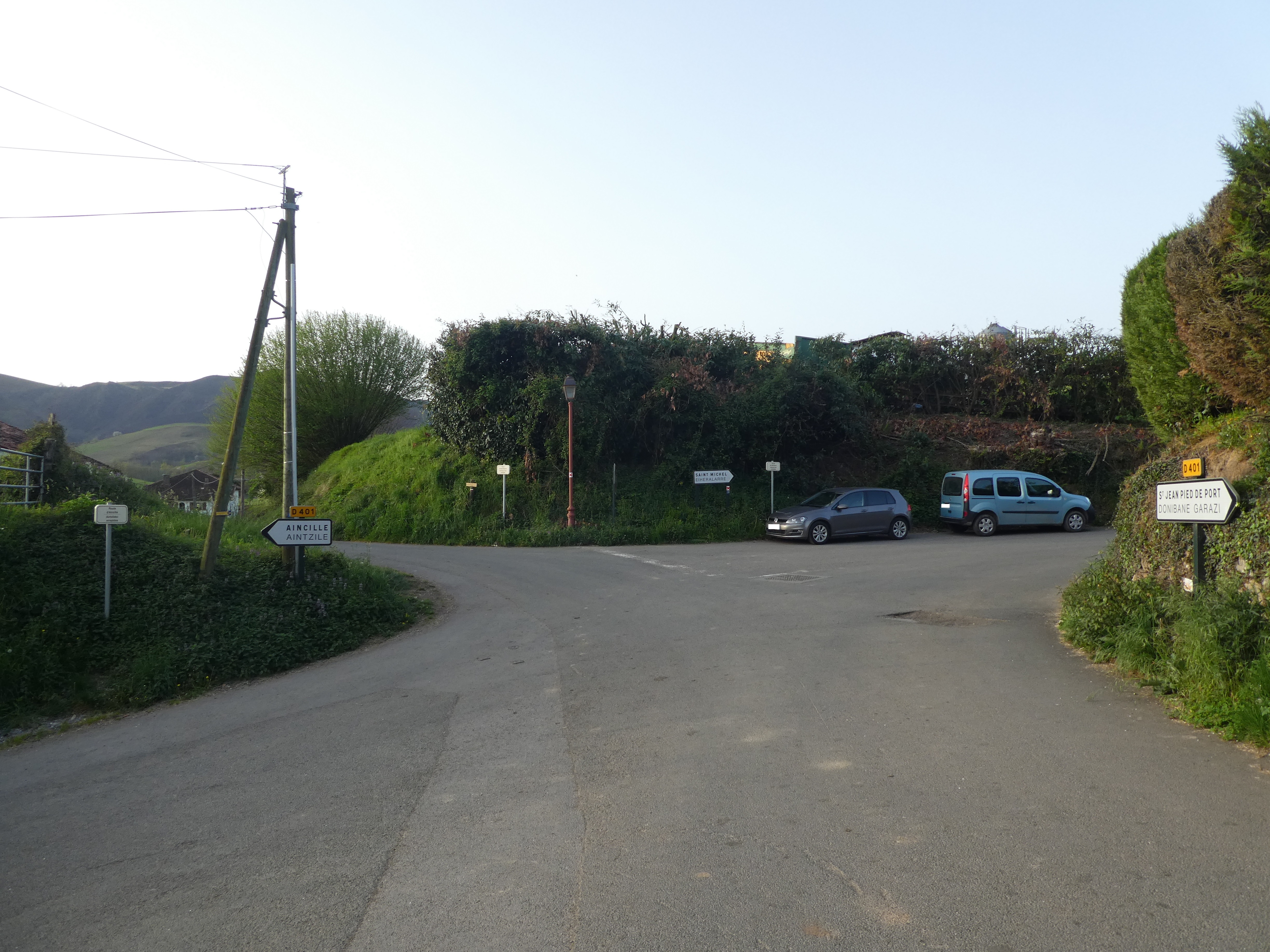 A cette intersection située à l'entrée d'Aincille (1300 mètres après la précédente), suivre la rue montant tout droit direction Estérençuby