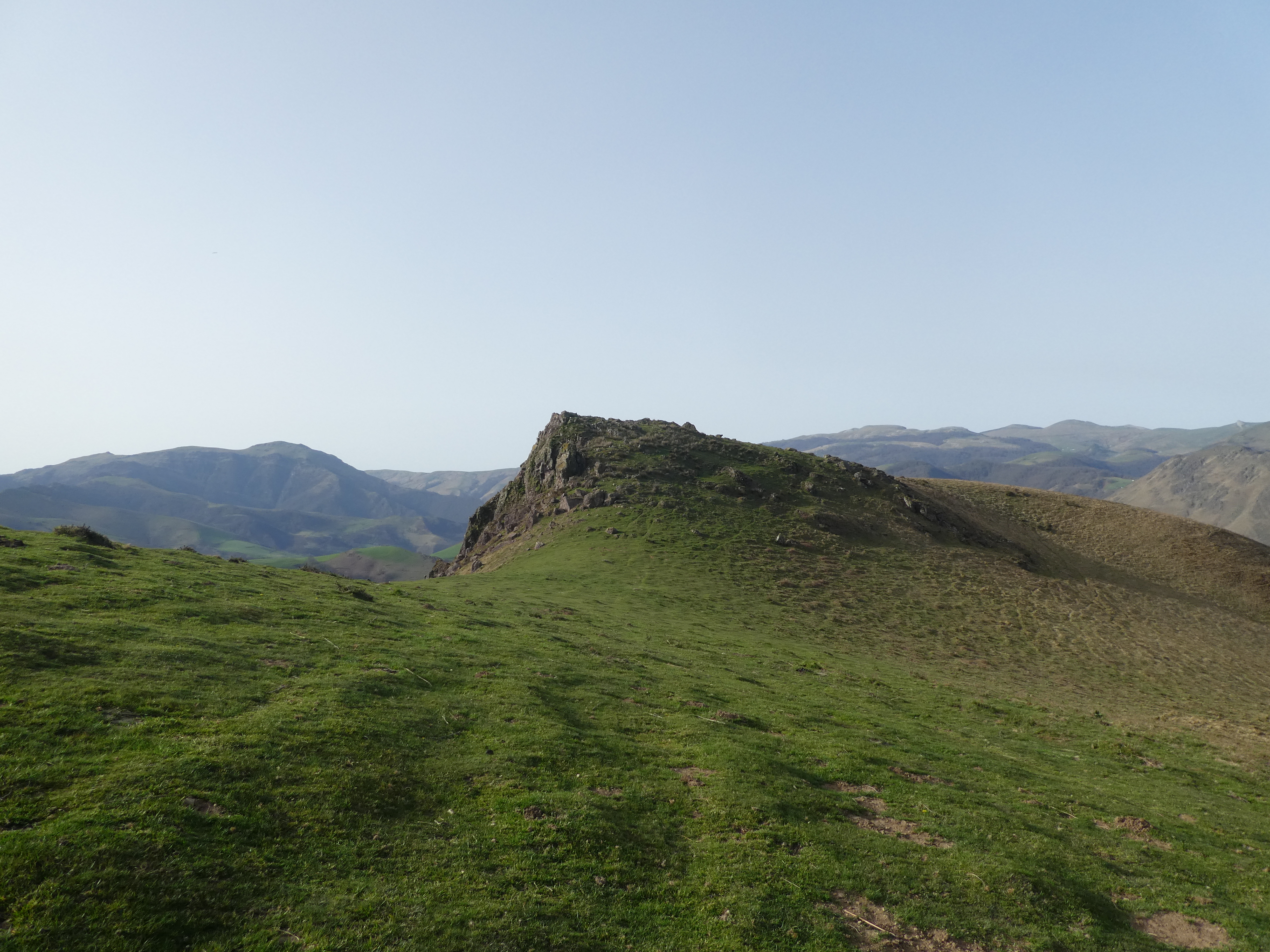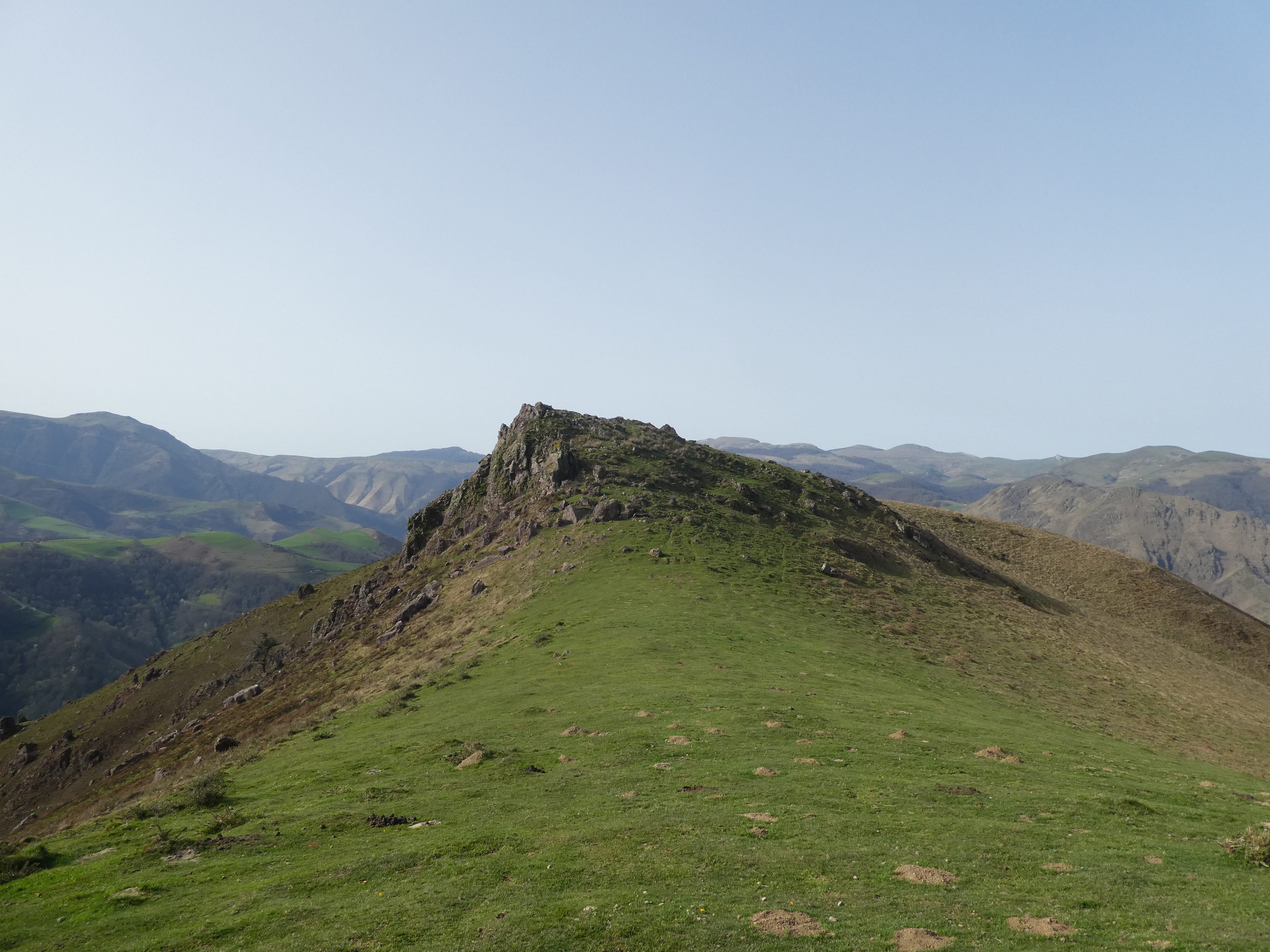 Dès que le fil de crête est atteint (200 mètres après le précédent), suivre ce dernier vers le sommet situé le plus à l'Ouest (le plus à droite) direction Gatarre