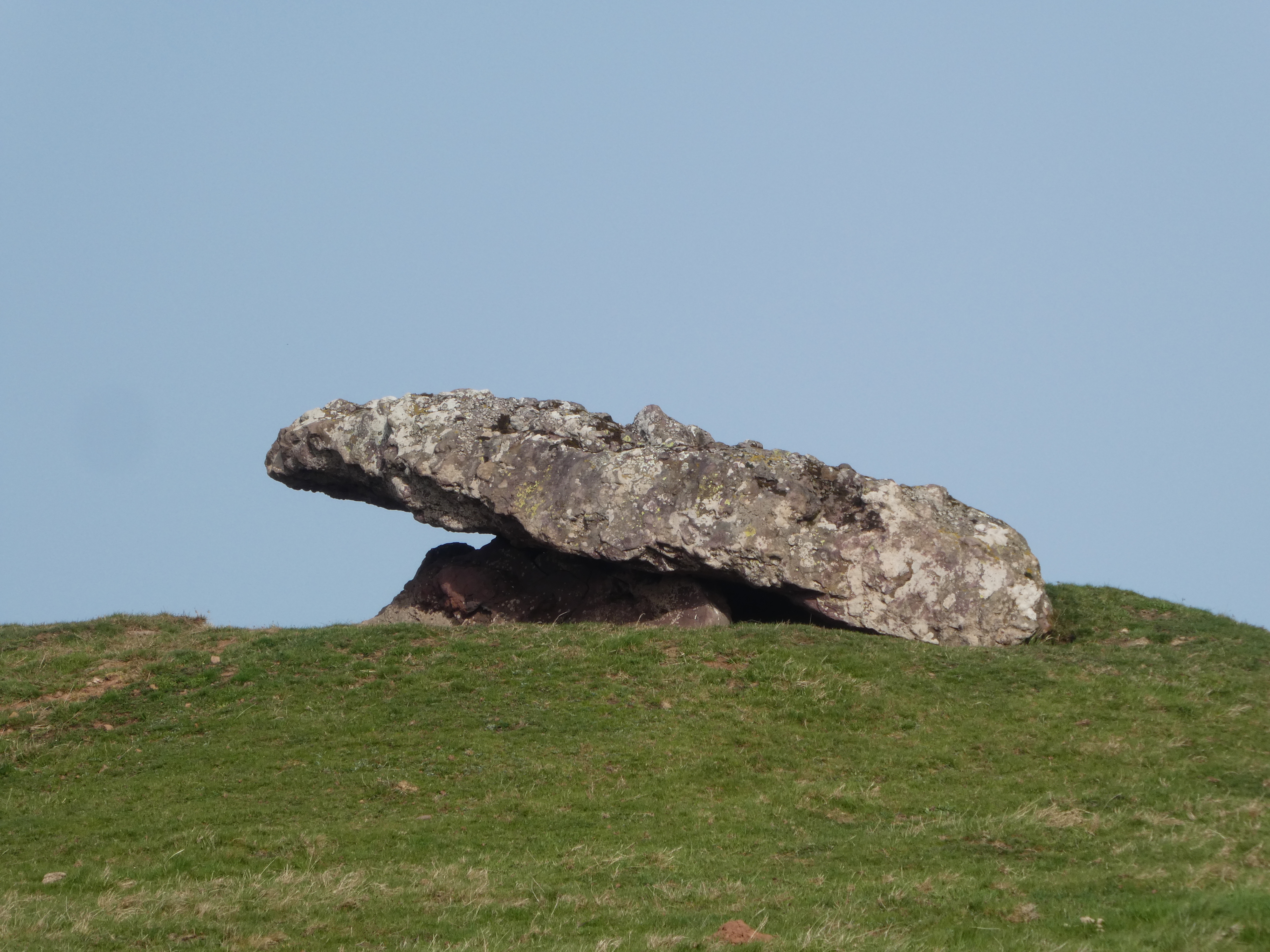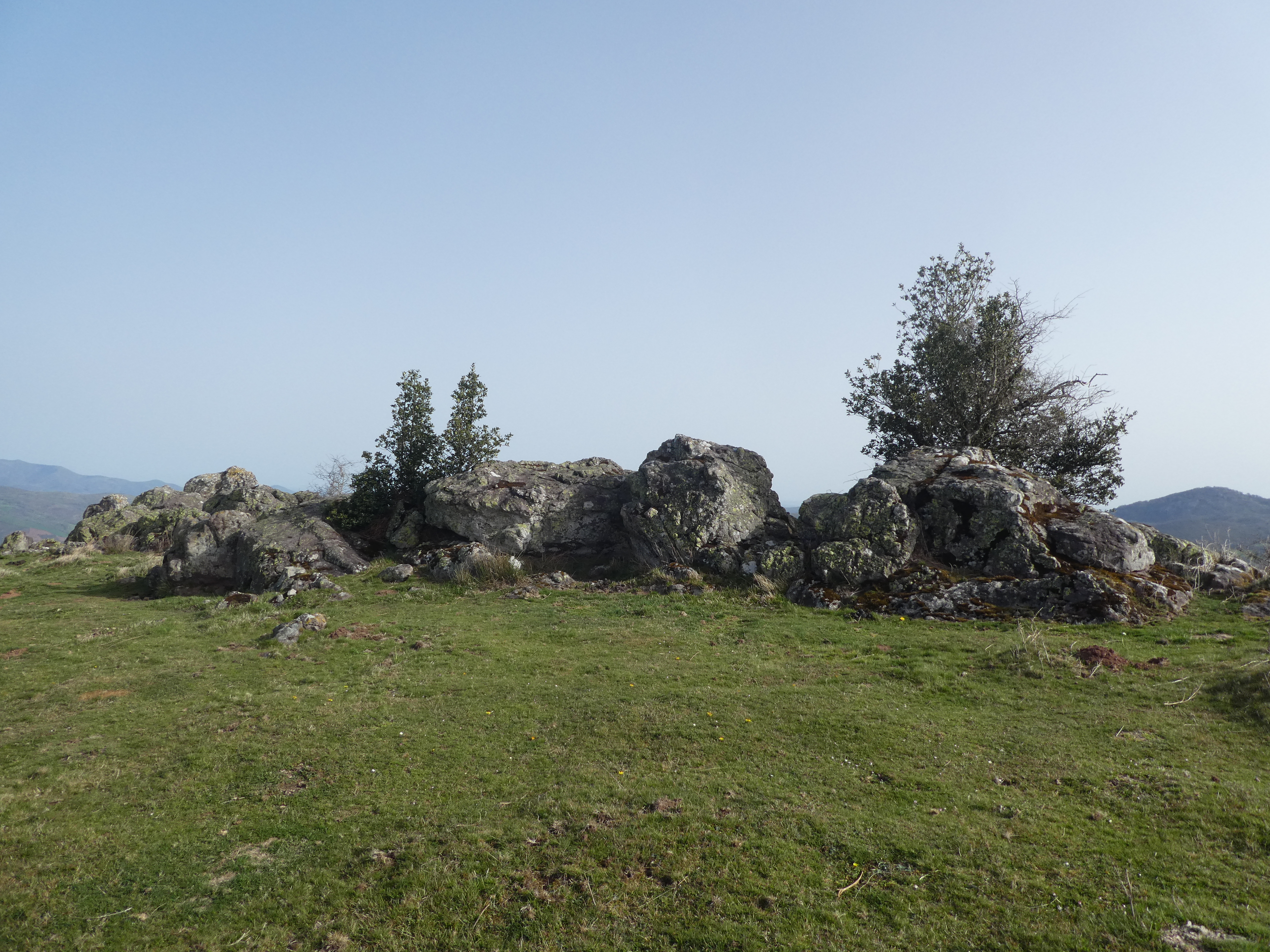 Le Dolmen de Buluntza situé dans un enclos clôturé à taureaux "inaccessible" ; repartir par le même chemin que celui de l'aller direction Handiagamendi, balisé en jaune