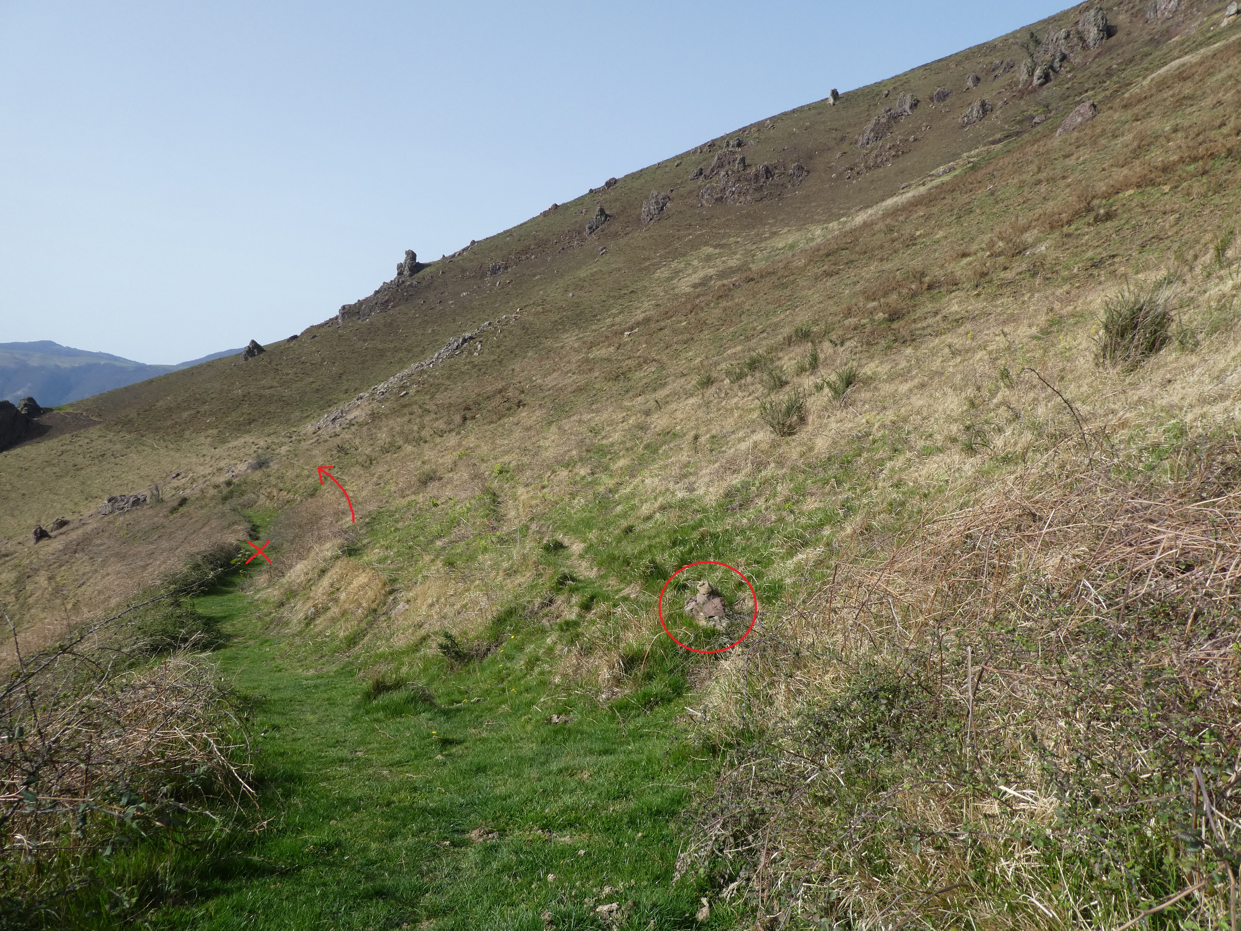 - Aucun balisage sur l'itinéraire entre le départ et le sommet de Gatarre et entre le sommet de Gatarre et la jonction avec le GR10 près du lieu-dit "Ernagako Borda"