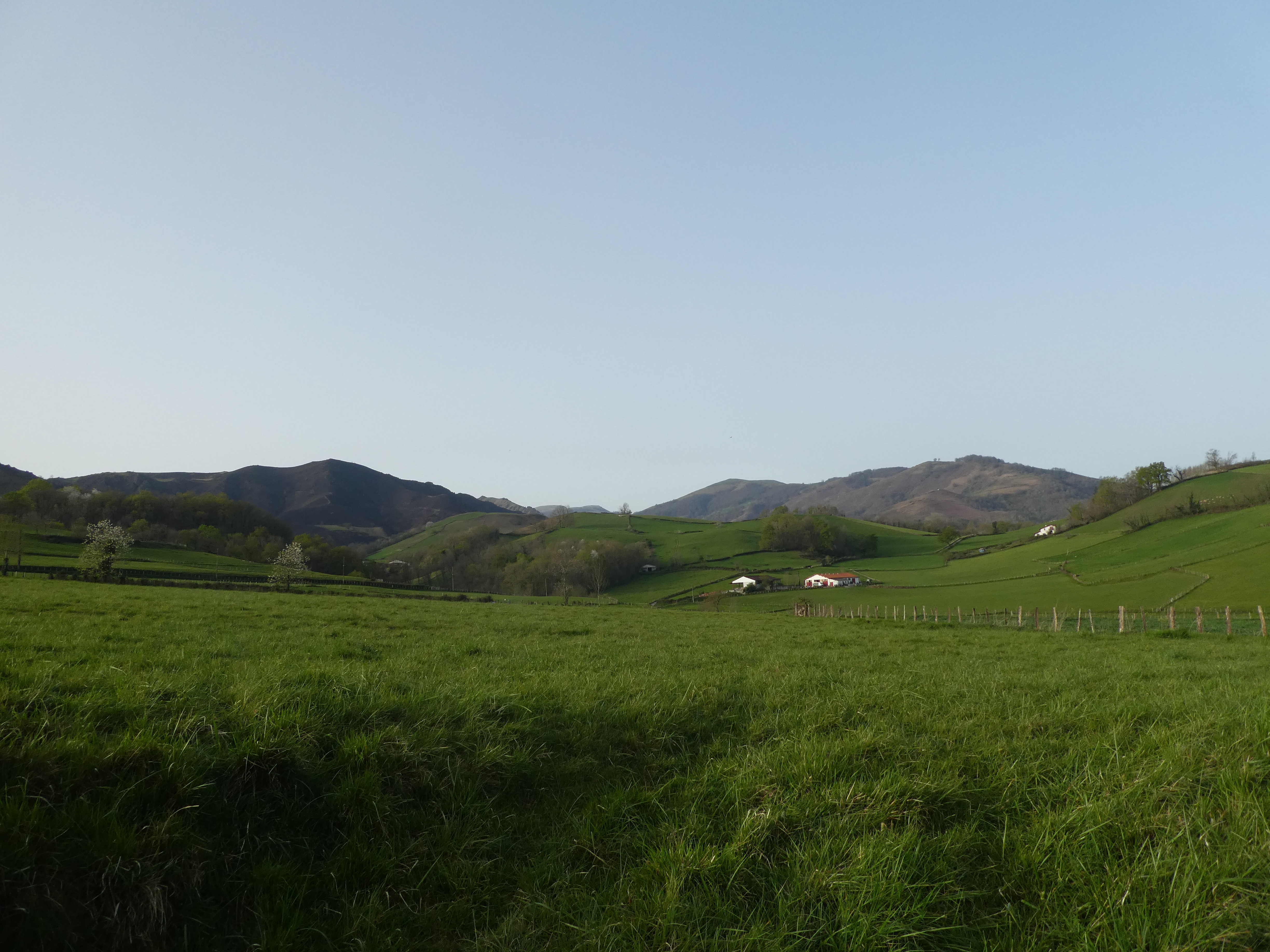 Dès que la clôture de la propriété d'Ernagako Borda est atteinte (900 mètres après le précédent croisement), suivre cette dernière en la longeant sur la droite jusqu'à la jonction avec le GR10 direction Handiagamendi