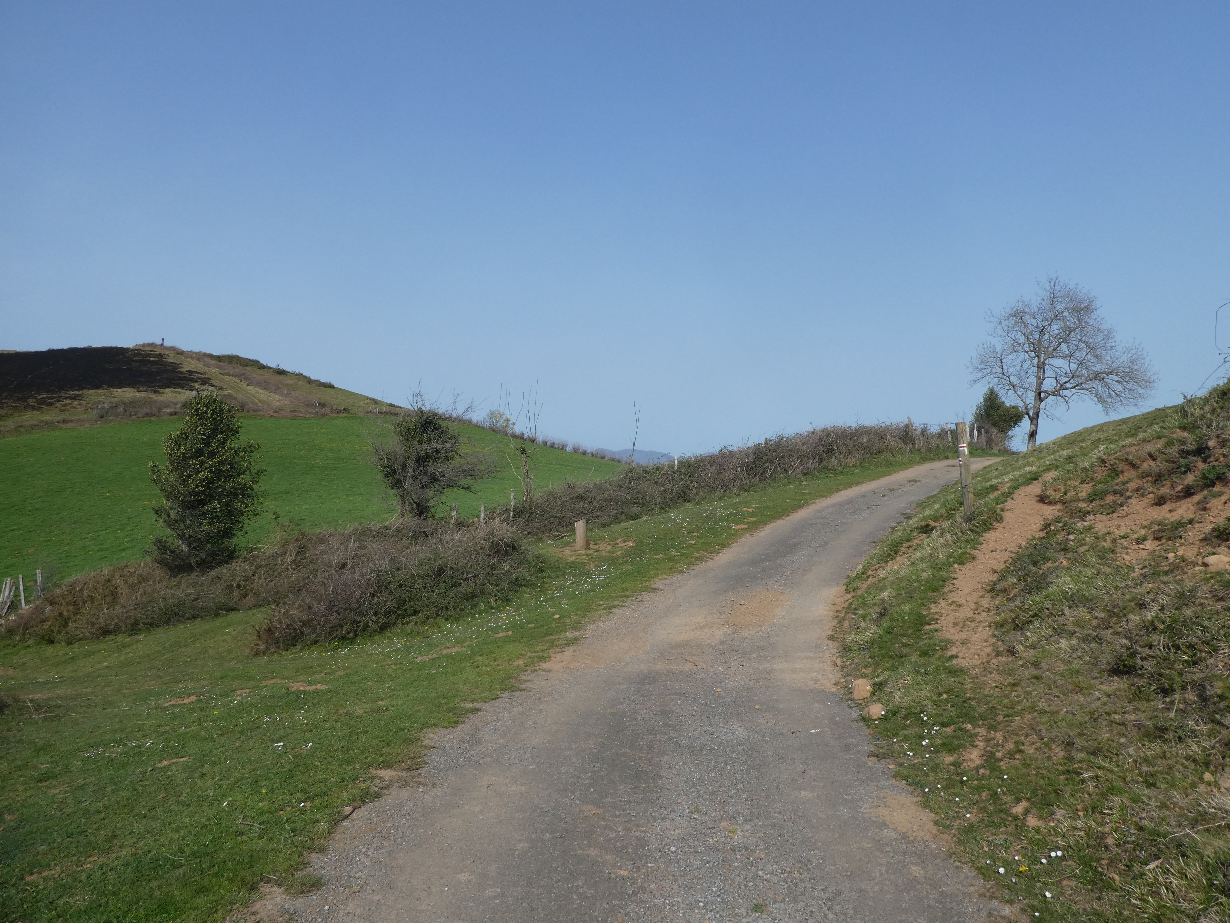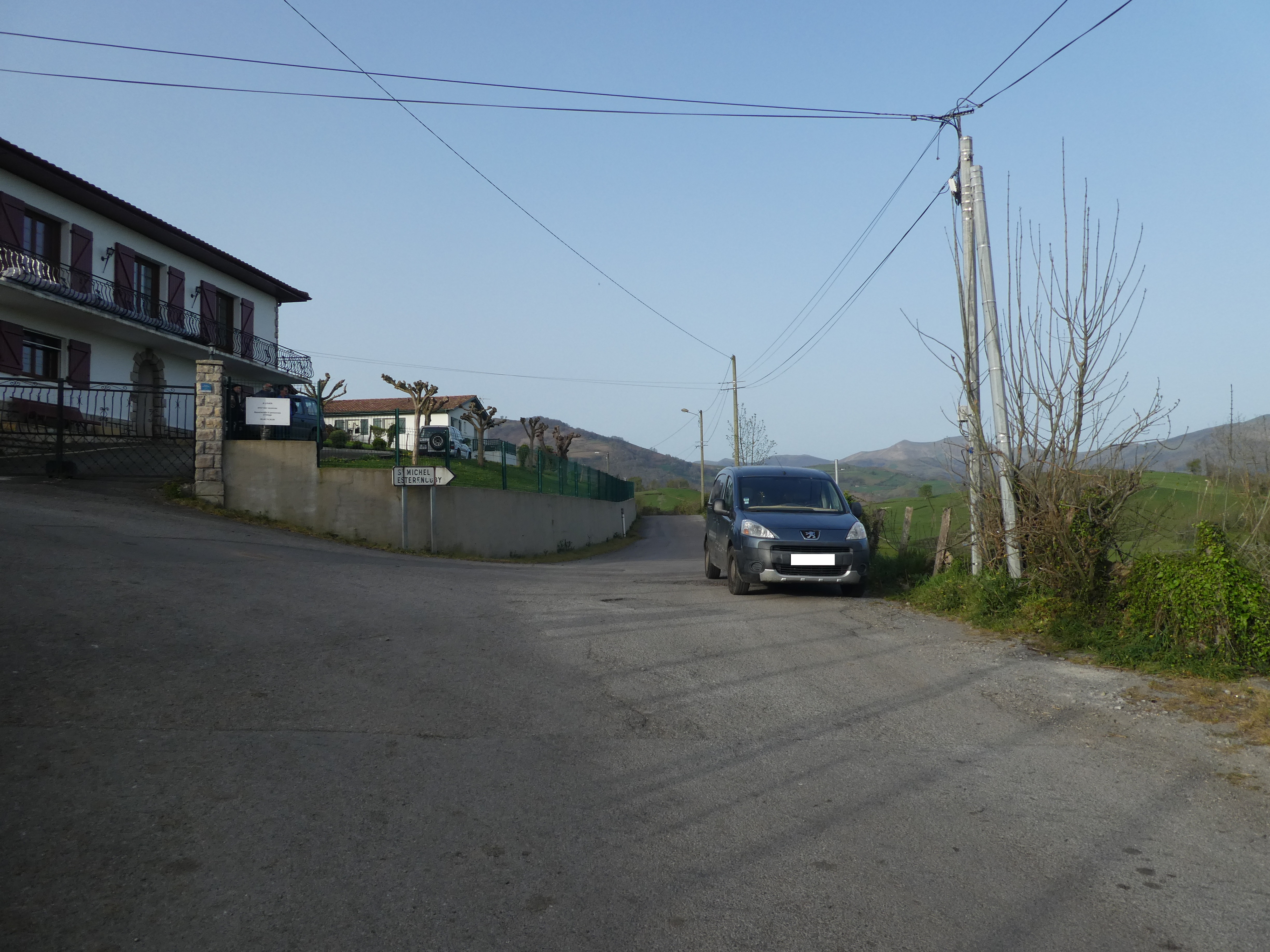 A ce croisement situé au bout de la route goudronnée (900 mètres après la précédente intersection) (401 m), suivre le large chemin partant sur la gauche vers les crêtes d'Handiaga direction Burgistako Borda