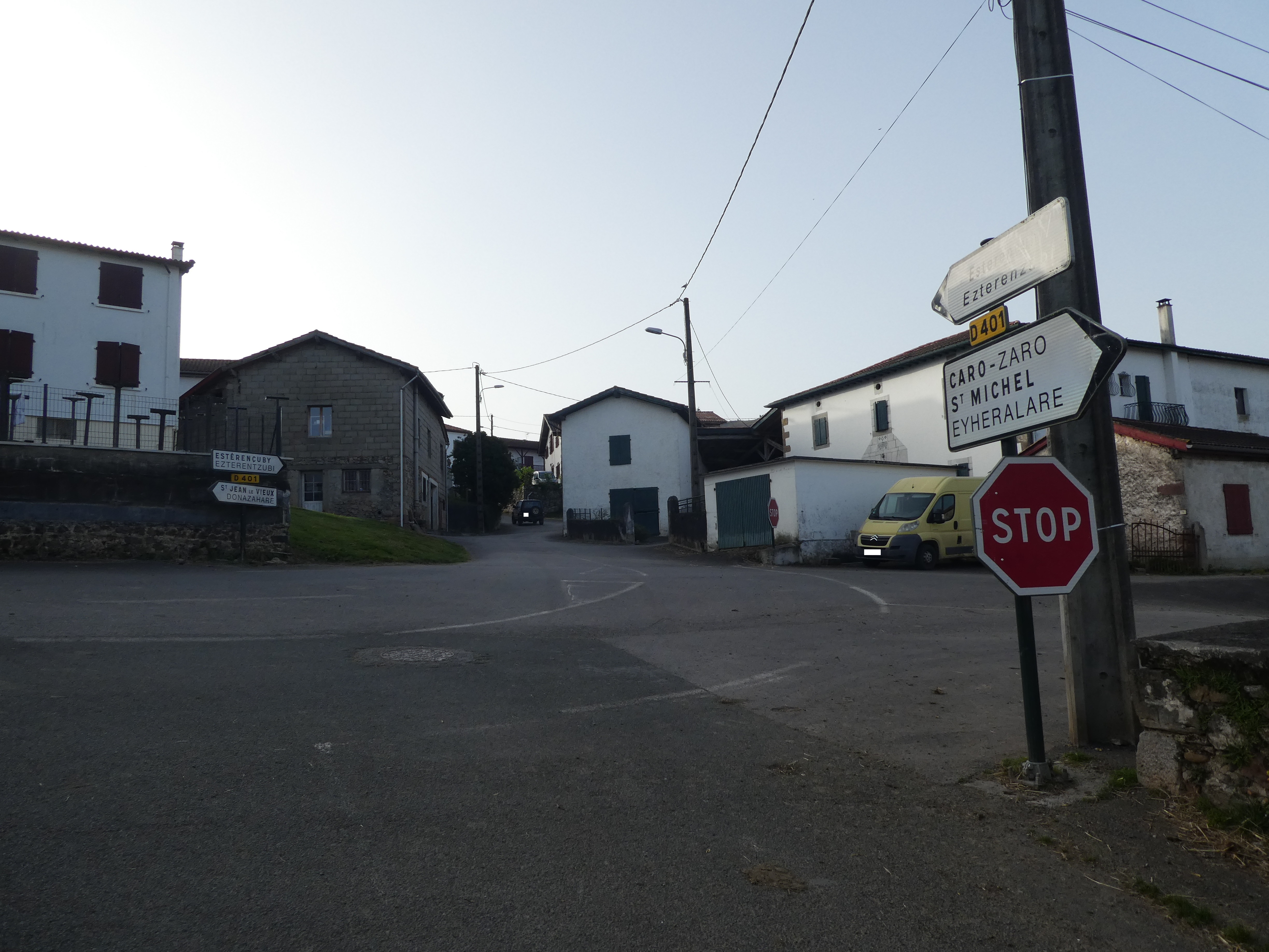 Départ Çaro - Village (246 m) : suivre la D401 partant tout droit direction Estérençuby, balisé en rouge et blanc