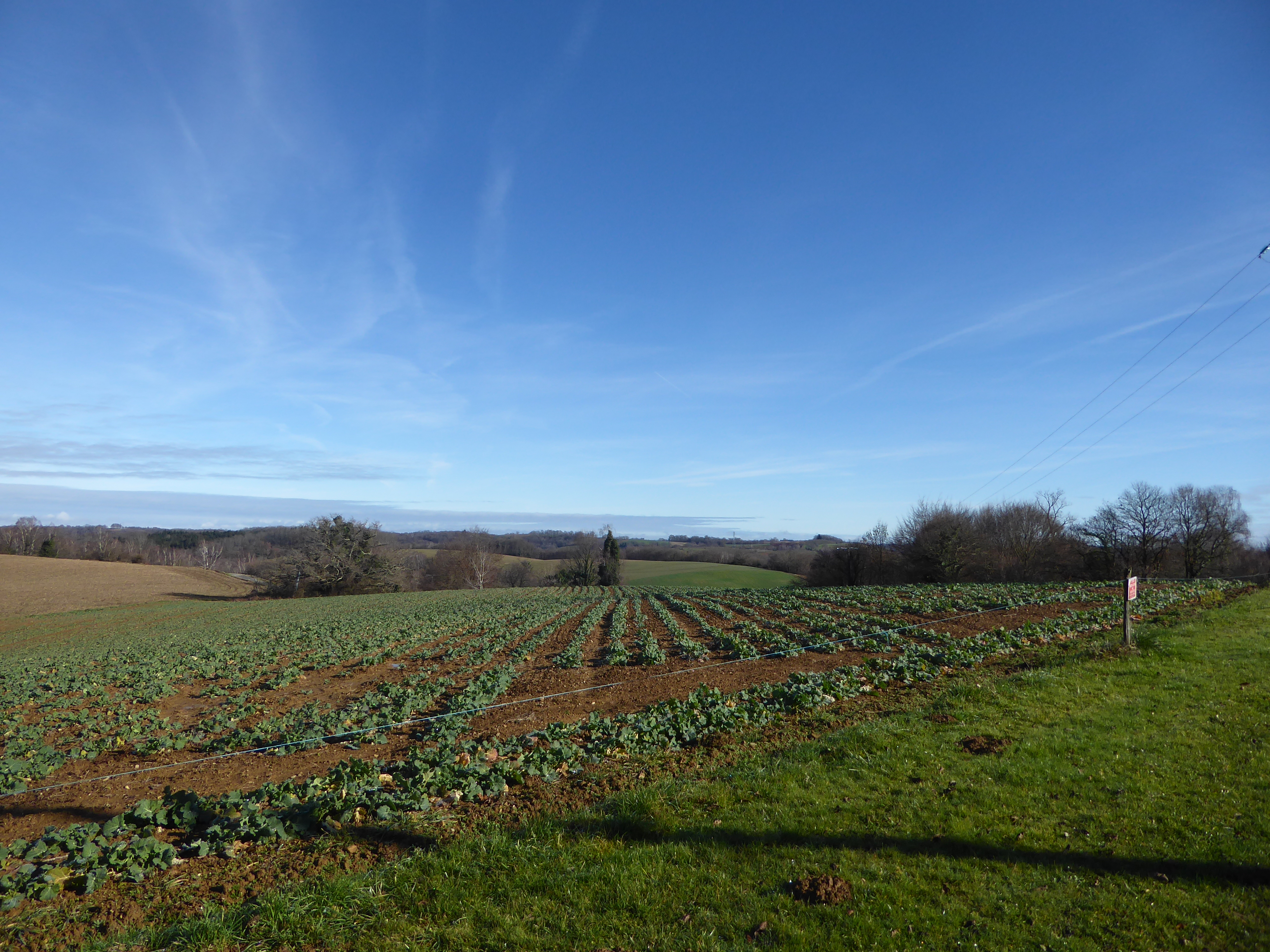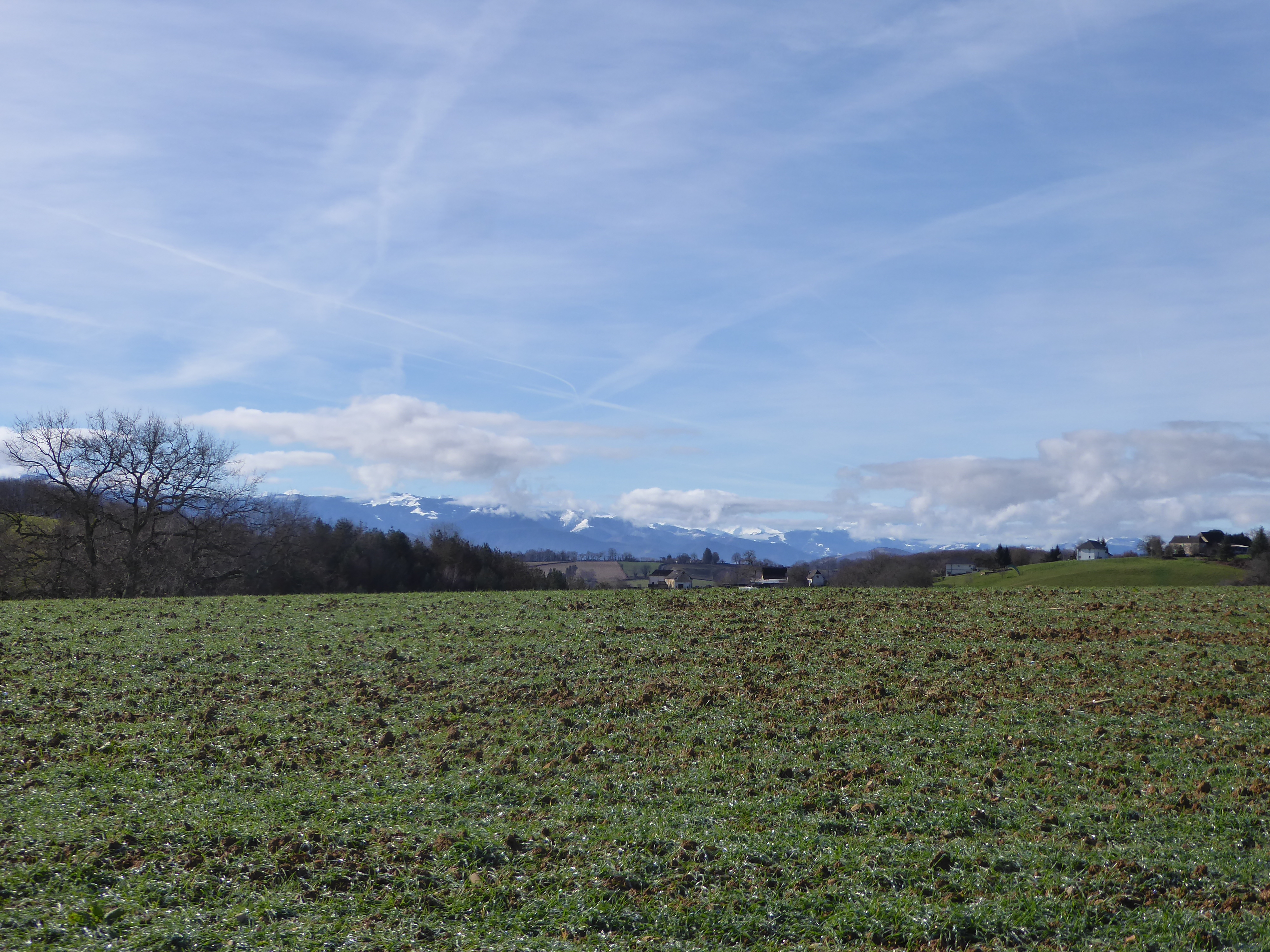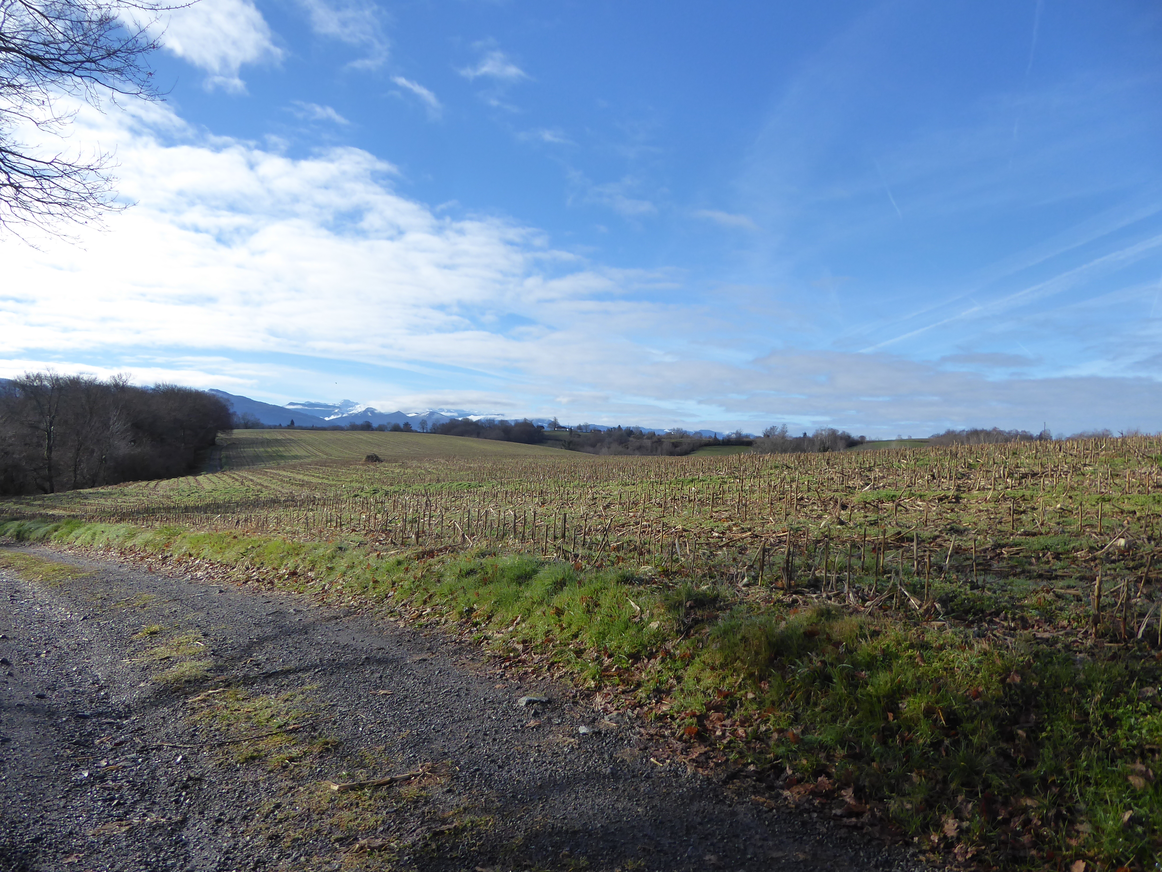 A la sortie du Bois d'Estialescq, belle ouverture sur les coteaux de Monein et les Pyrénées en arrière-plan