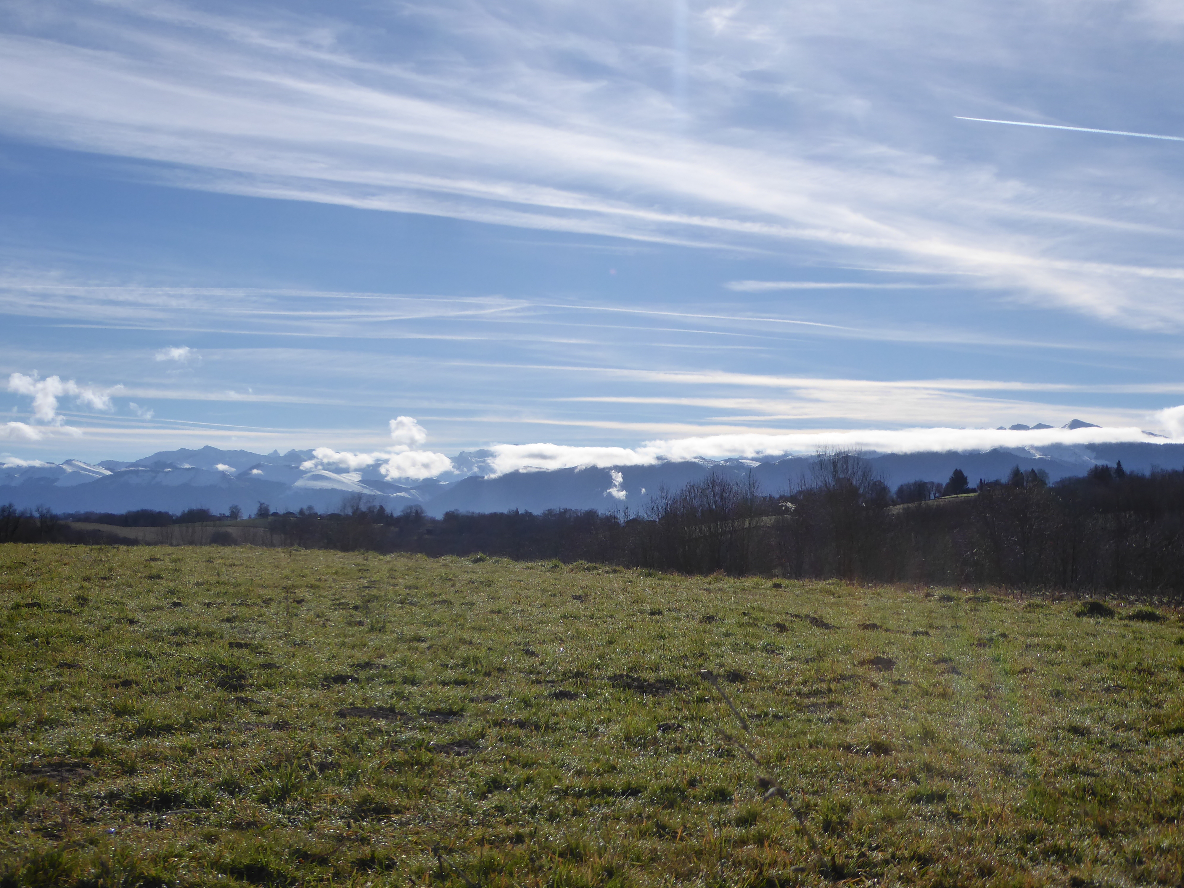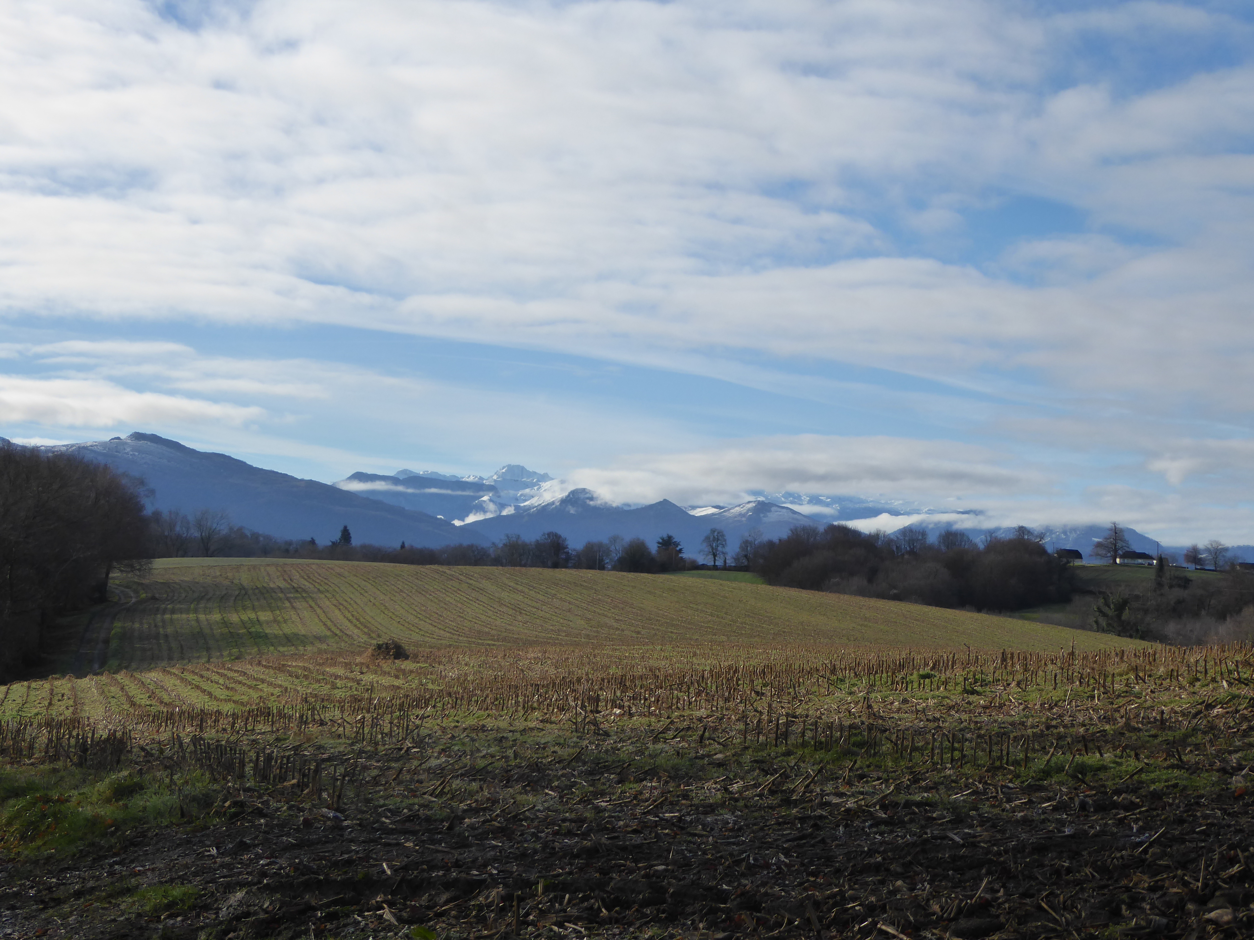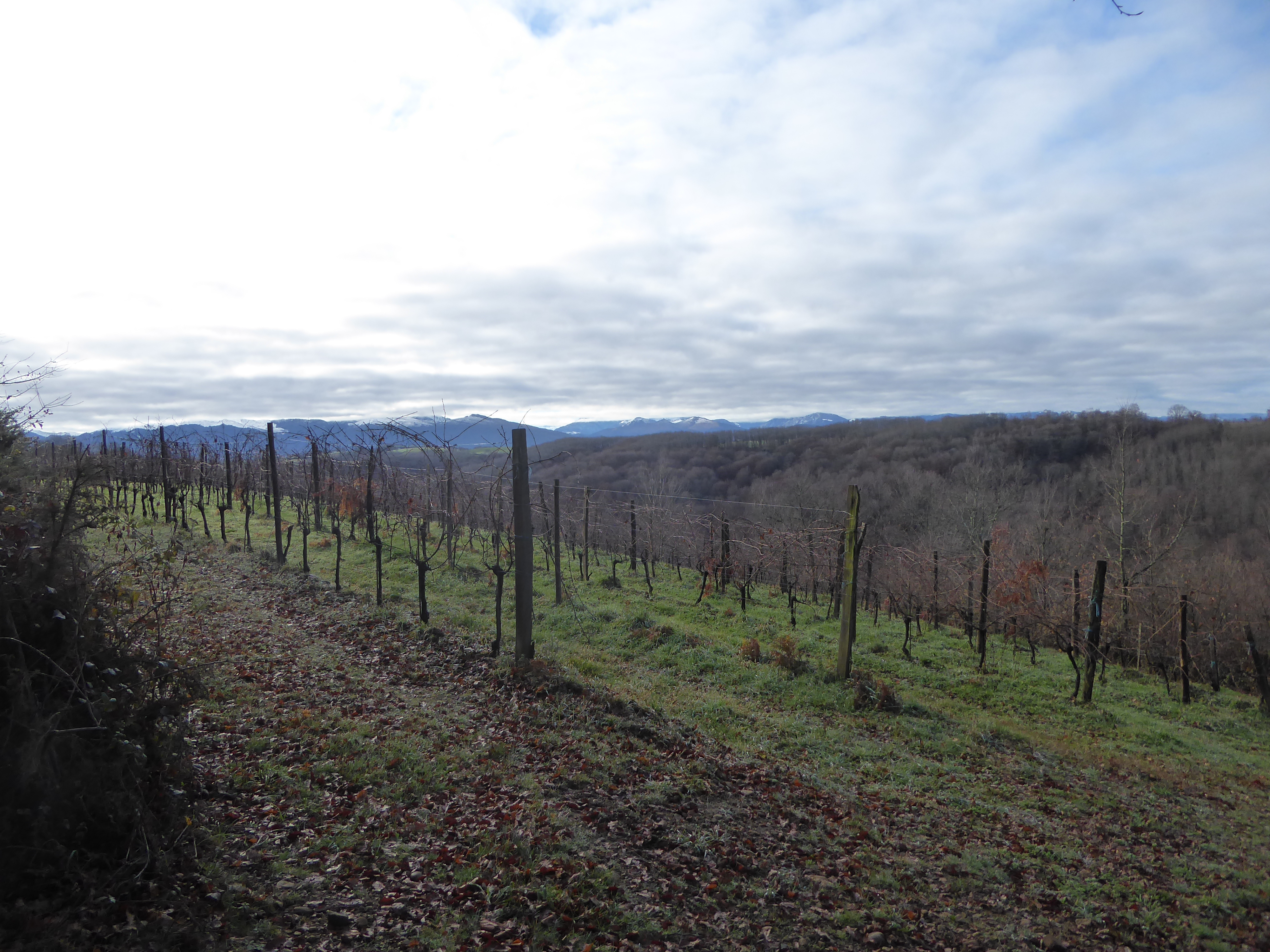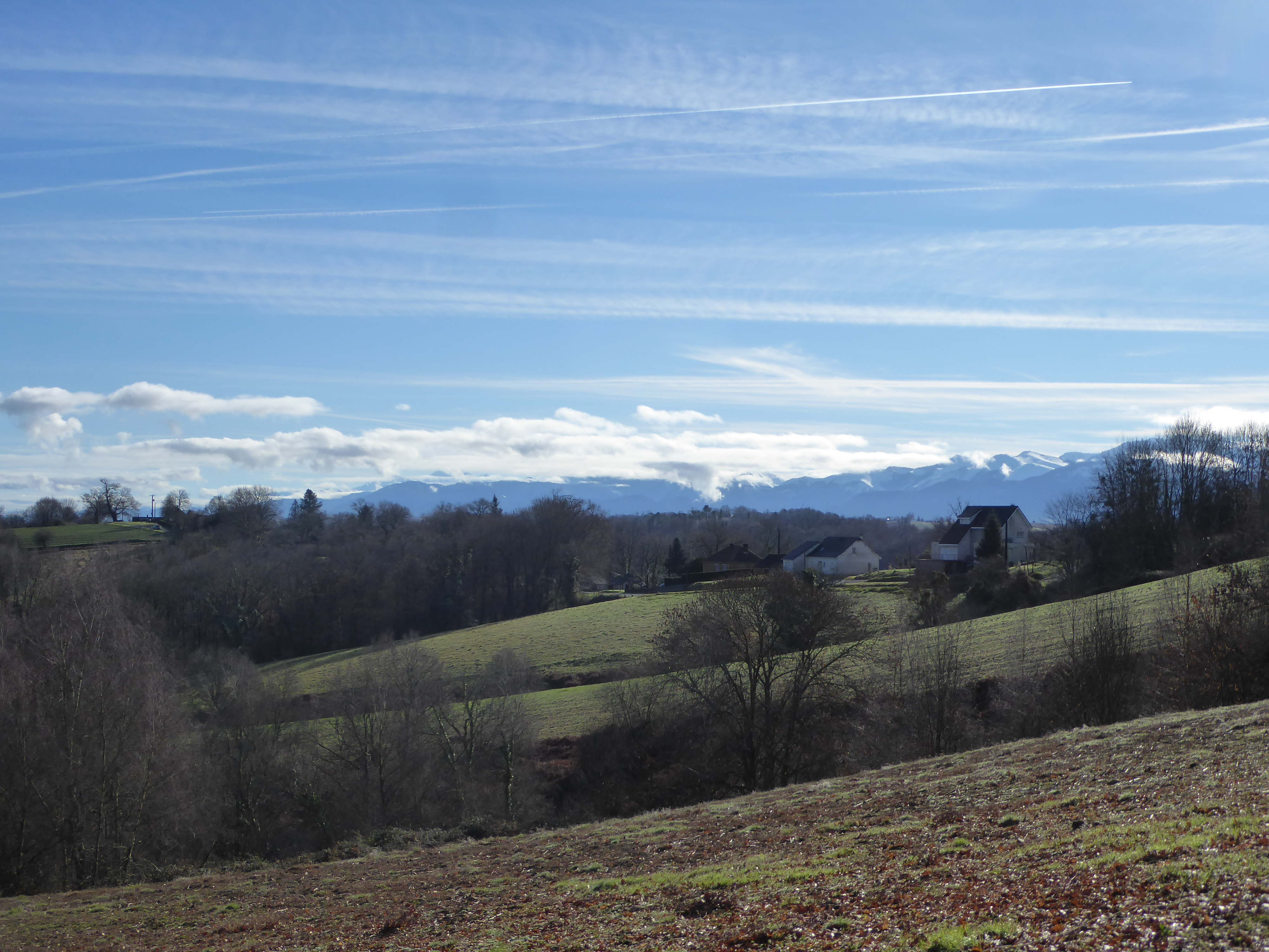 Seule vue dégagée sur les Pyrénées aspoises de la montée ... et les vignobles du Jurançon