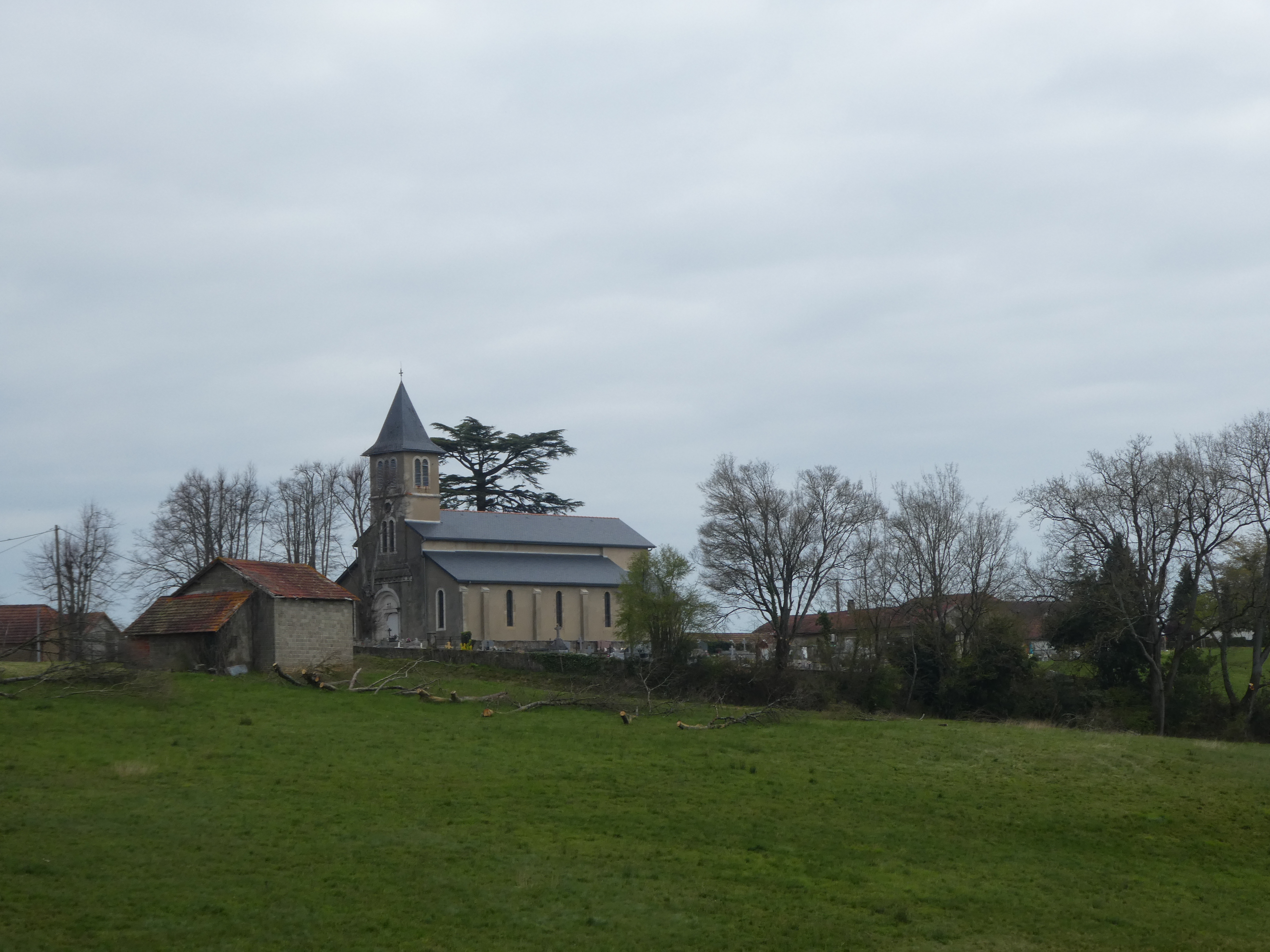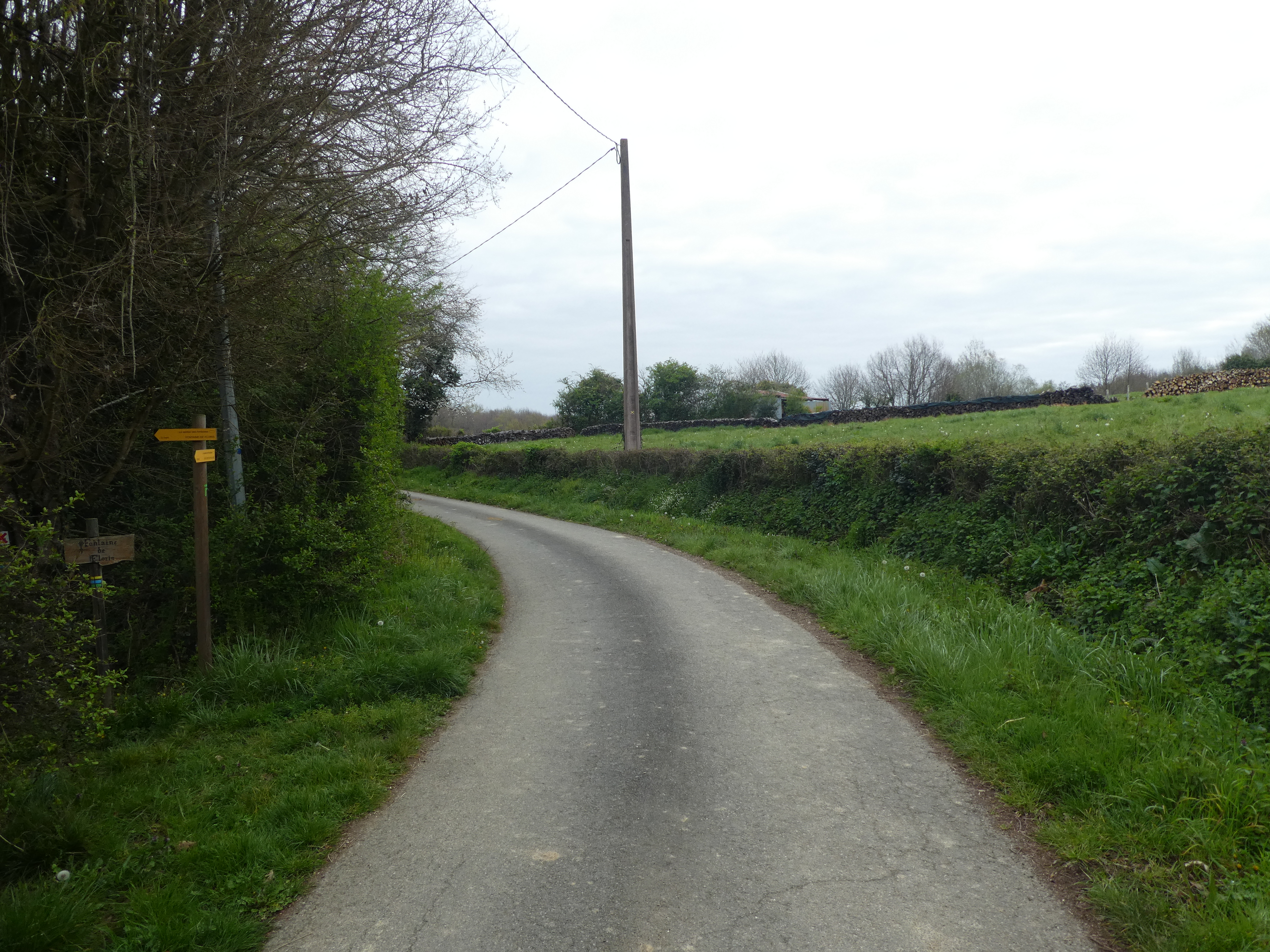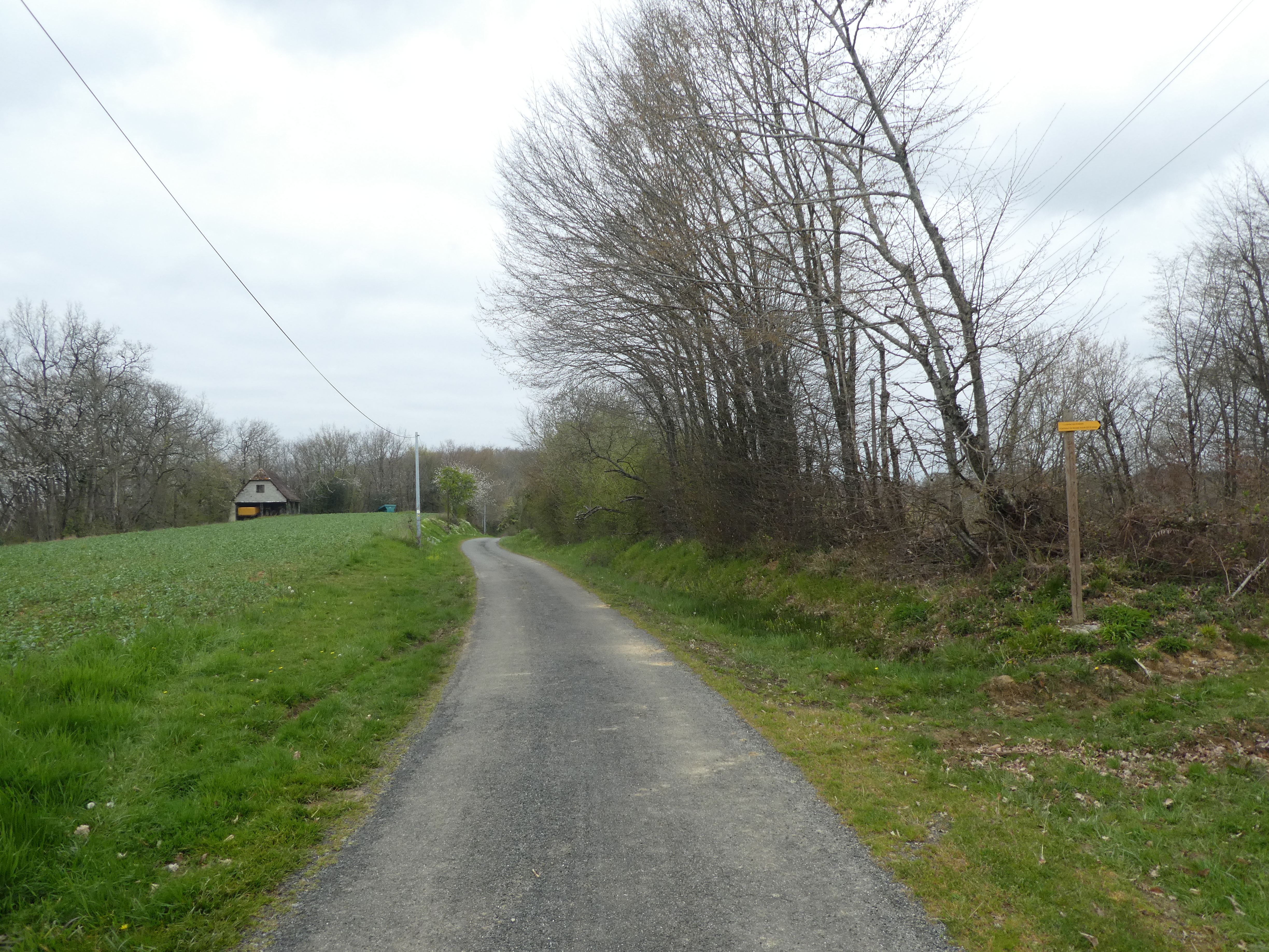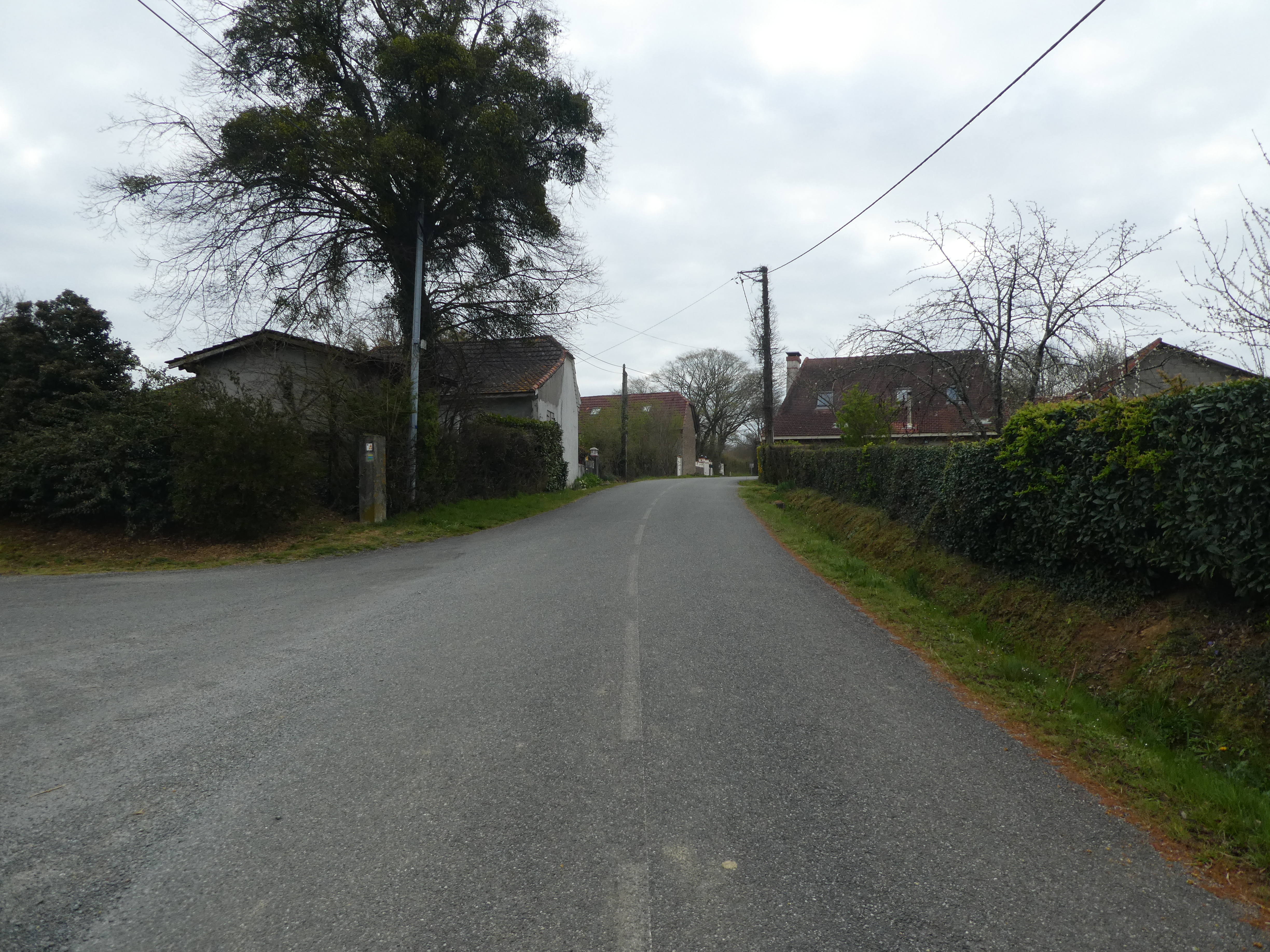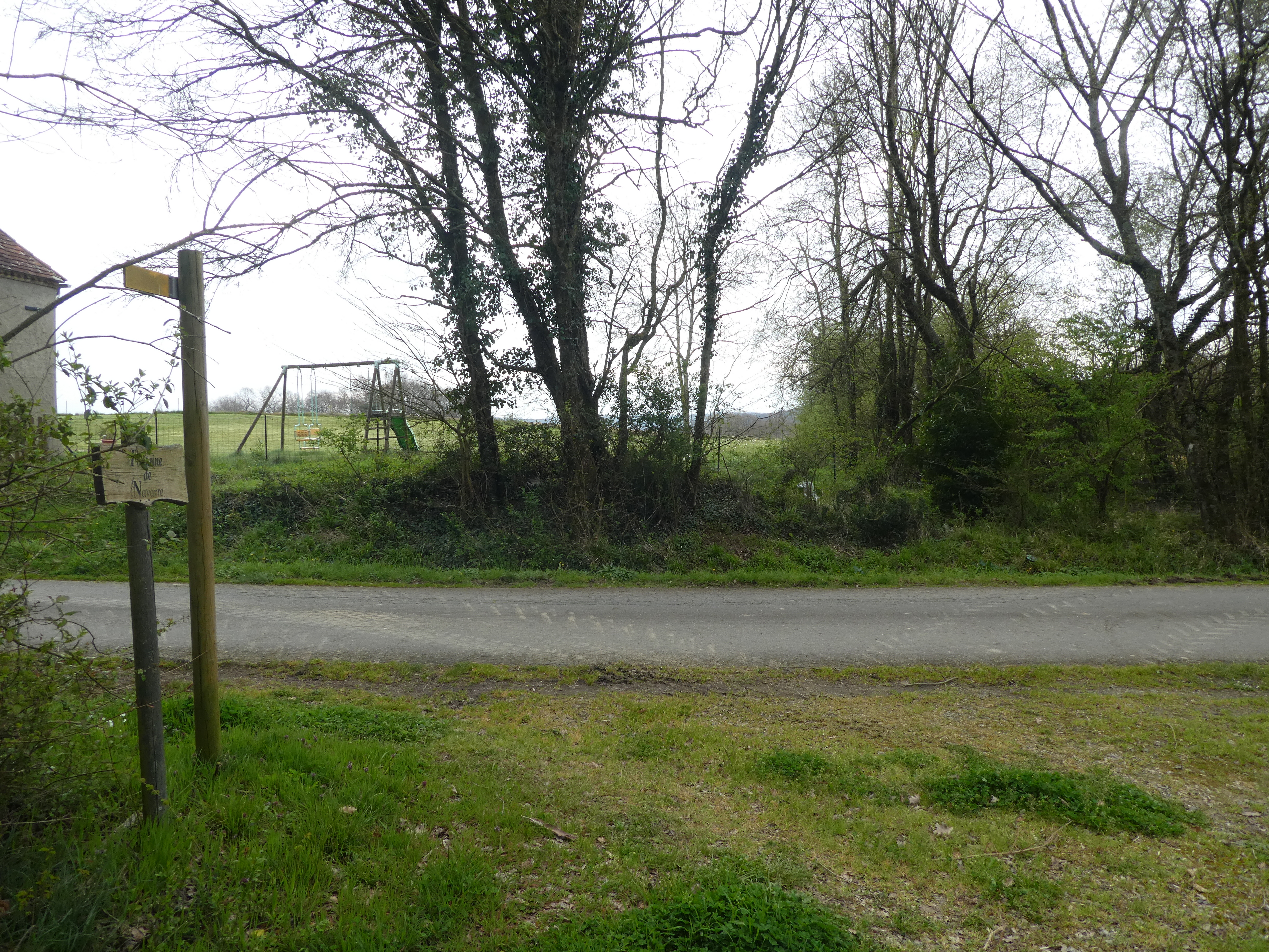 A ce croisement marqué par la présence d'un panneau directionnel (200 mètres après avoir quitté la Fontaine de Page), suivre la route montant sur la gauche direction Moncaup - Mairie, balisé en jaune