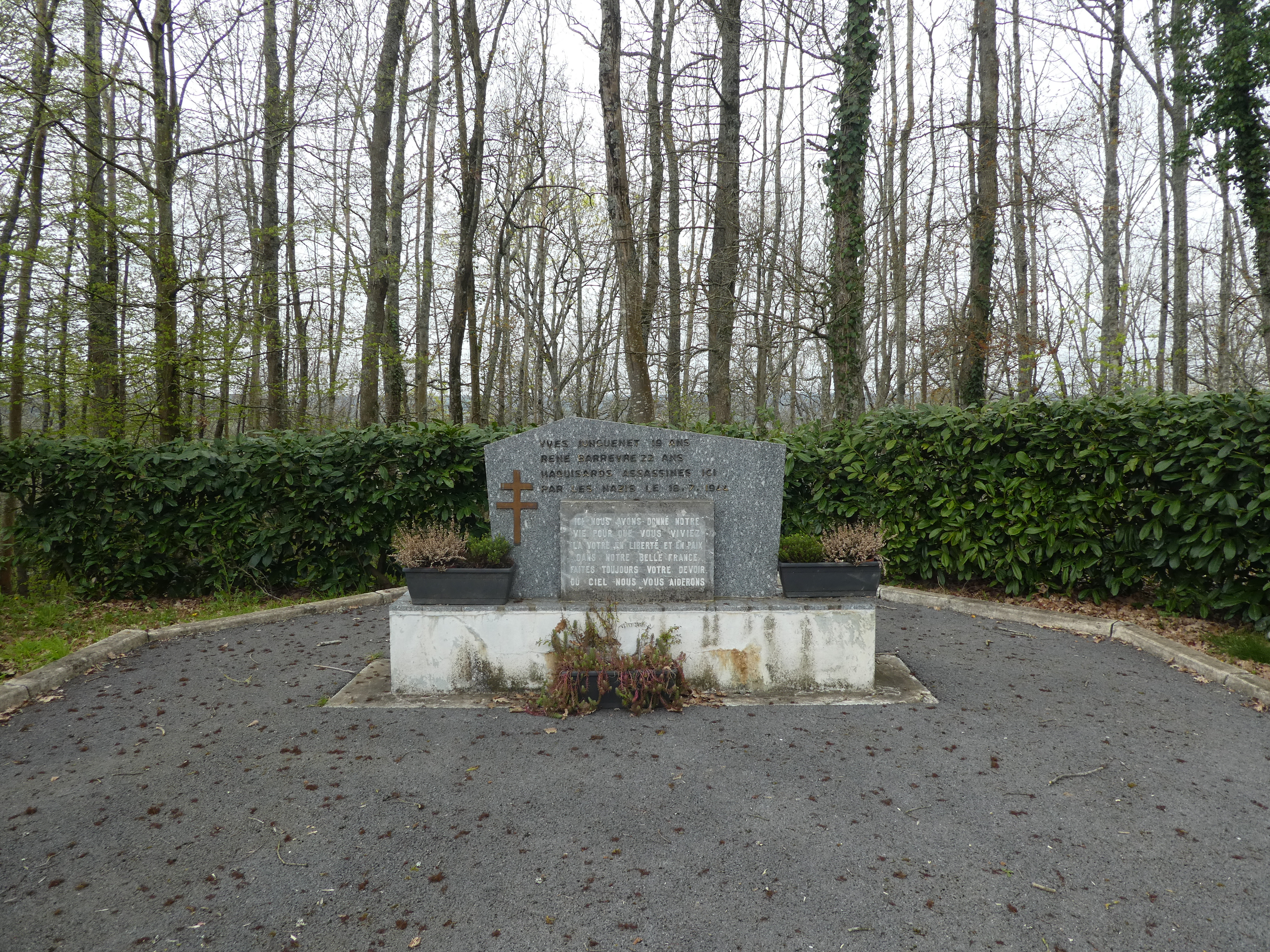 Stèle en l'hommage de deux maquisards (Yves Juguenet et René Barreyre) assasinés le 18 juillet 1944 par les Nazis