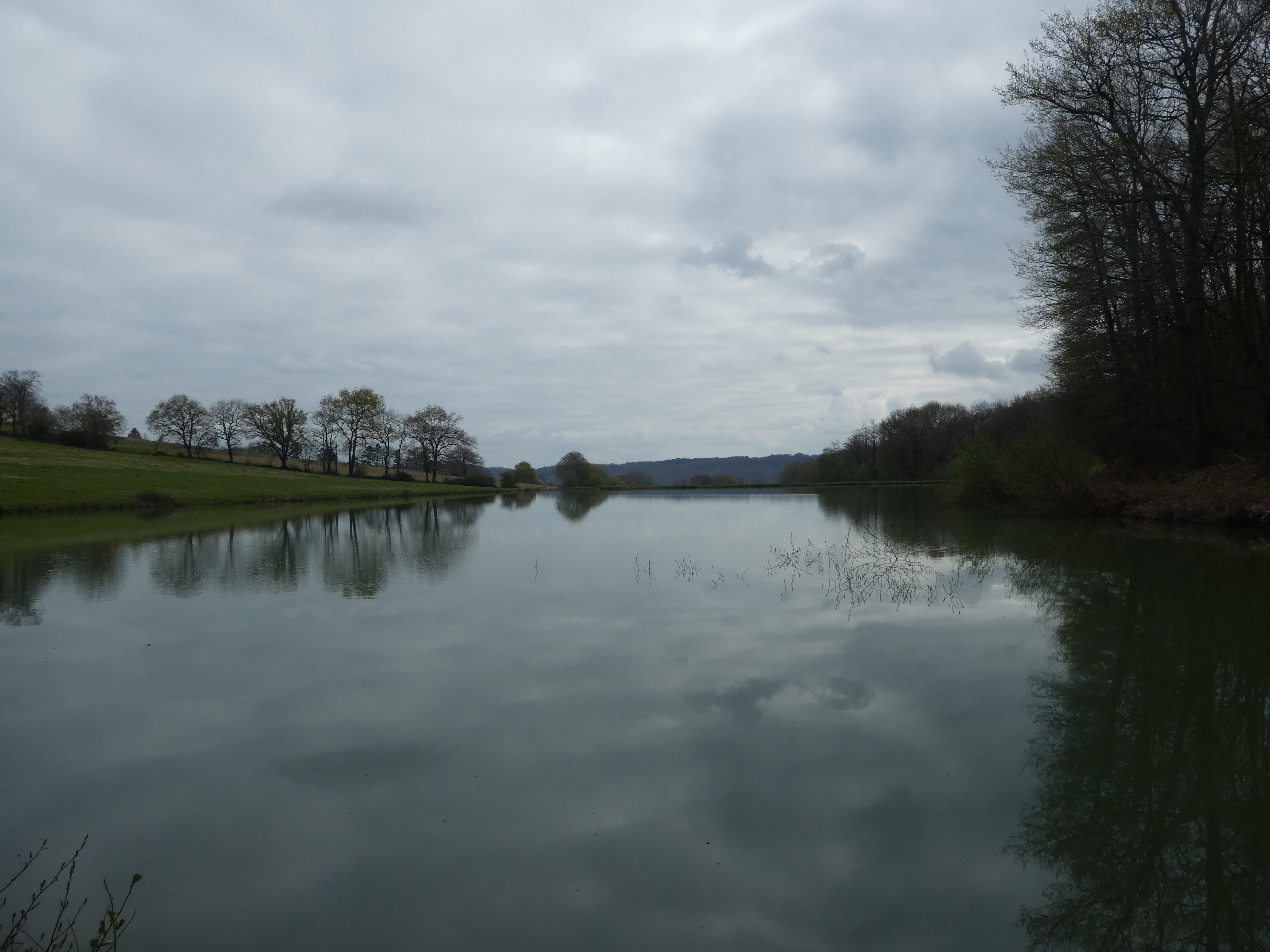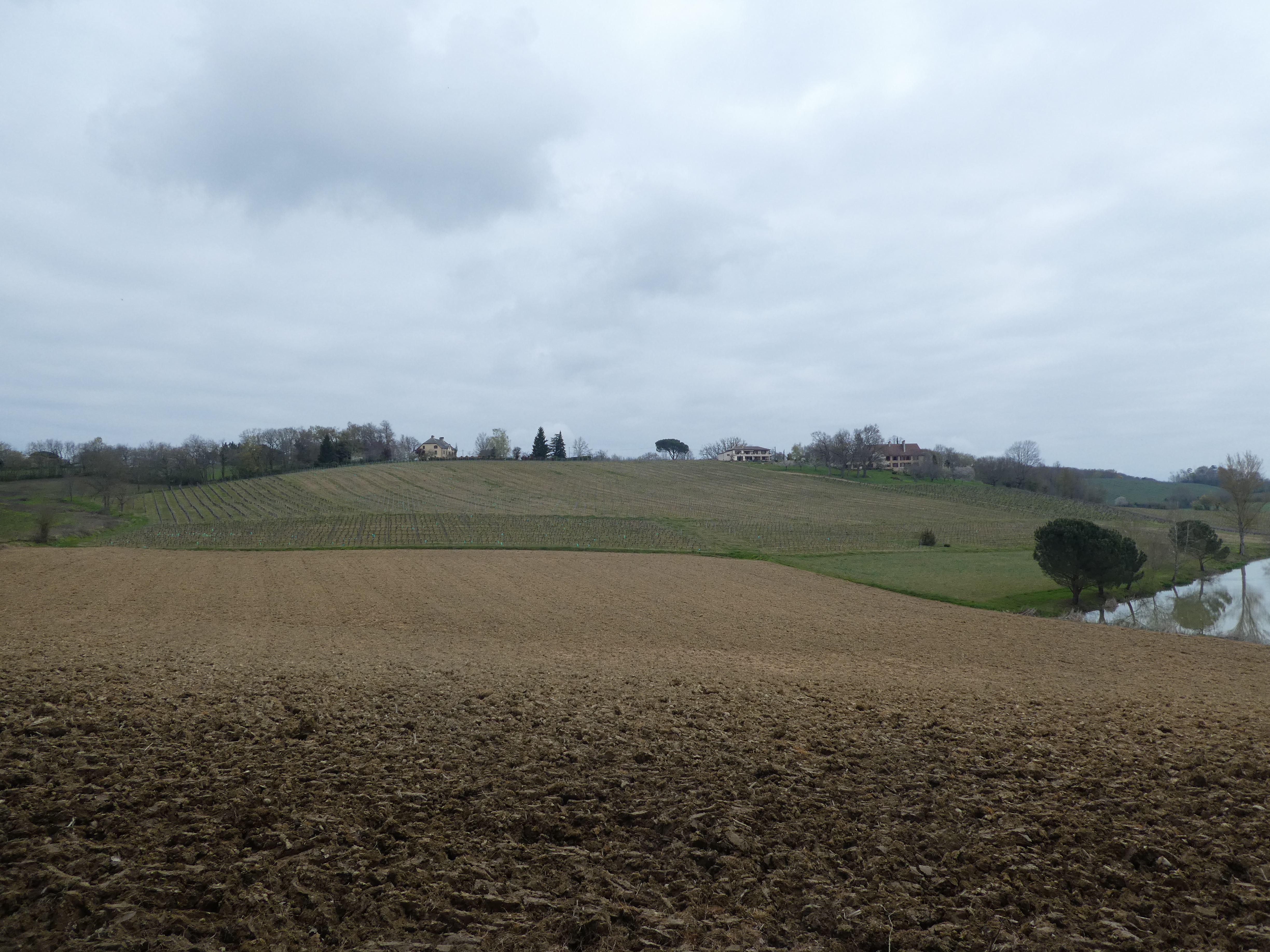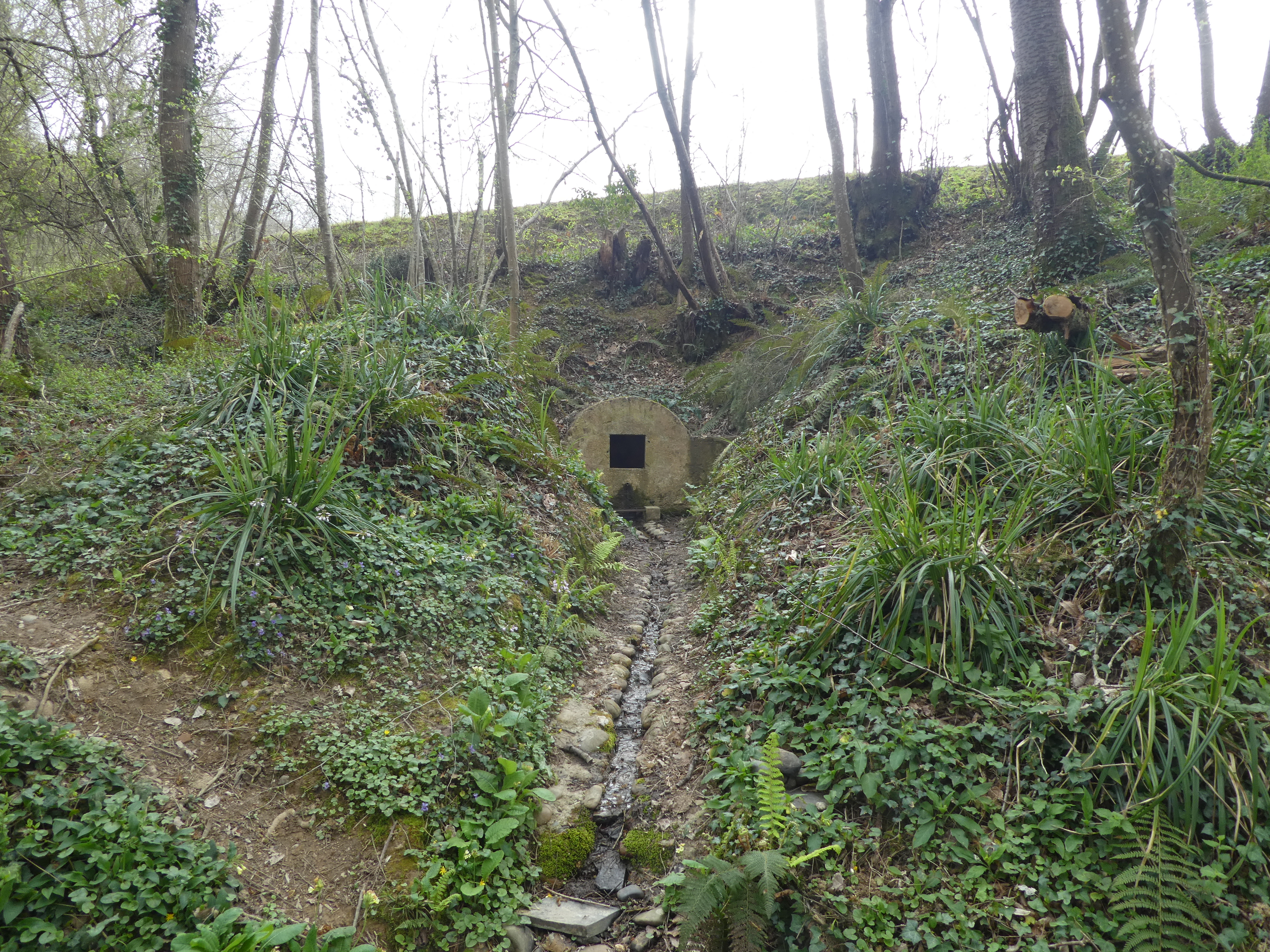 Le petit bassin de rétention de la Fontaine de Page ; repartir par le même chemin que celui de l'aller direction Moncaup - Mairie, balisé en jaune