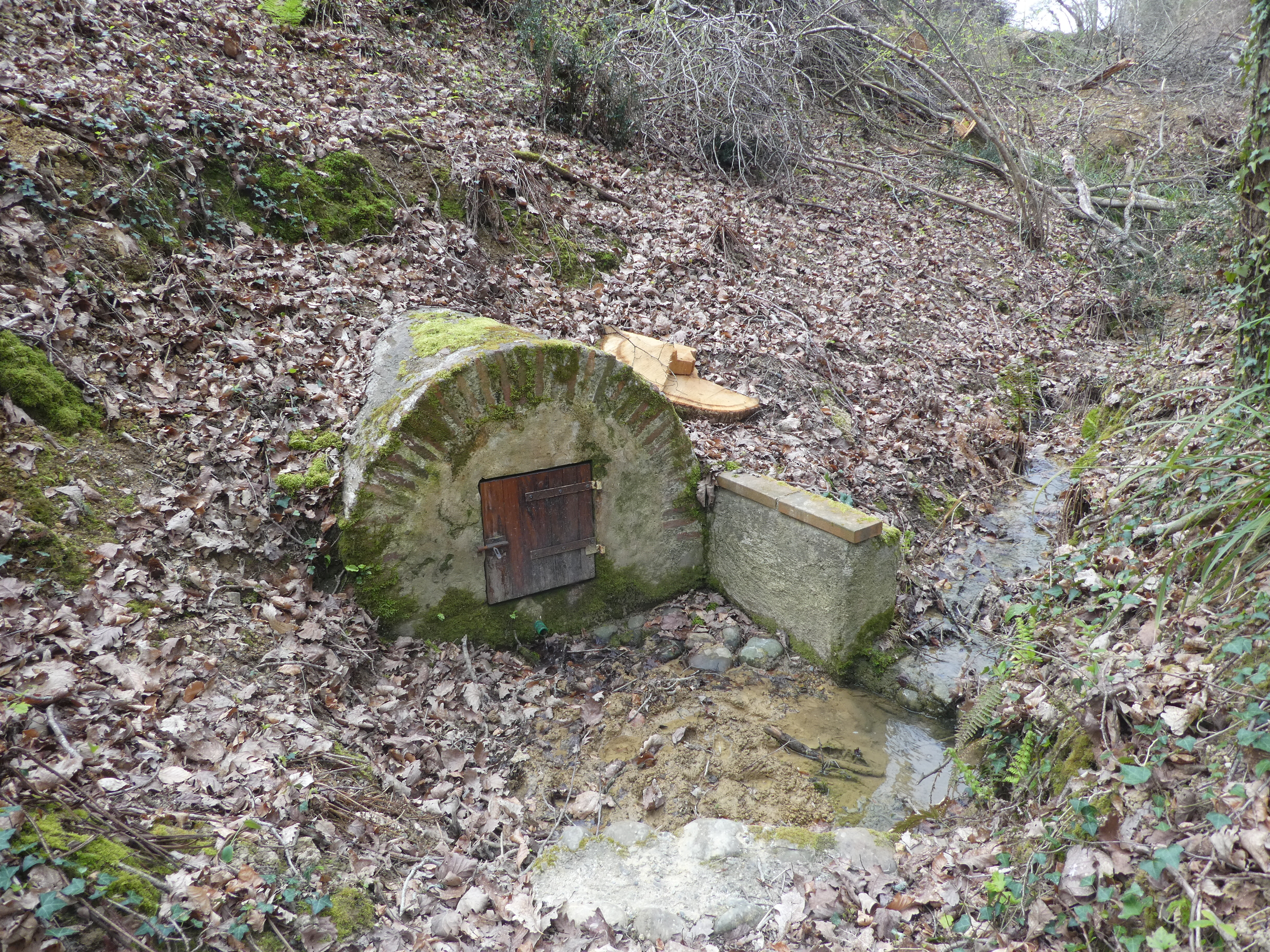 La Fontaine de Passe ; repartir dans le même sens que celui de l'aller direction Fontaine du Bélier, balisé en jaune