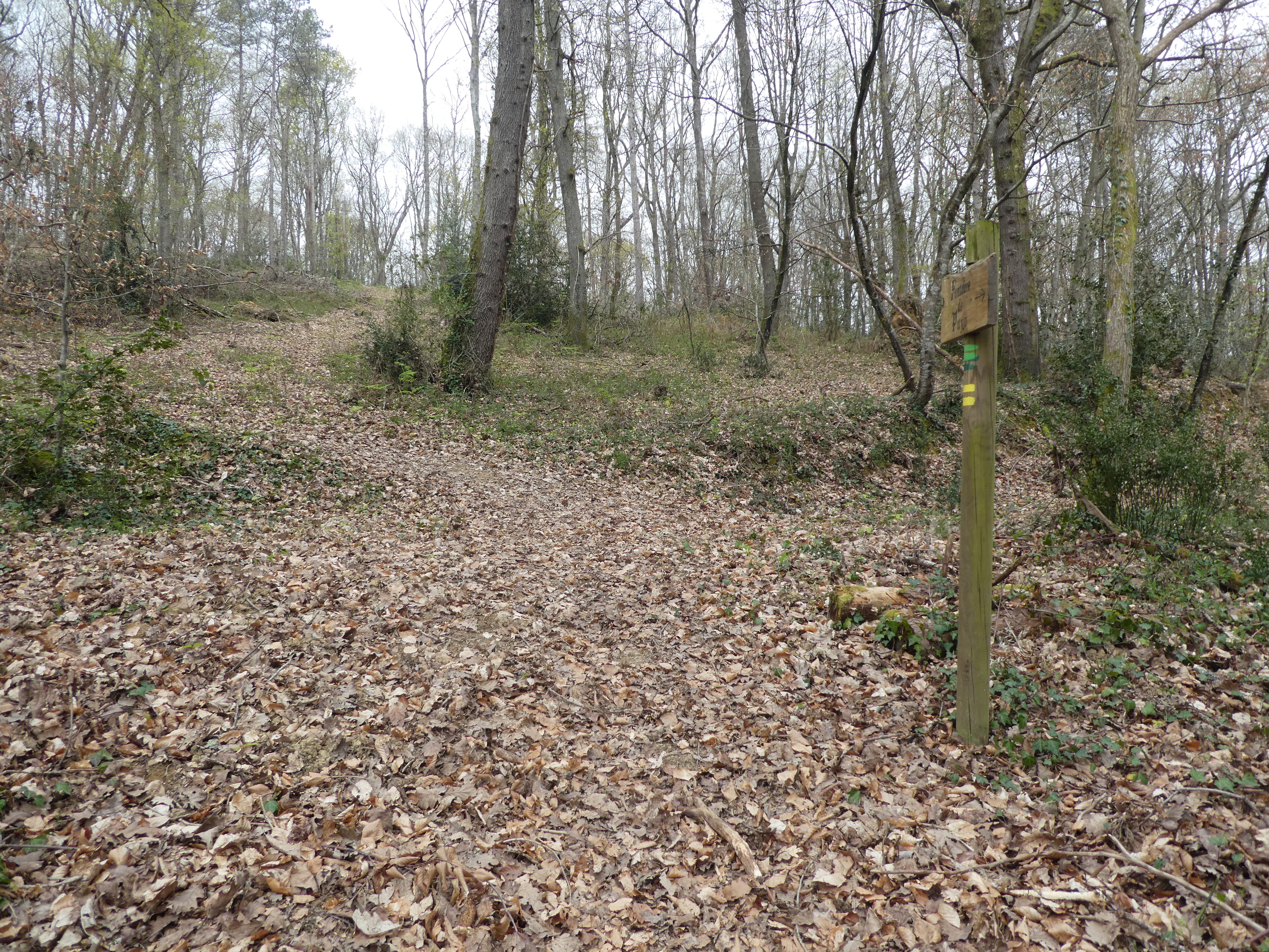 A ce croisement marqué par la présence d'un panneau directionnel (300 mètres après avoir quitté la Fontaine du Bélier) (266 m), suivre le chemin partant sur la droite direction Fontaine de Boune Houn, balisé en jaune