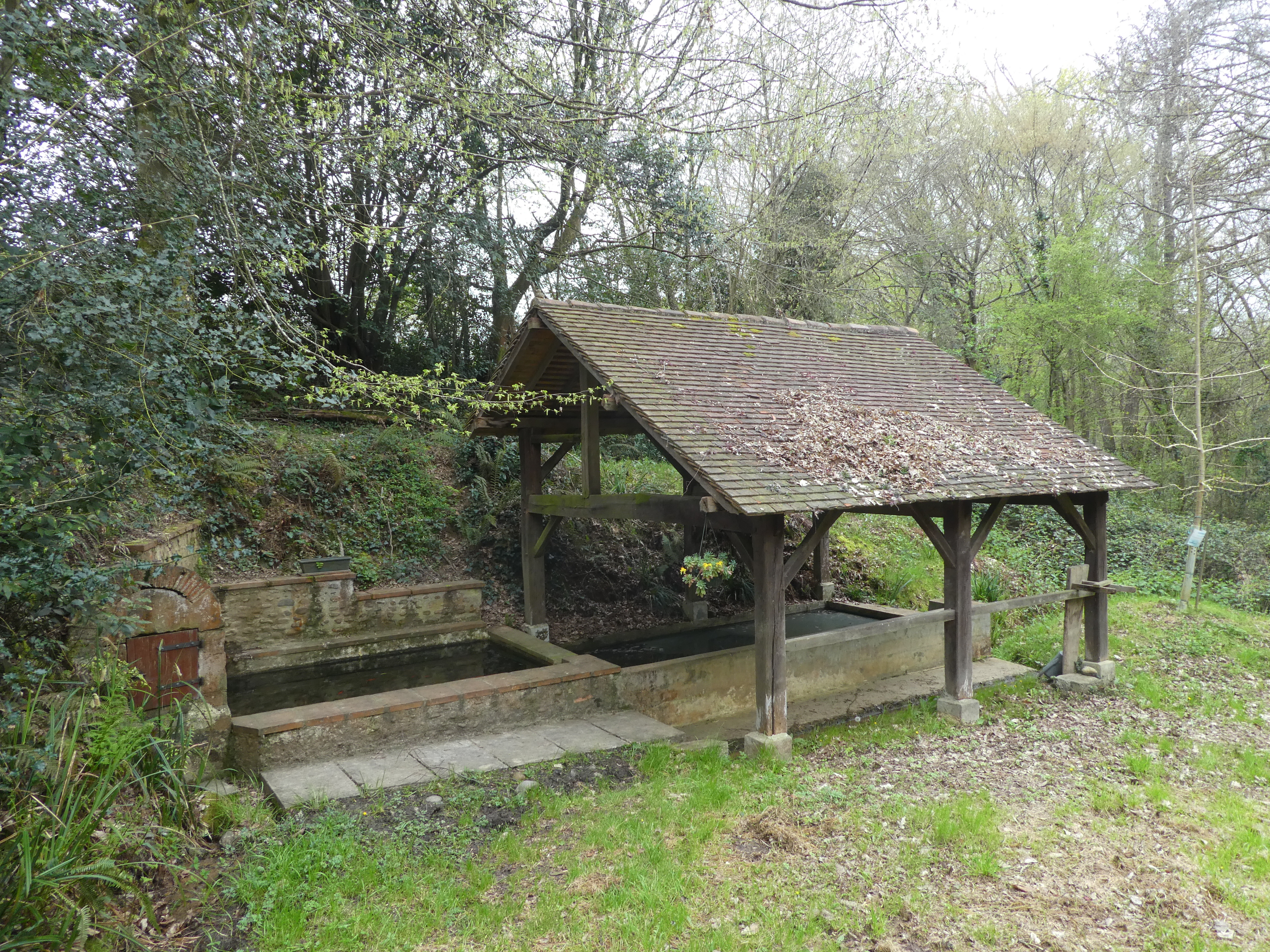 La Fontaine de Floris et le lavoir ; repartir dans le même sens que celui de l'aller direction Fontaine de l'Estipe, balisé en jaune