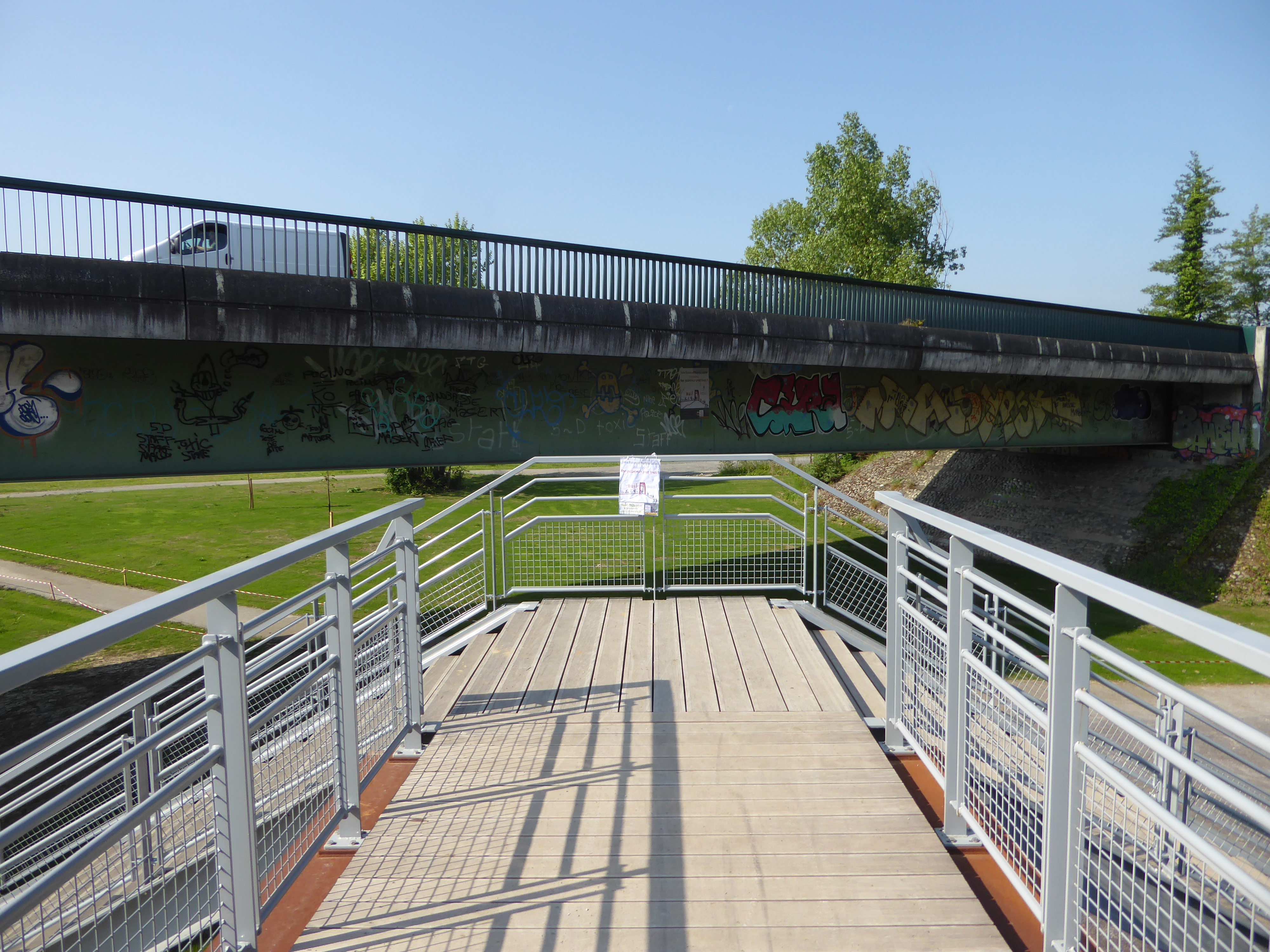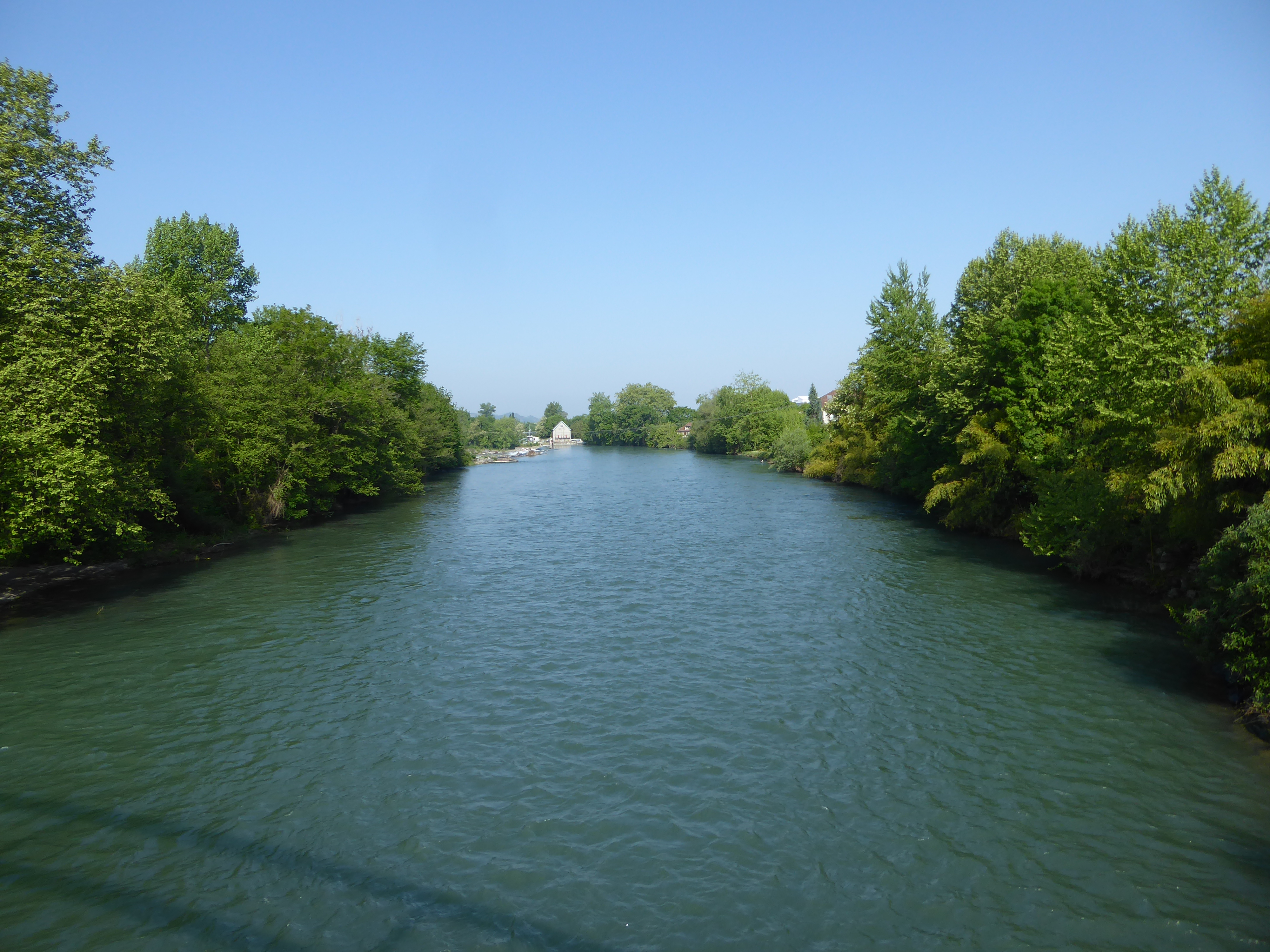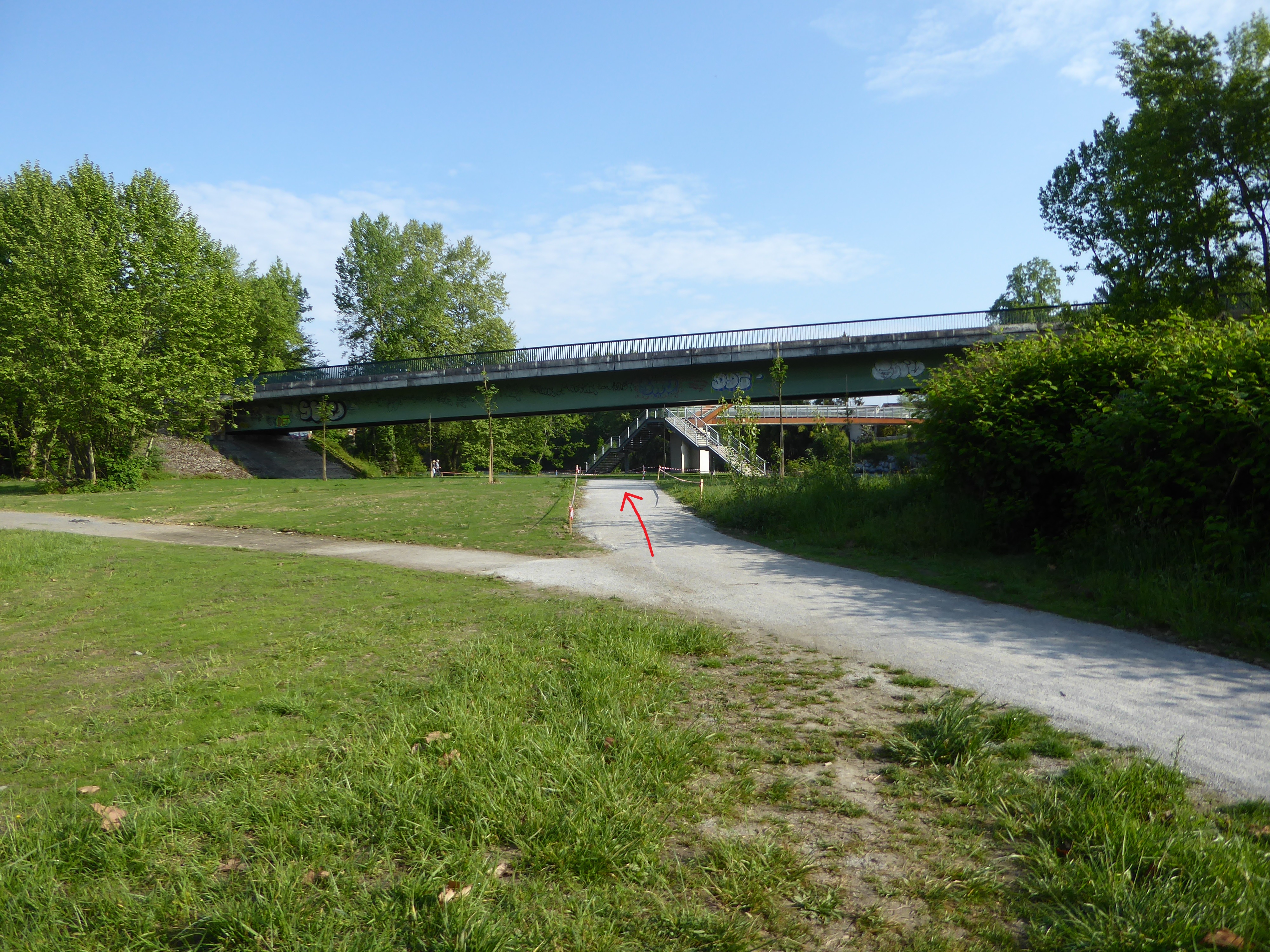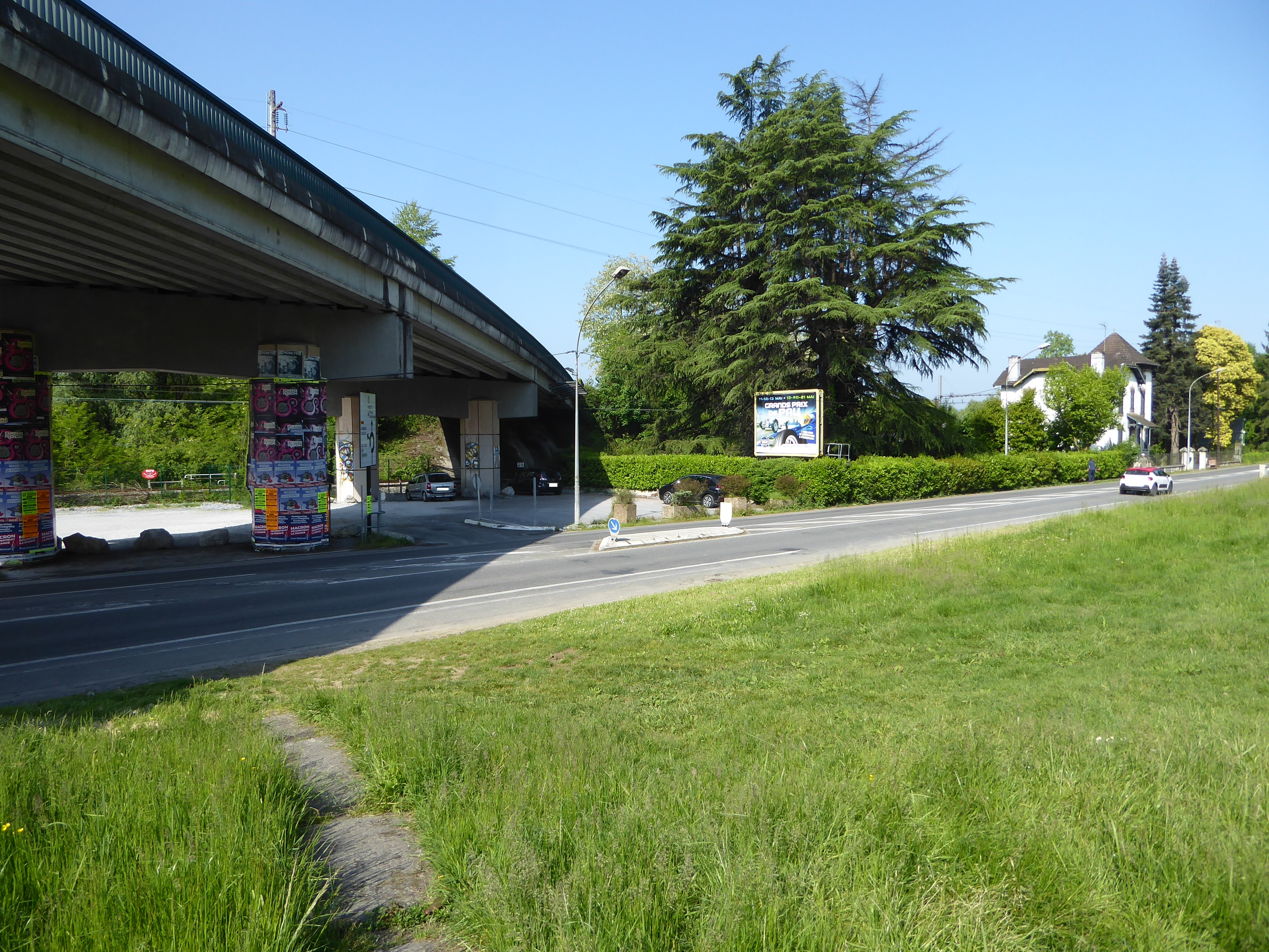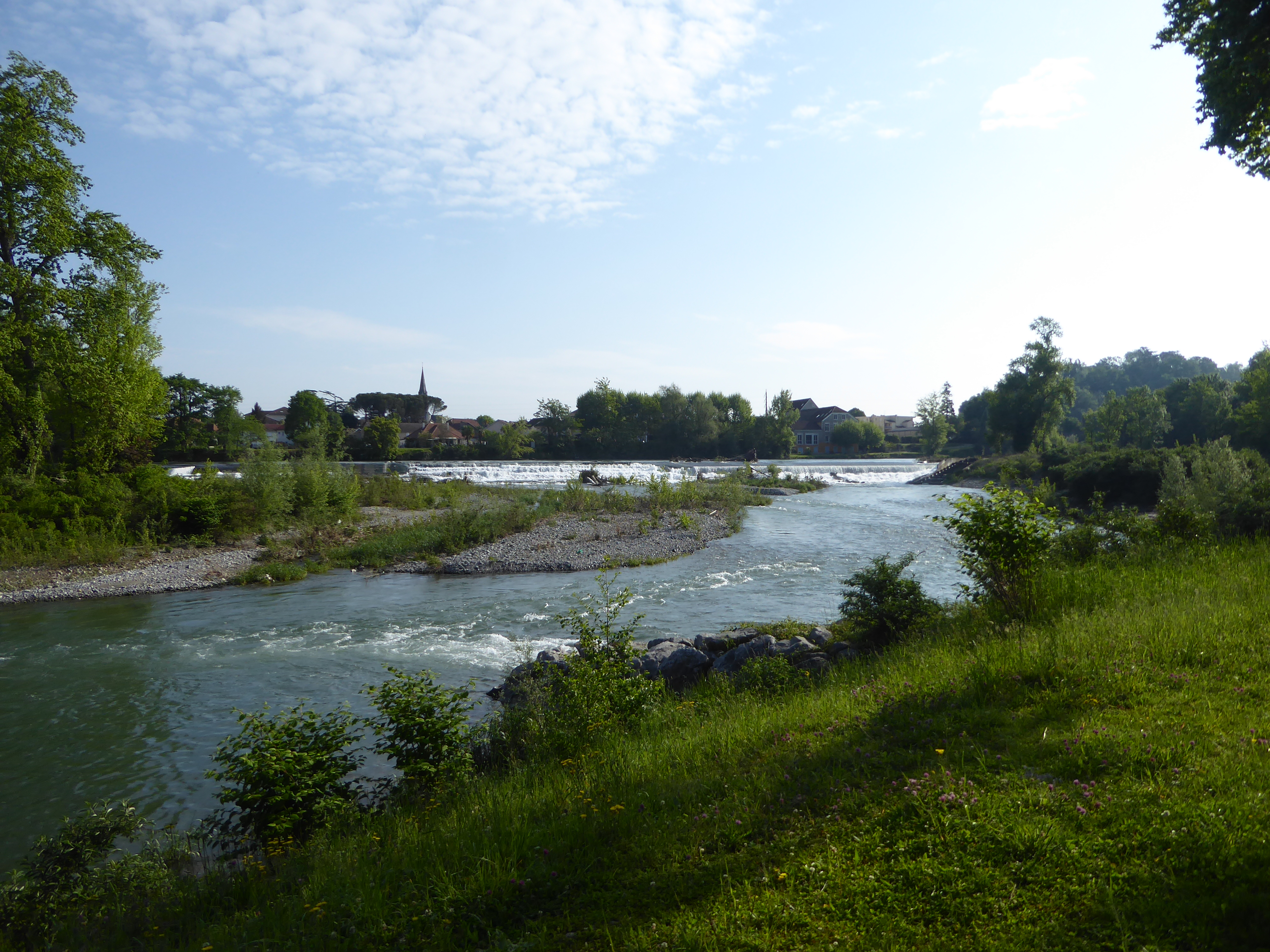 Au niveau de la passerelle reliant Gelos au Stade d'eaux vives, emprunter cette dernière sur la droite direction Stade d'eaux vives