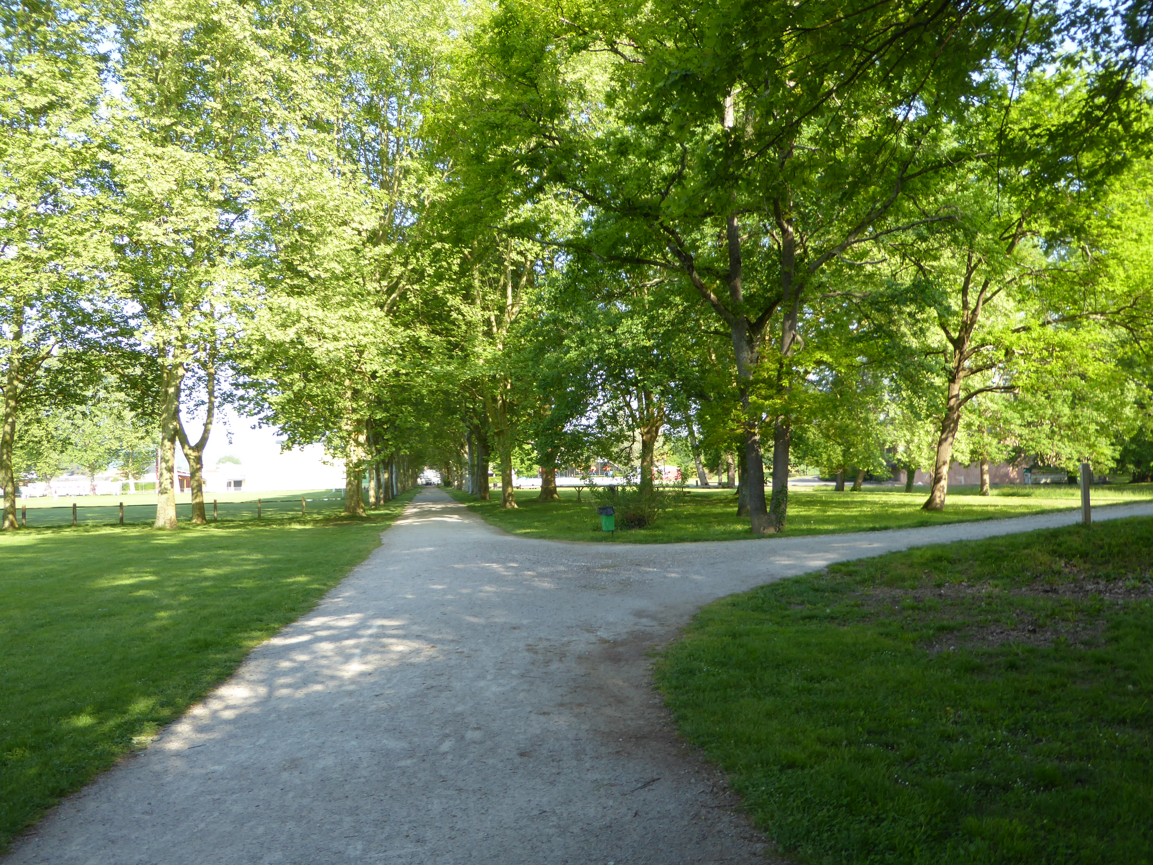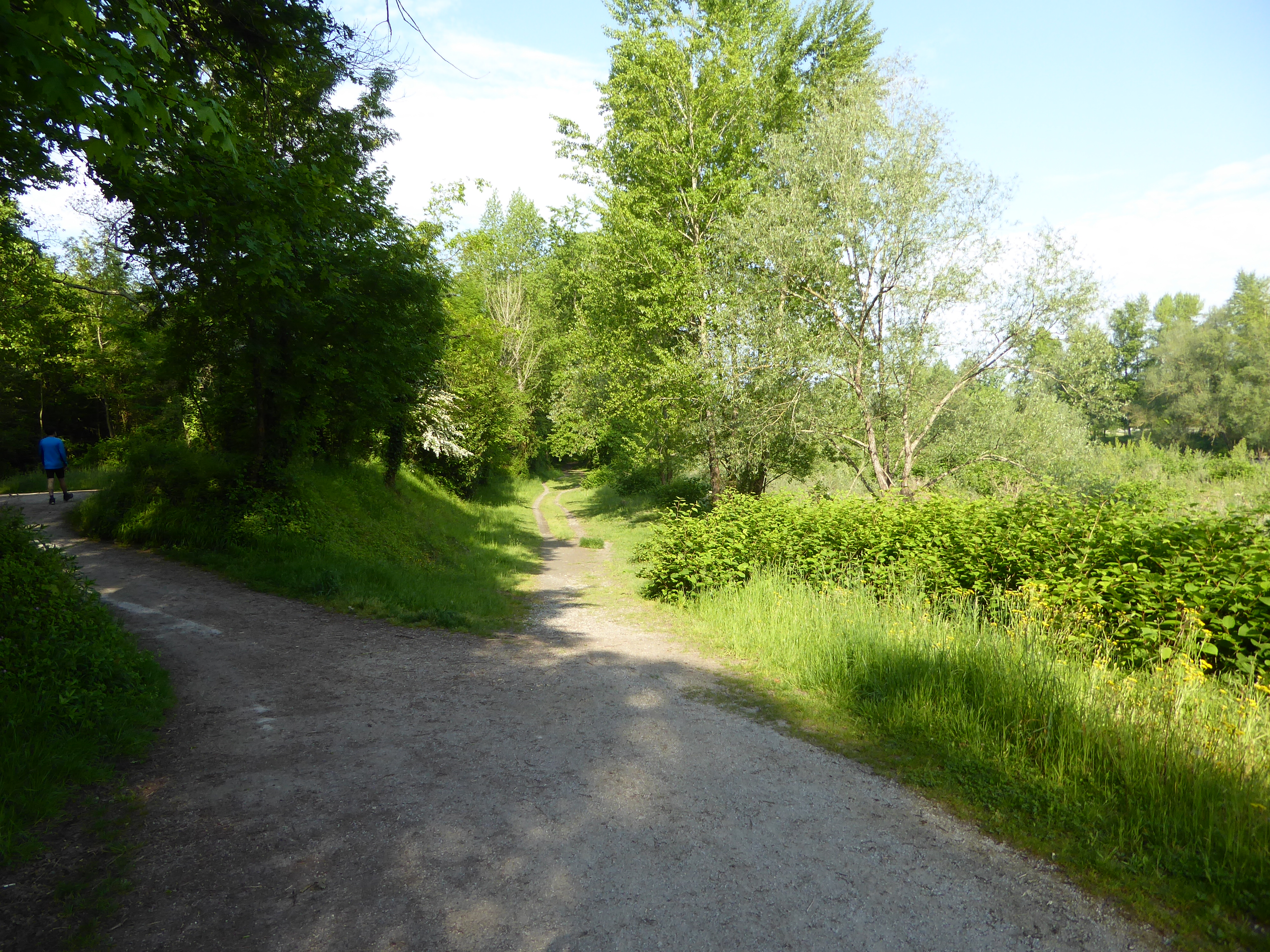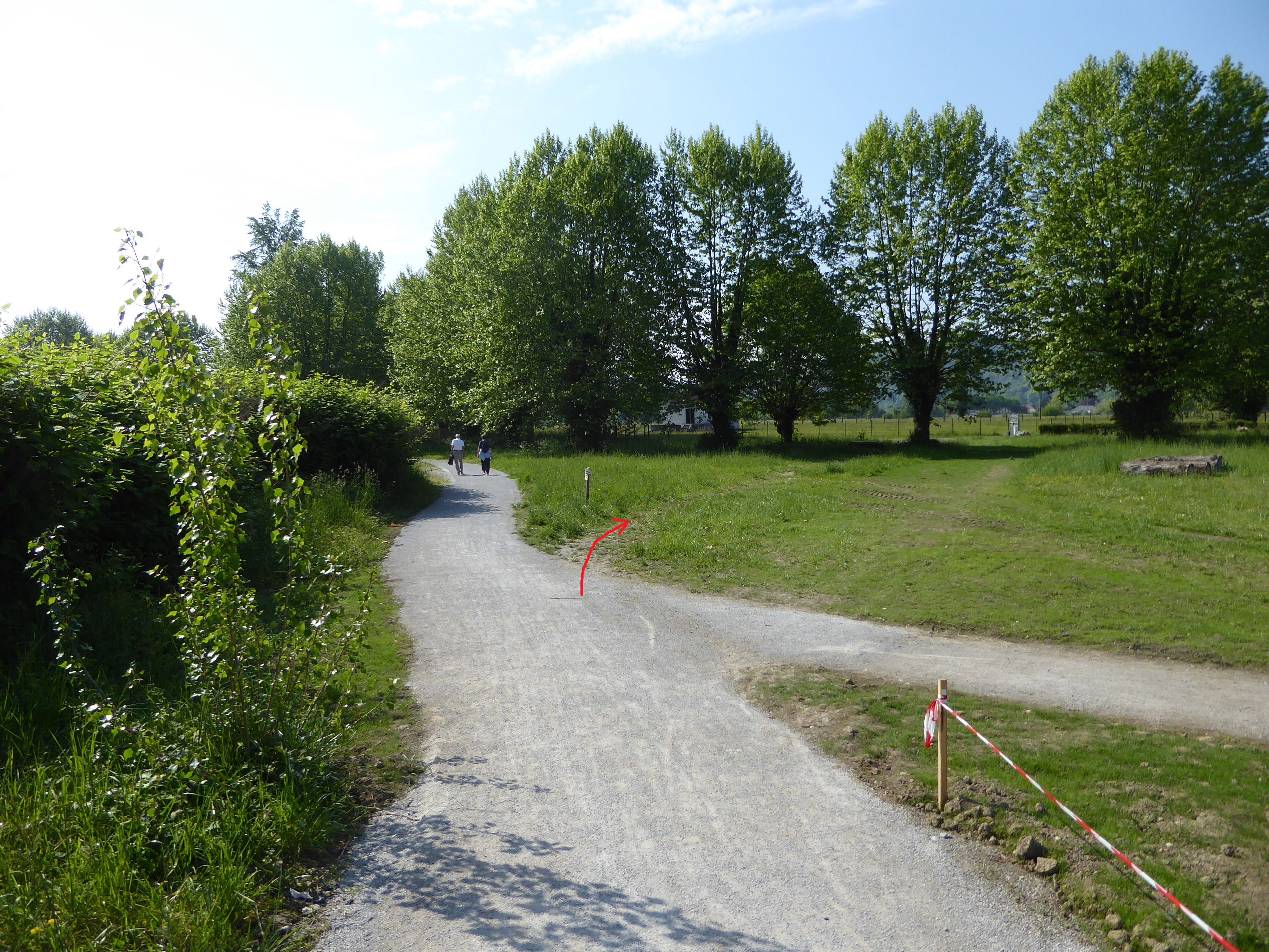 A ce croisement, continuer à suivre le chemin bien stabilisé partant sur la gauche direction Stade d'eaux vives