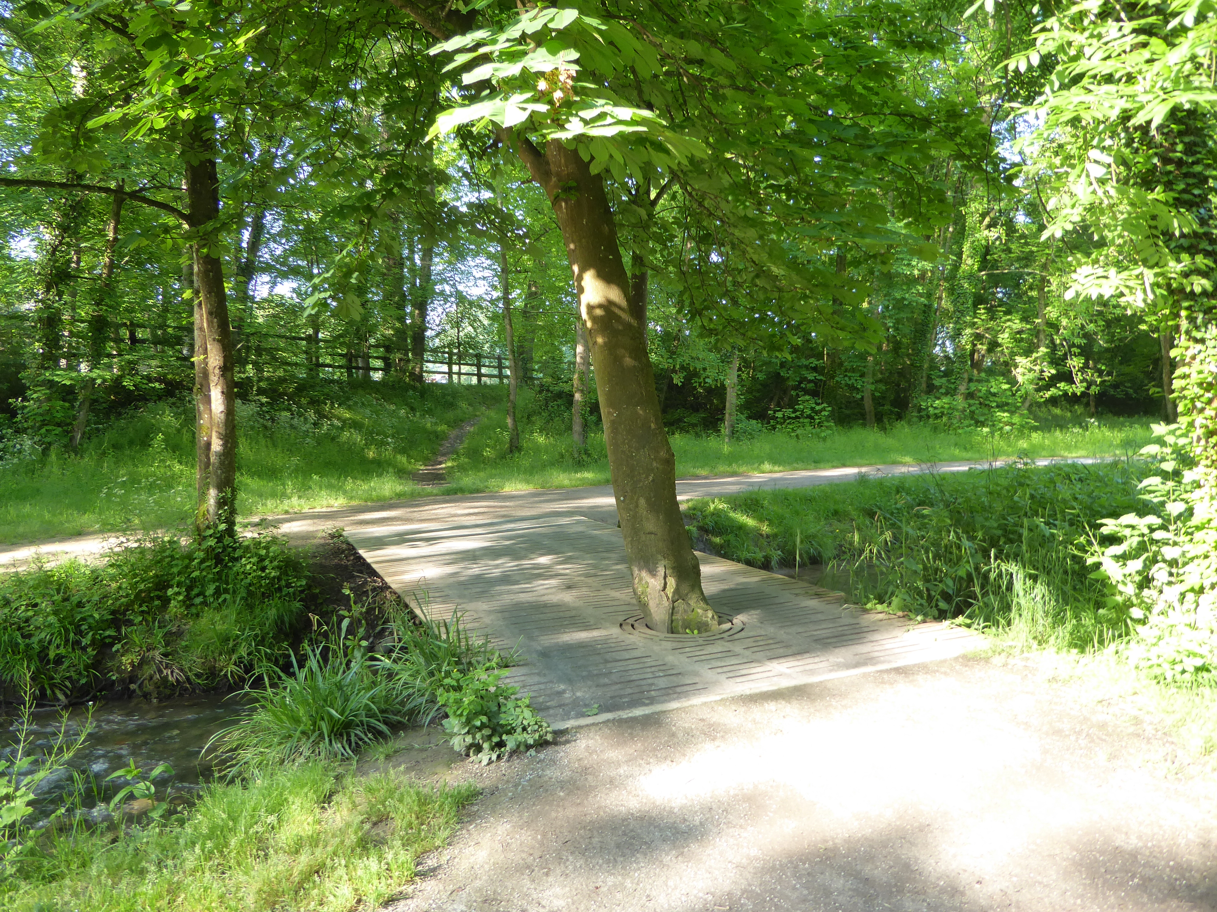 Au niveau de ce pont enjambant le Ruisseau de Lasbouries, suivre le large chemin partant sur la droite direction Stade d'eaux vives