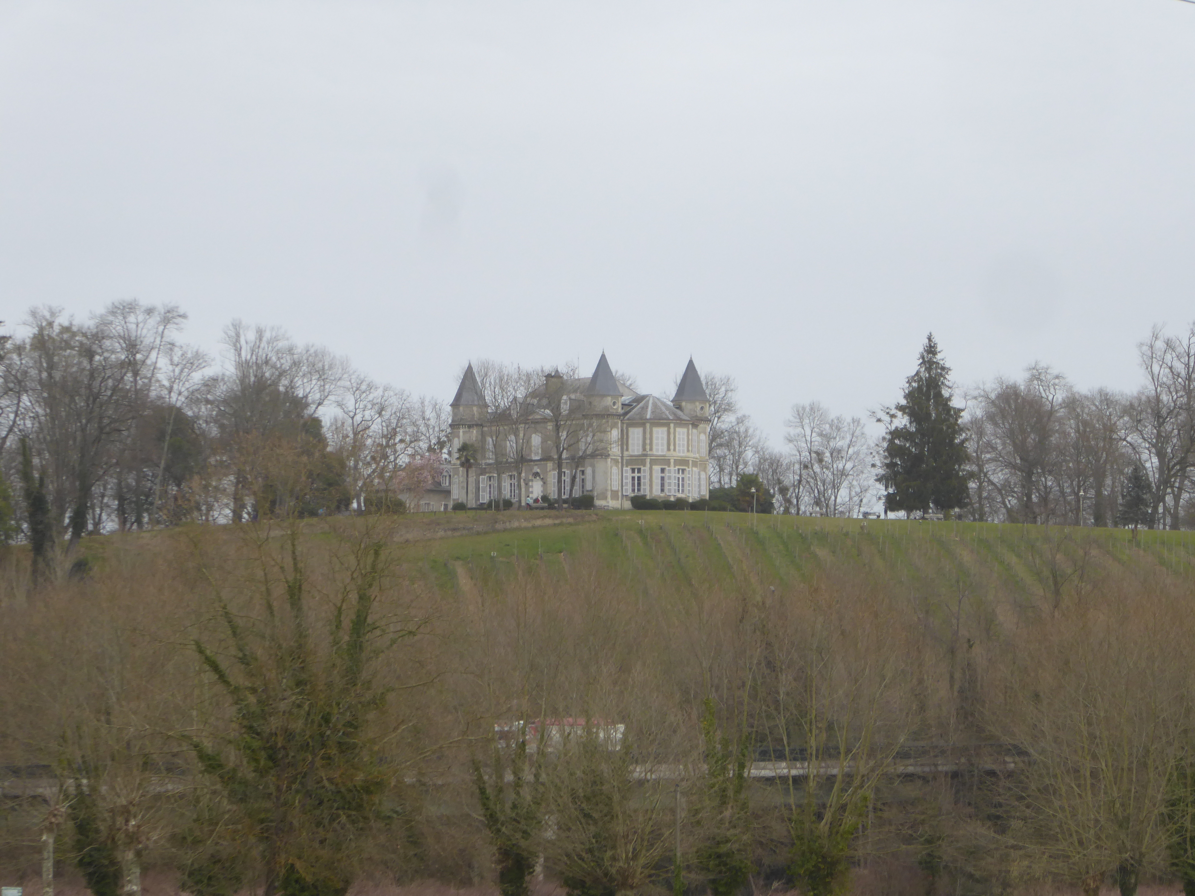 Zoom sur le Château de Franqueville qui offre un beau point de vue sur la Vallée du Gave de Pau, les Pyrénées bigourdanes et béarnaises par beau temps
