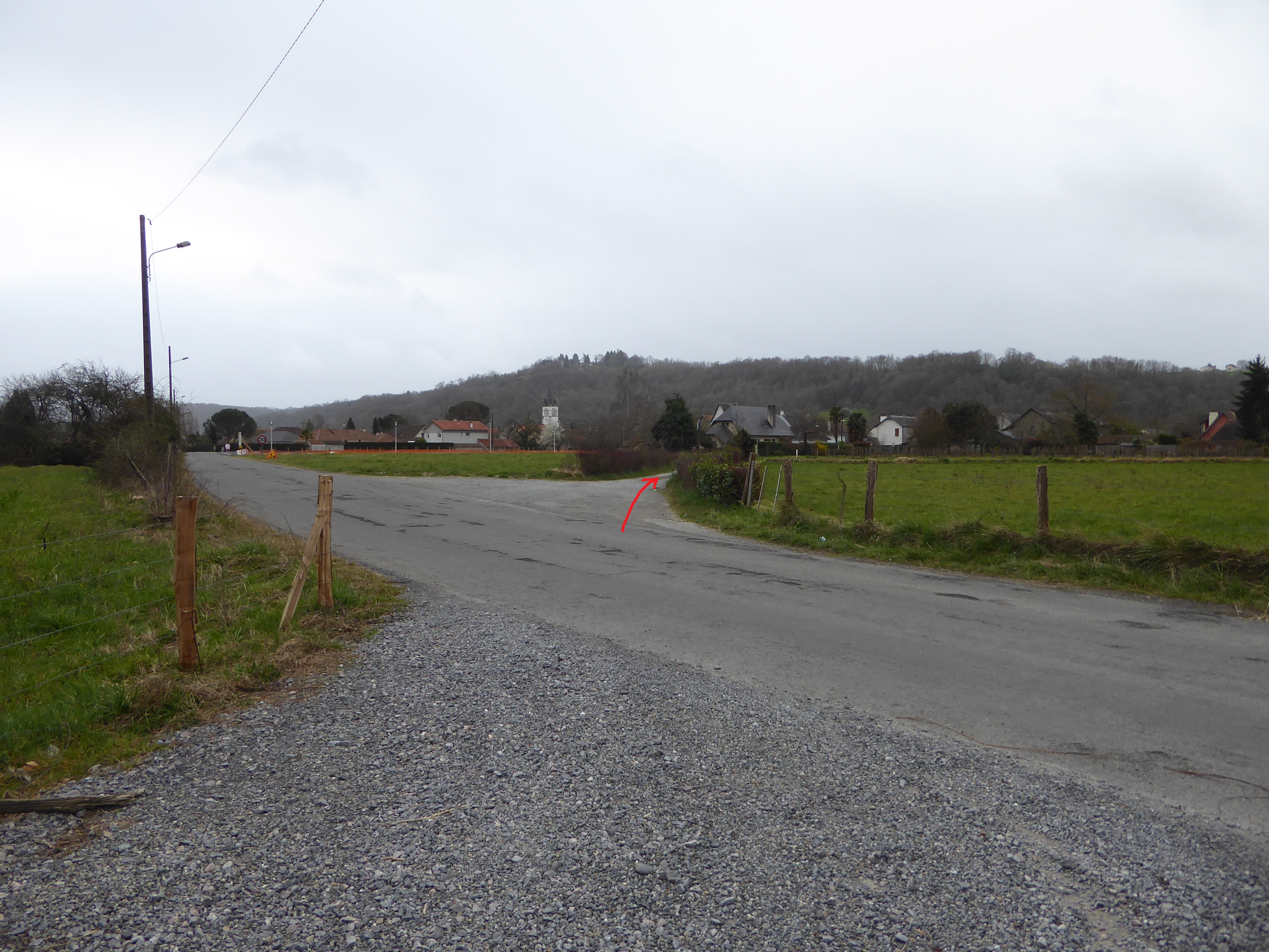 A ce croisement juste avant le stade d'Uzos, suivre le chemin partant sur la droite direction Stade d'Uzos