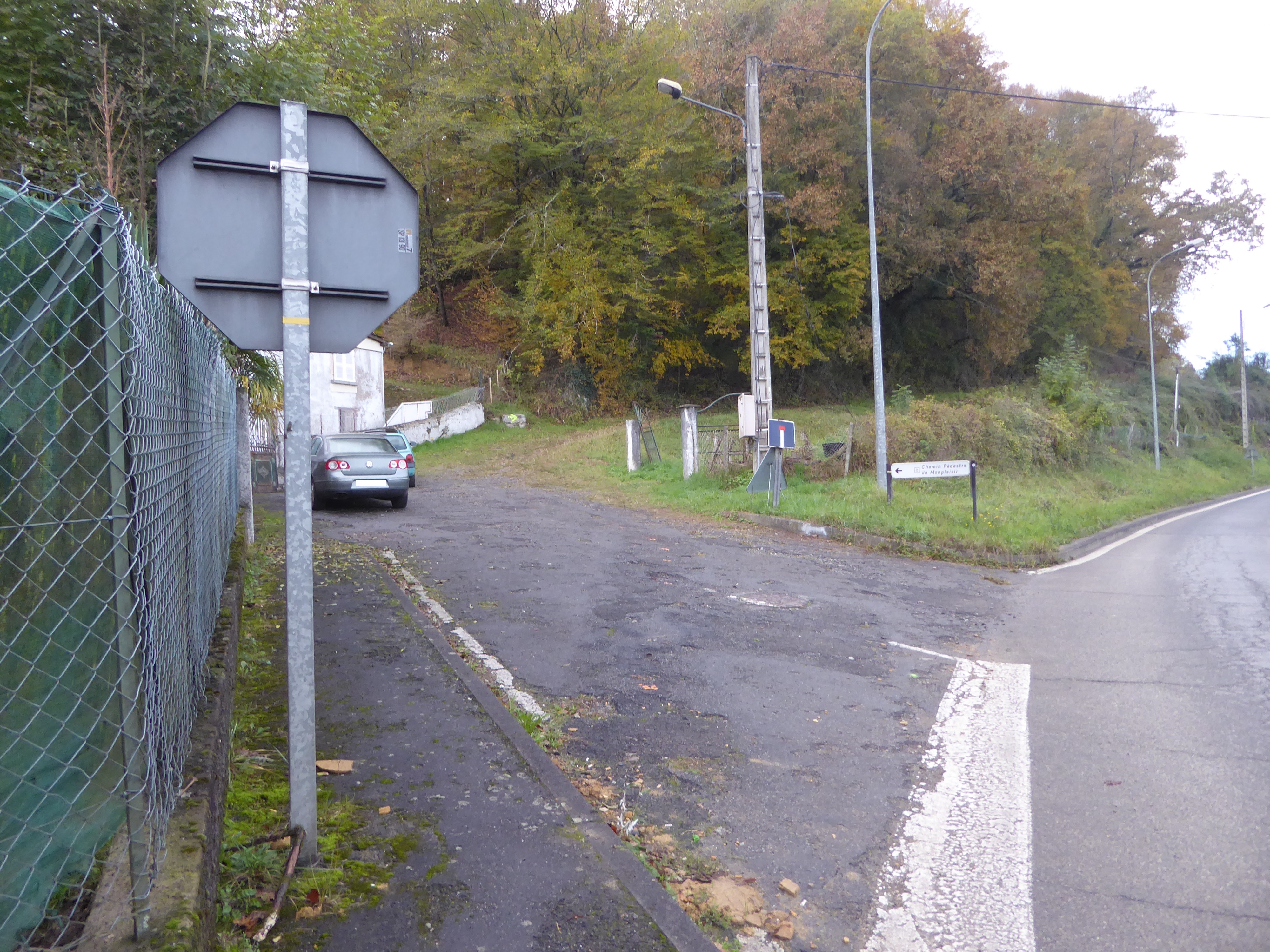 Au niveau de cette patte d'oie (296 m), suivre la route partant tout droit direction Début du Chemin de Monplaisir
