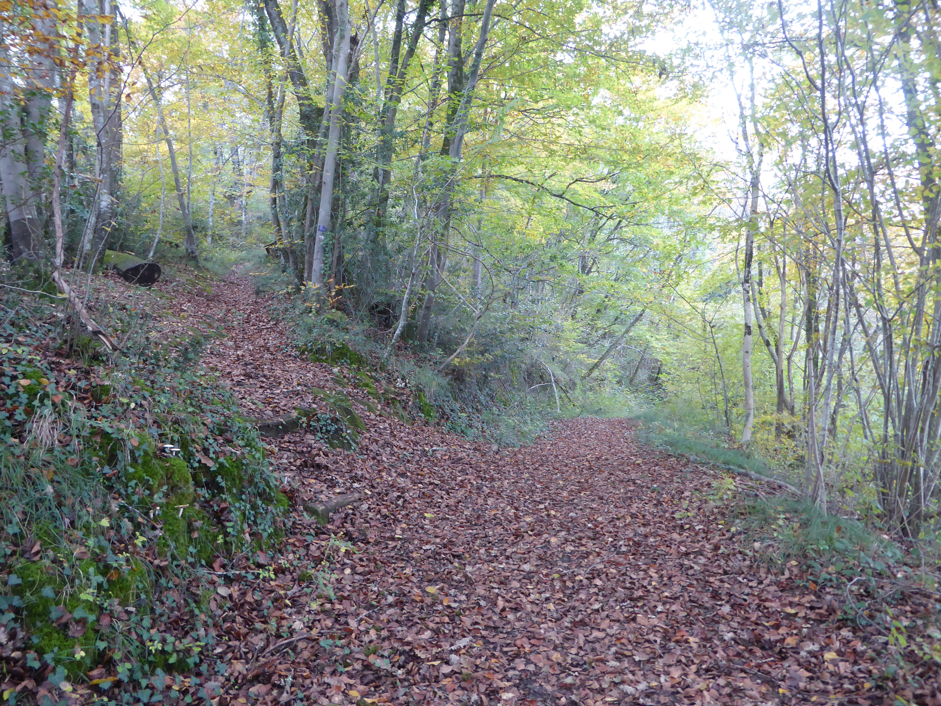 A ce croisement dans le sous-bois après avoir contourné la propriété Sobolle, suivre le chemin montant tout droit puis faisant une épingle sur la gauche direction la Jurançonada