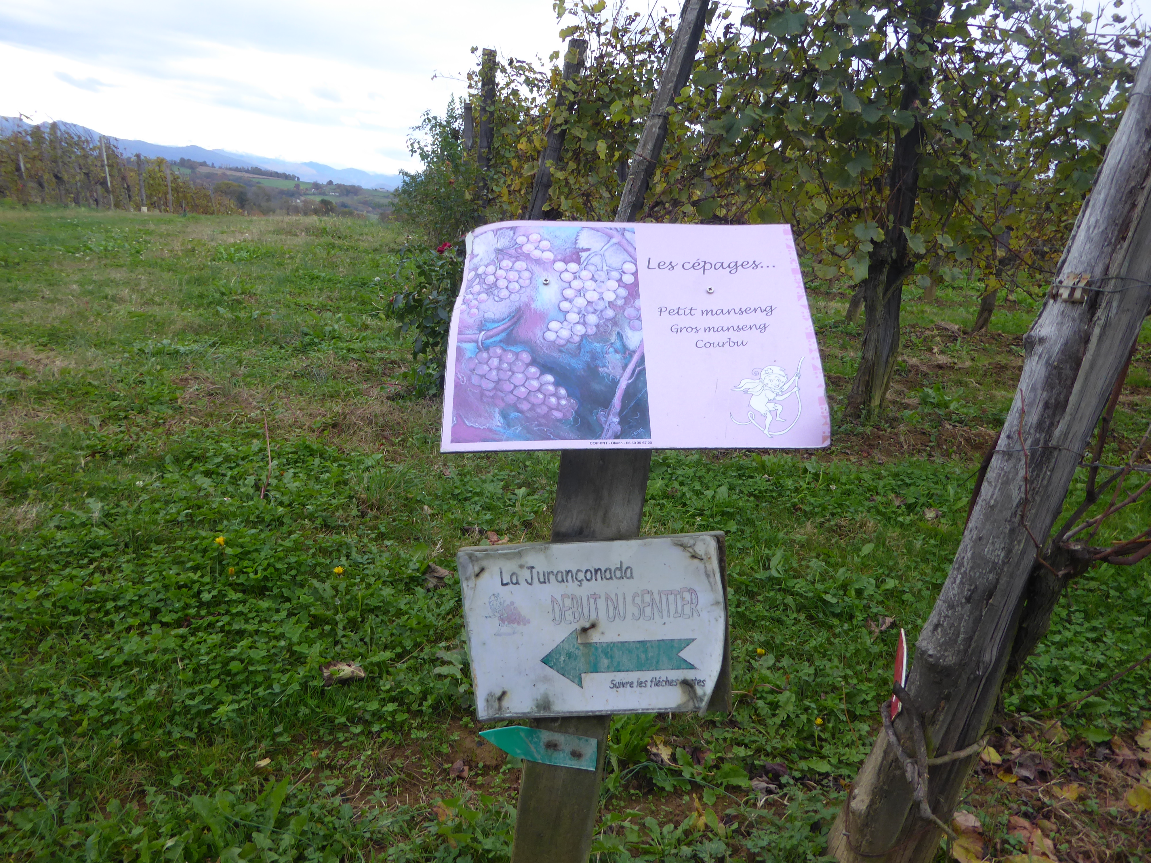C'est parti pour le sentier de la Jurançonada à travers les vignes du Clos Lapeyre et du Camin Larredya (le belvédère se trouve au point culminant du sentier)