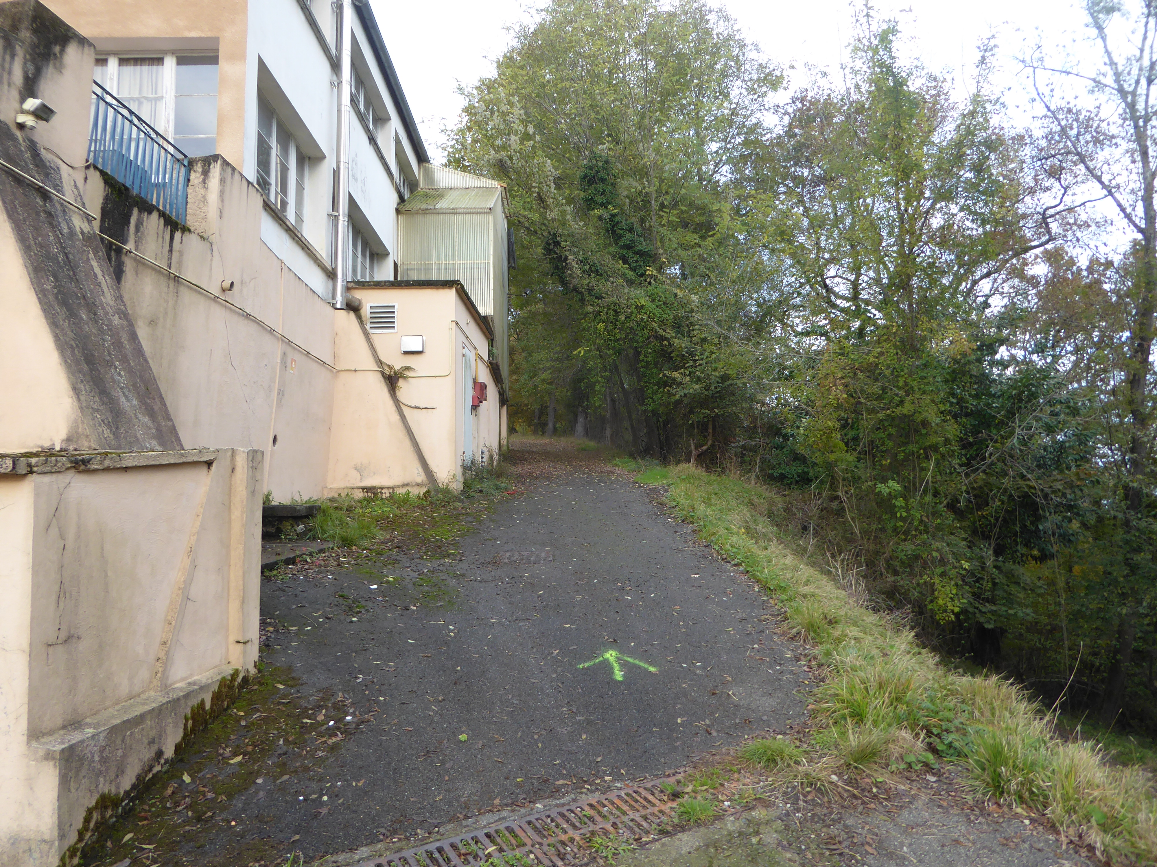 Au niveau de cette dernière flèche verte rencontrée dans le Domaine Larredya, suivre le large chemin montant tout droit direction Début du Chemin de Monplaisir, balisé en flèches vertes