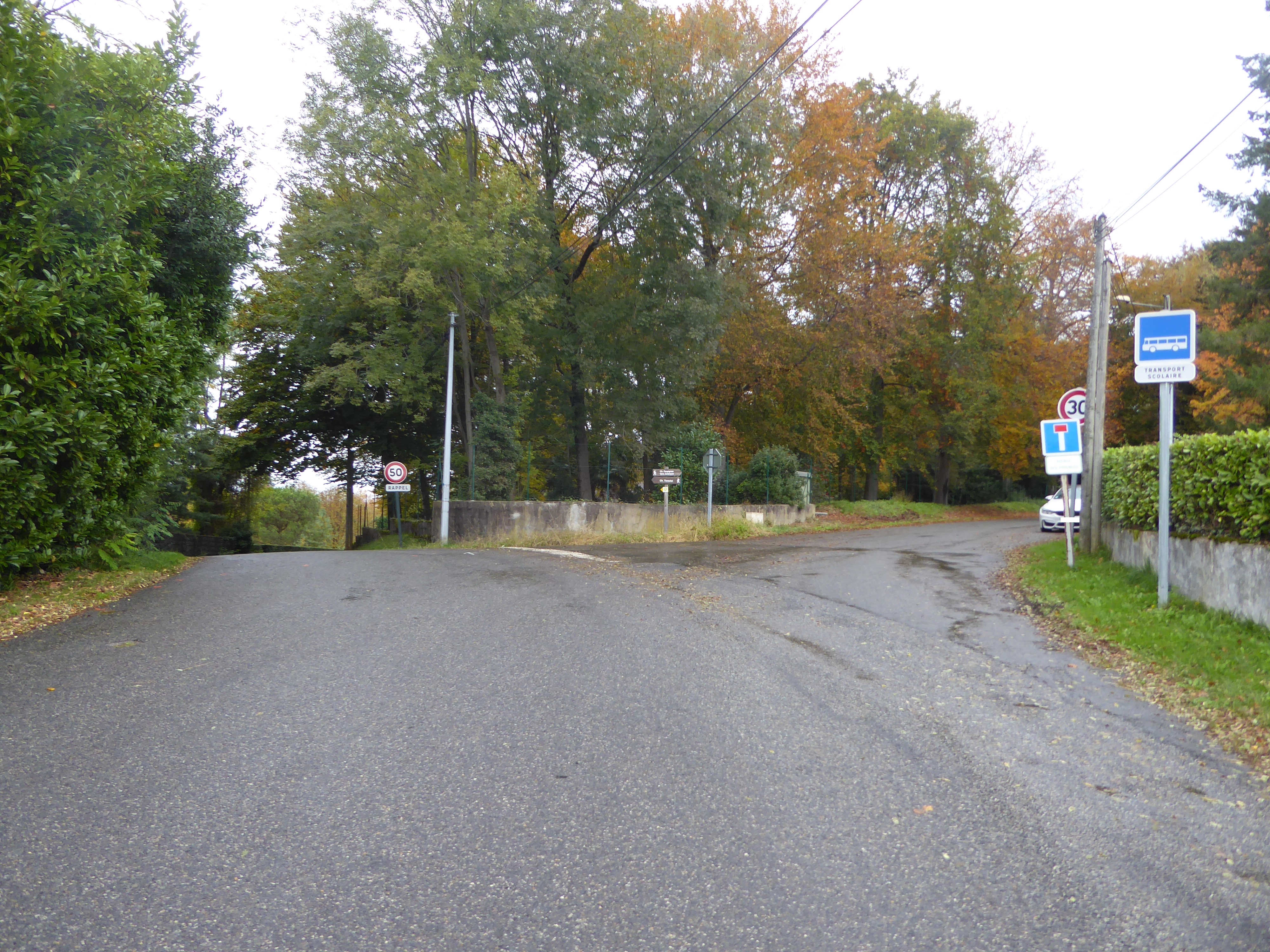 Au niveau du restaurant "Chez Ruffet", suivre la rue partant légèrement sur la droite direction Début du Chemin de Monplaisir