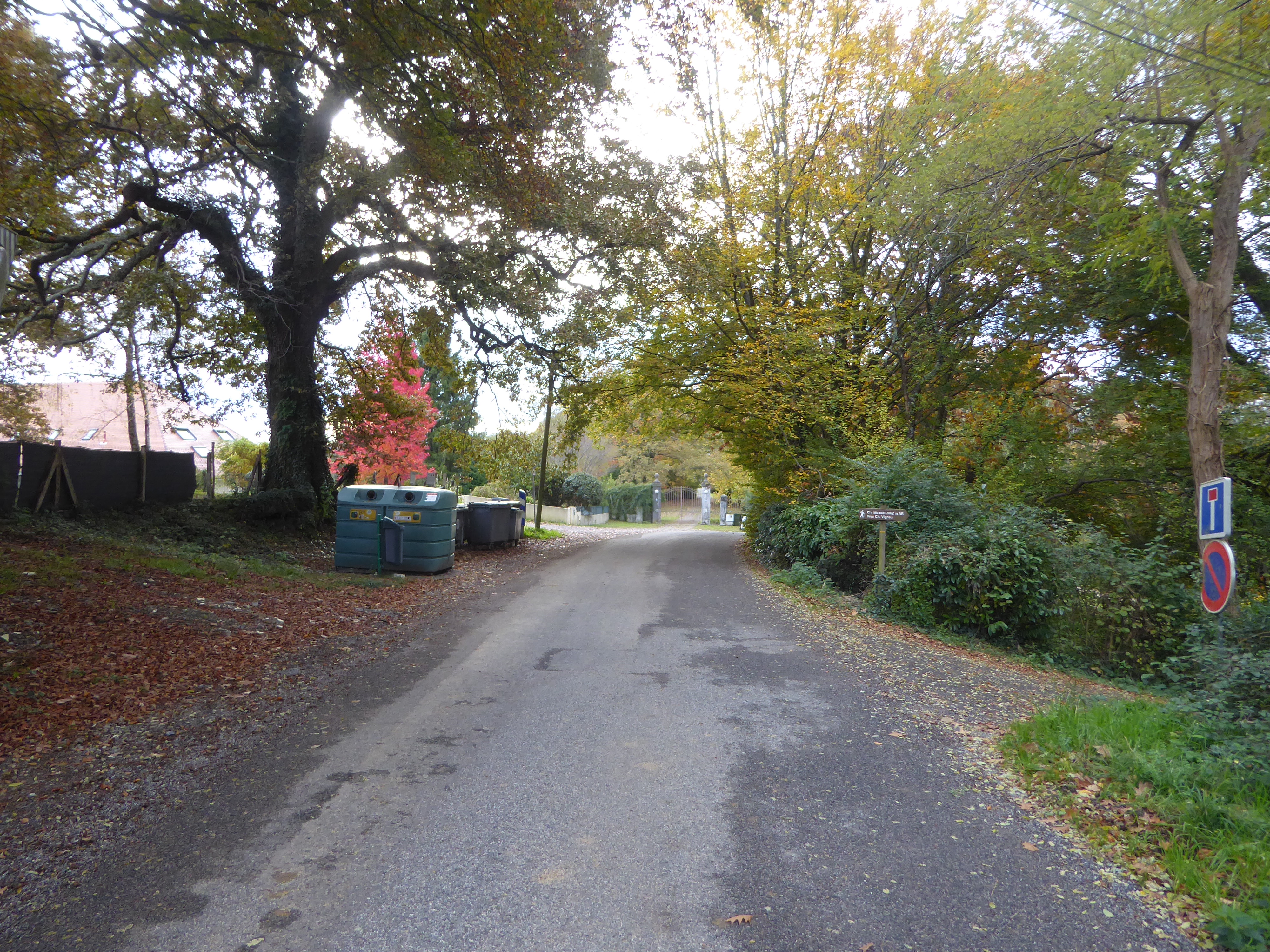 A ce croisement avec le Chemin Mirabel (328 m), suivre ce dernier qui descend sur la droite direction la Jurançonada