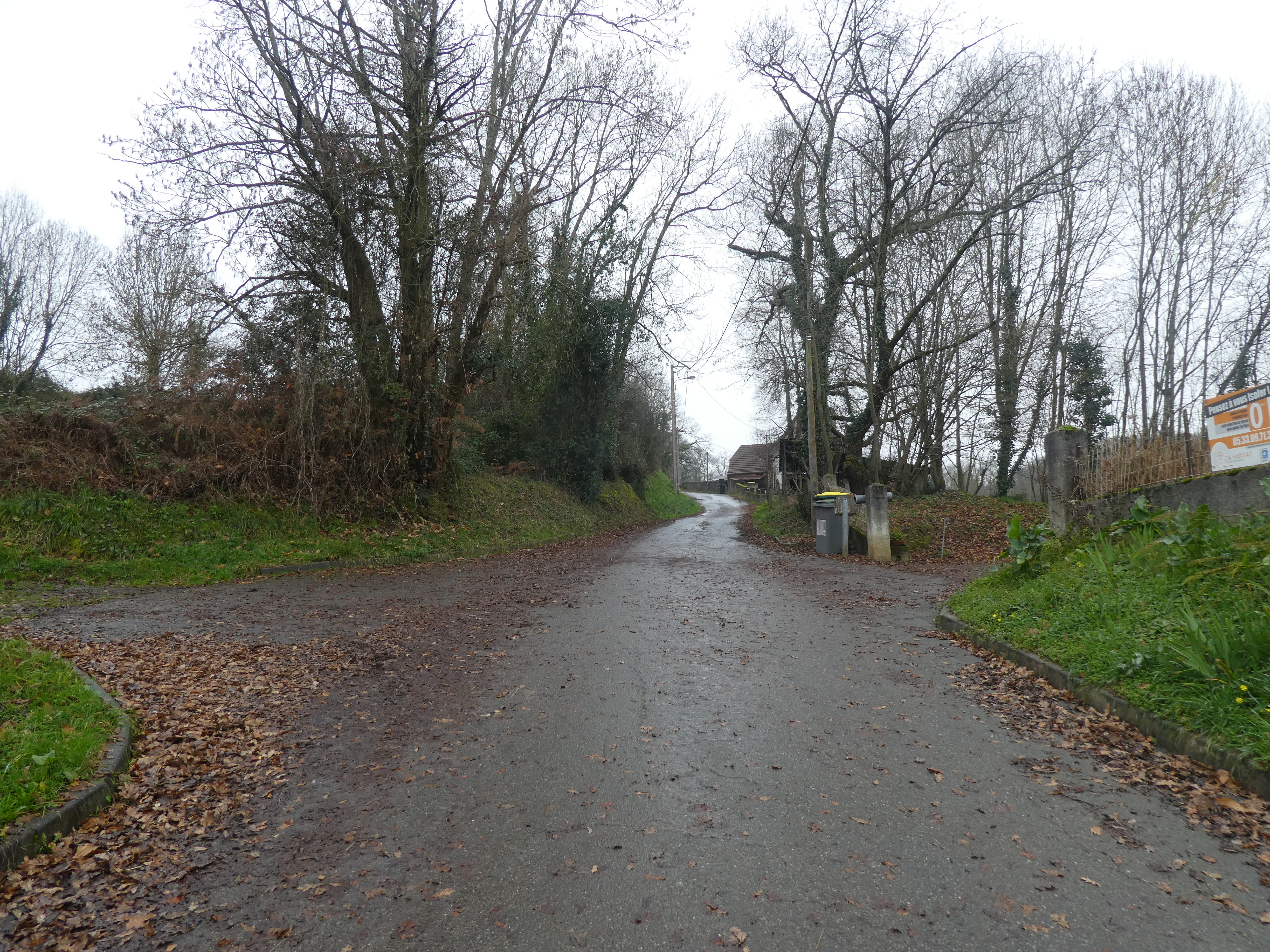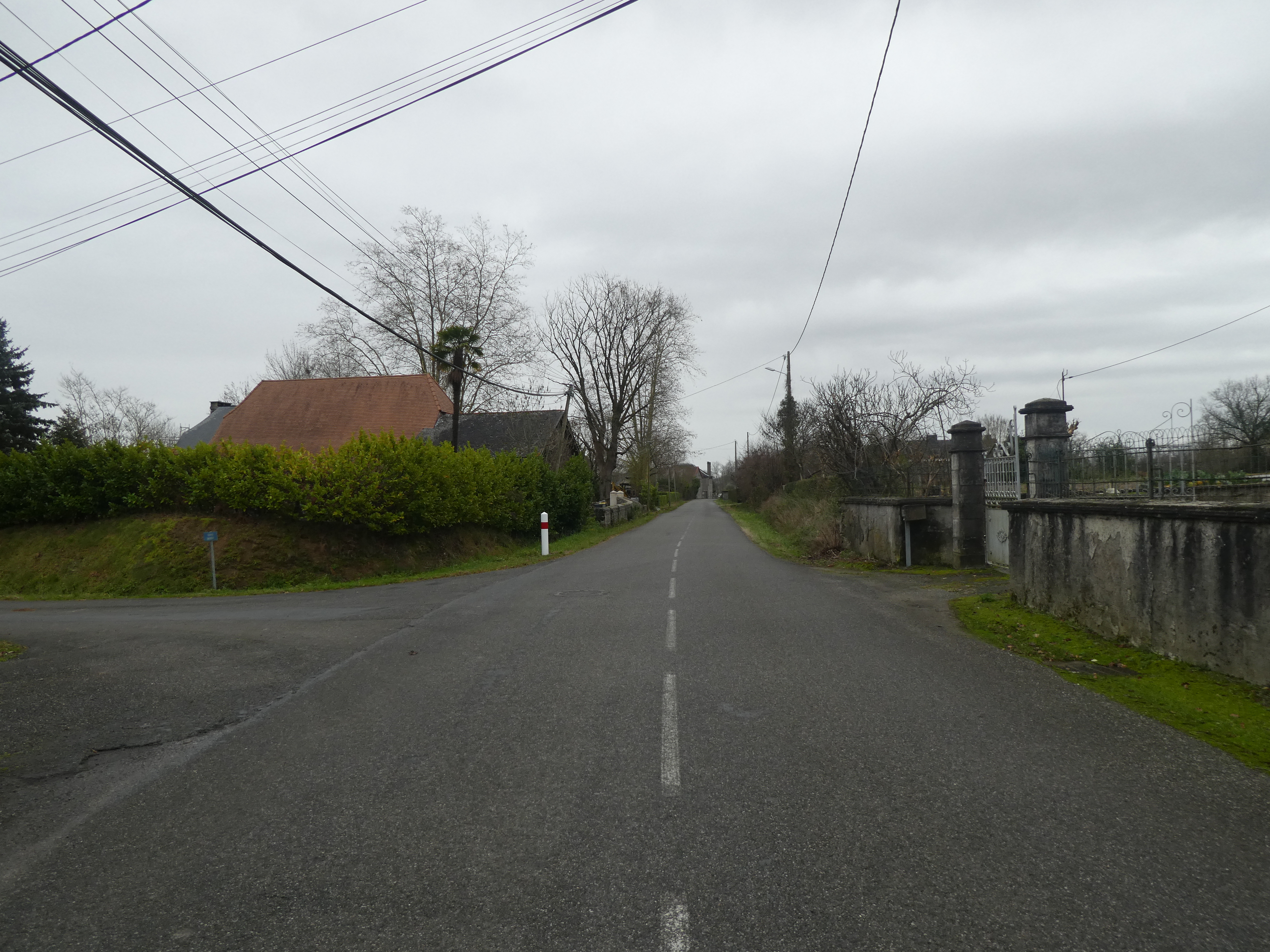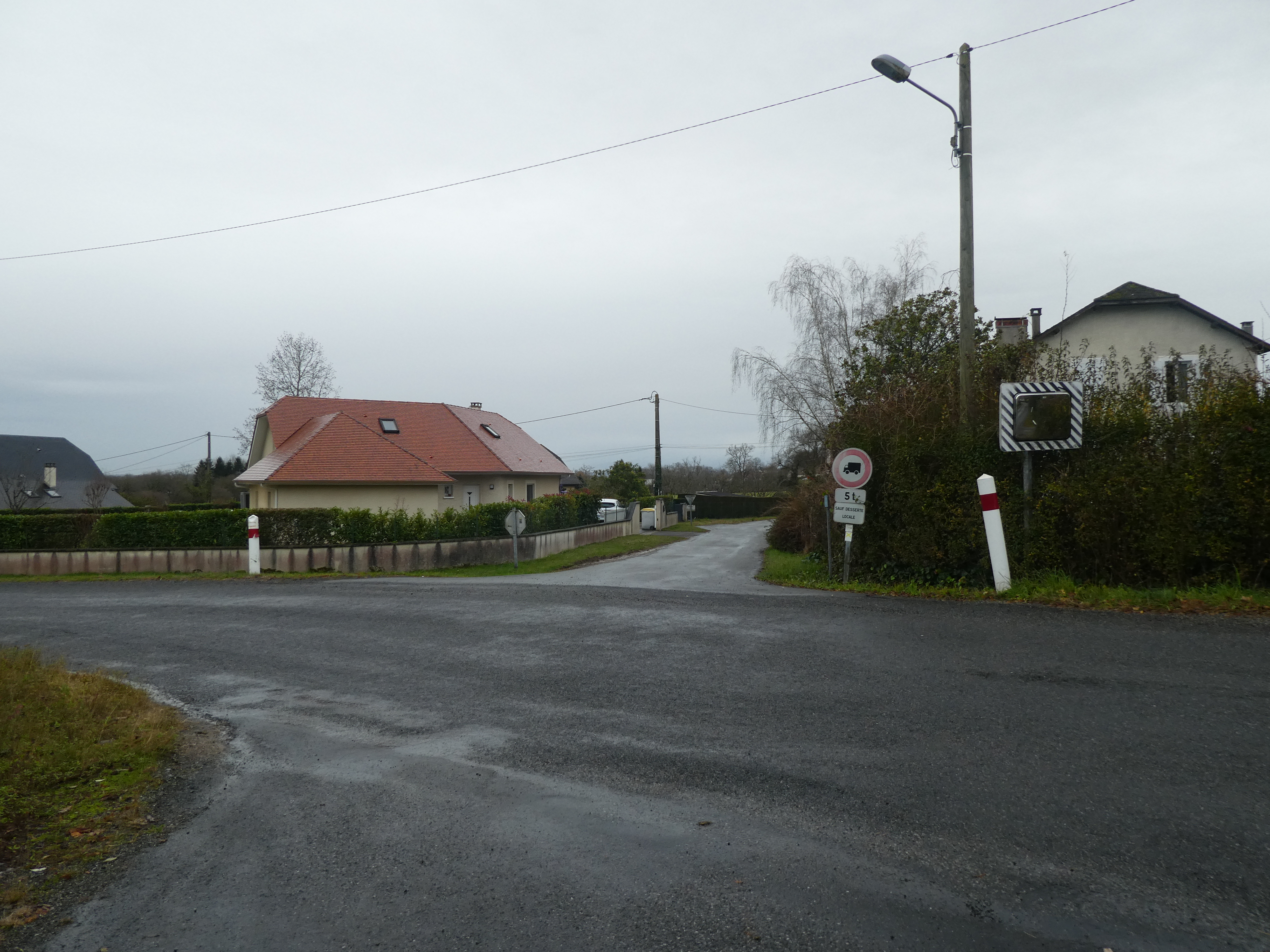 A ce croisement situé à l'entrée du village de Viellenave-d'Arthez (350 mètres après le précédent), suivre la rue partant sur la gauche direction Bougarber, balisé en jaune (balises n°4) (bien suivre les balises jaunes pour sortir du village)