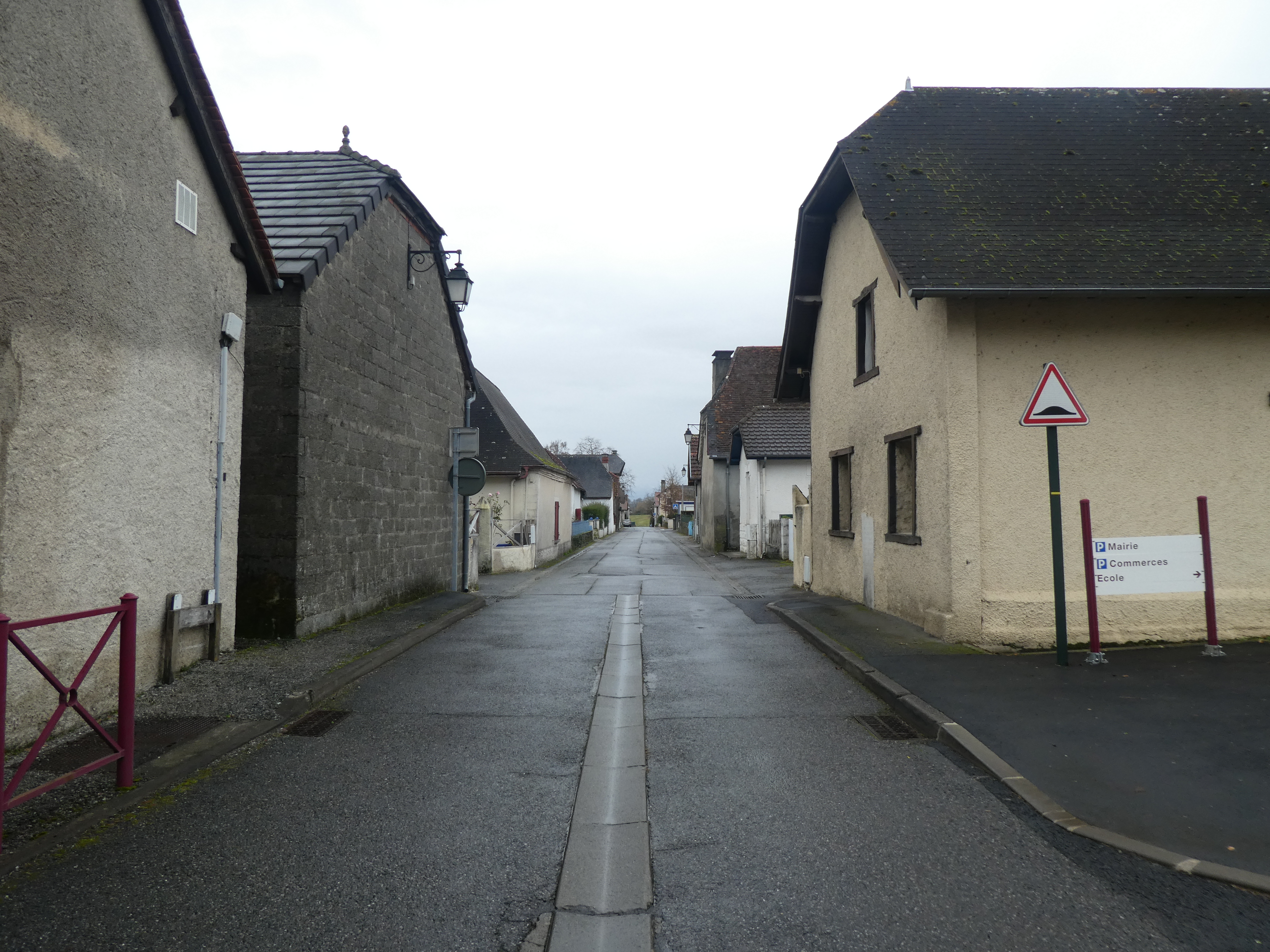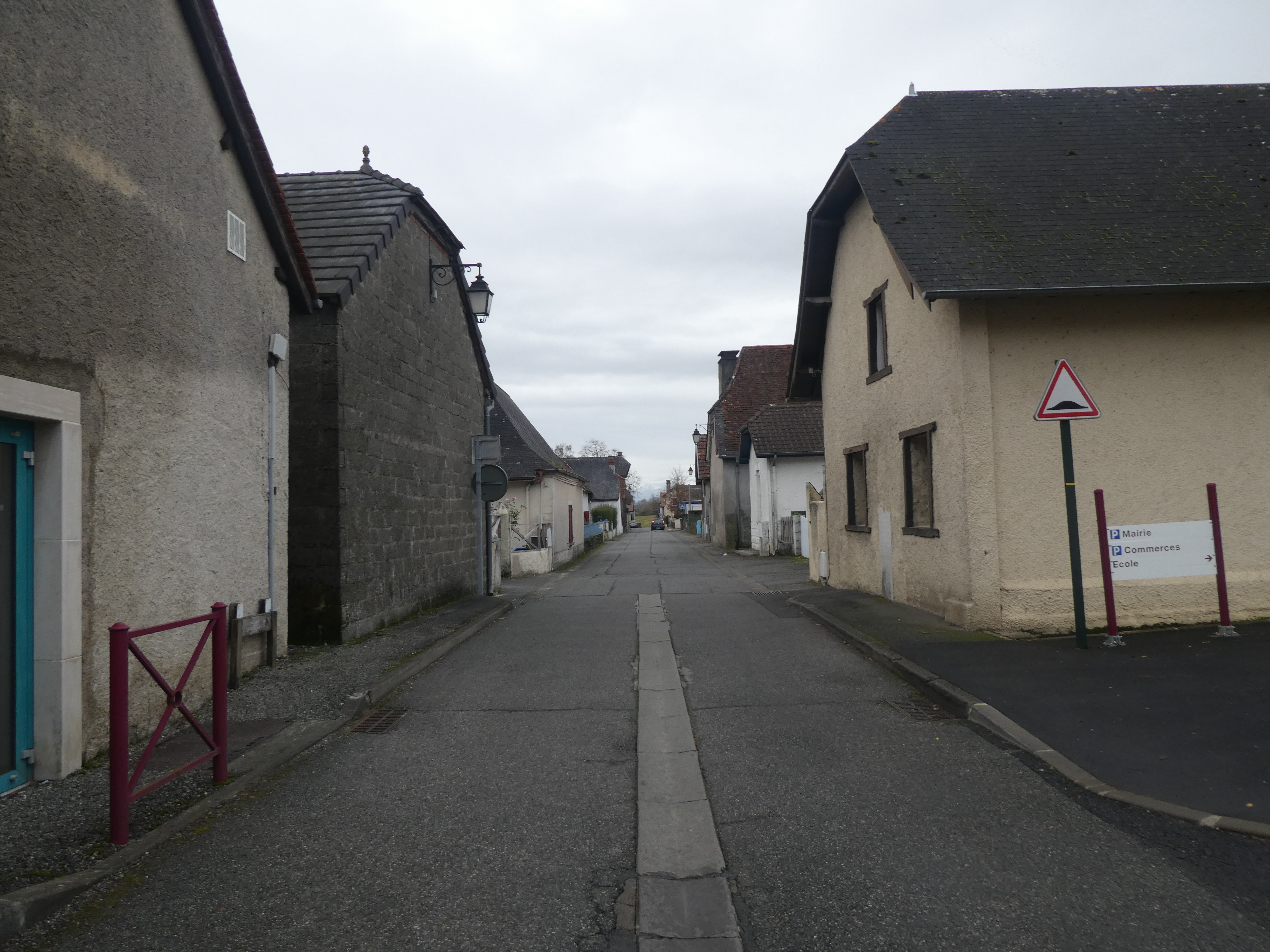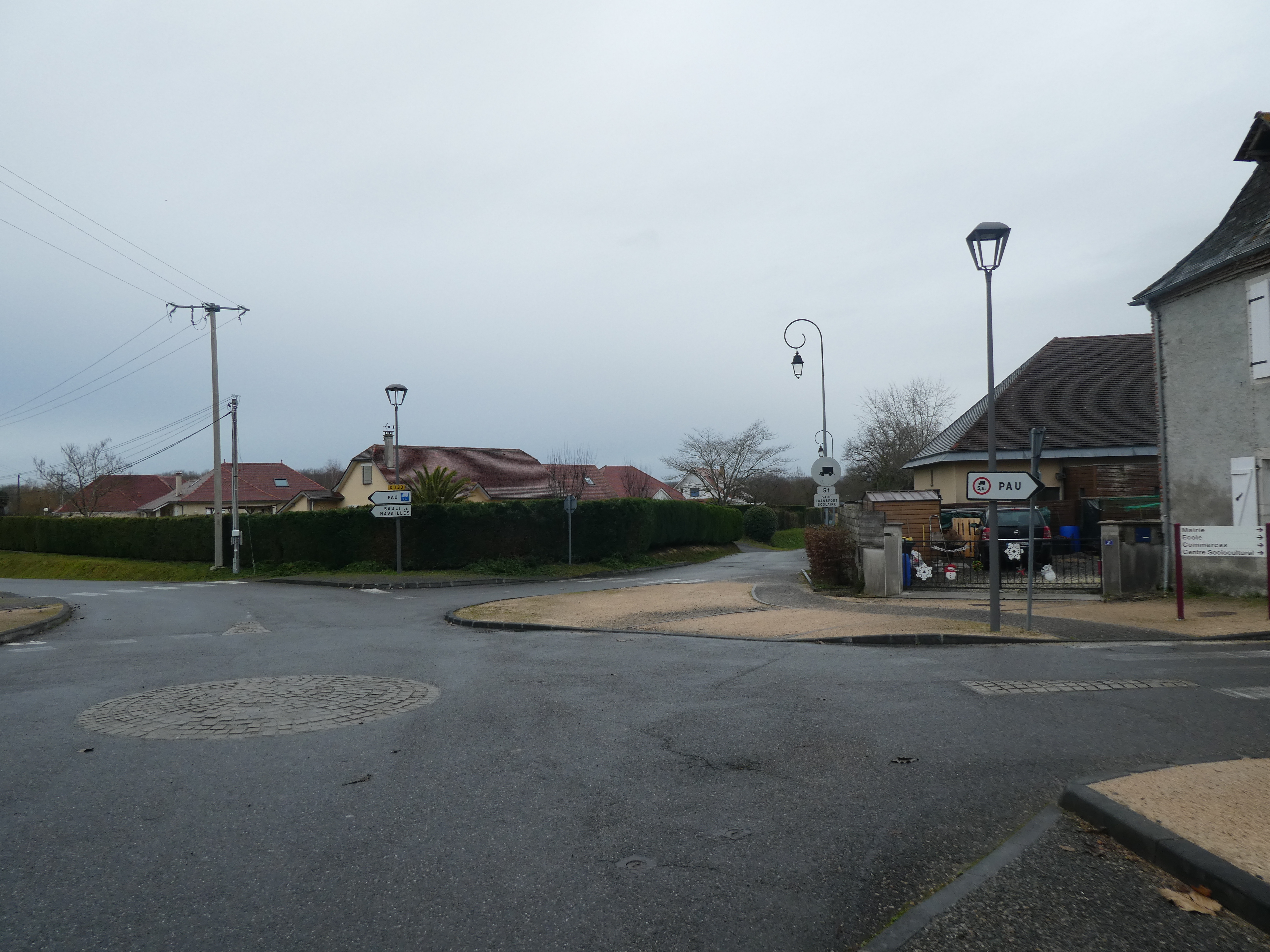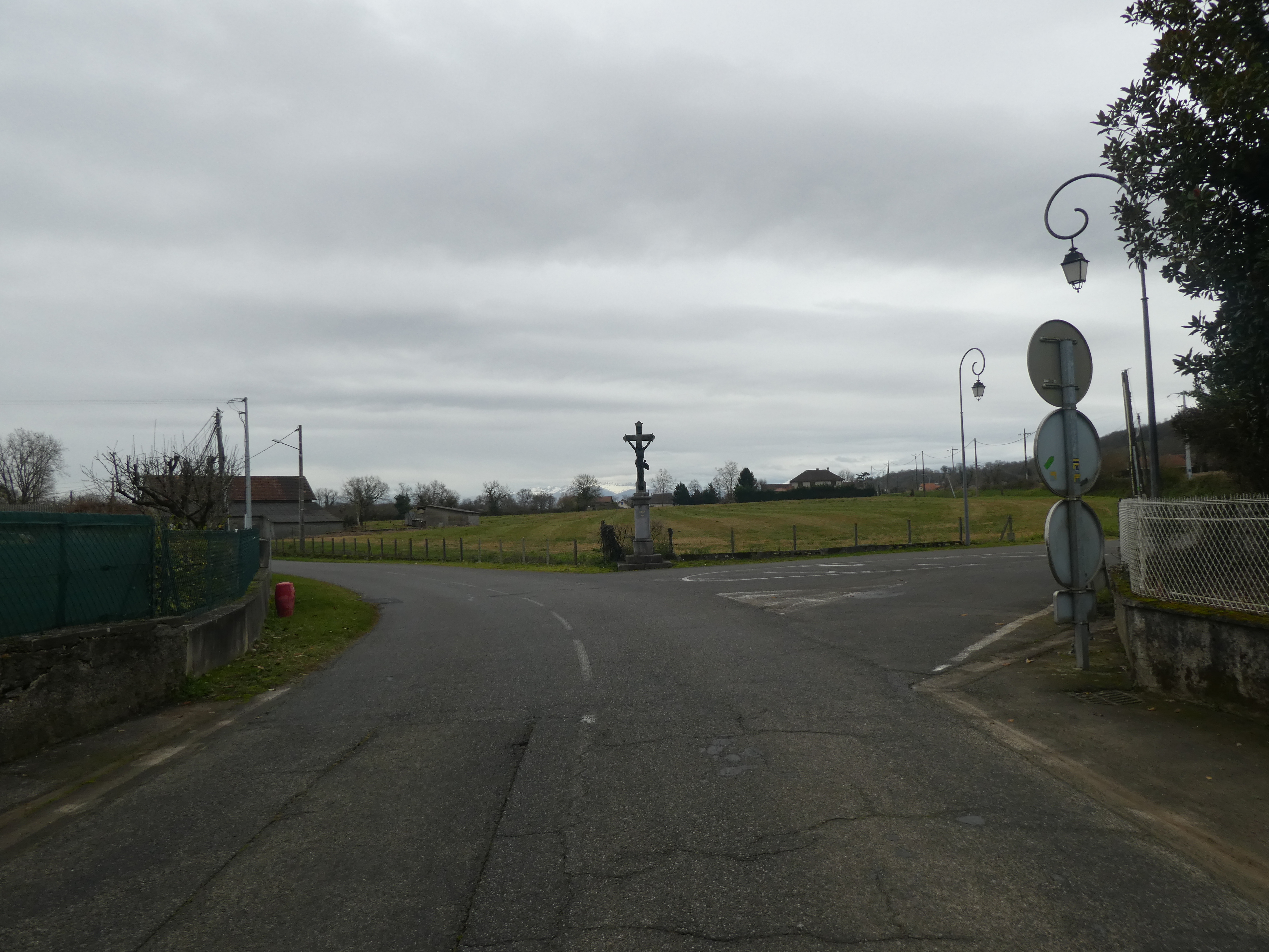 A ce croisement situé à l'entrée du village de Viellenave-d'Arthez (350 mètres après le précédent), suivre la rue partant sur la gauche direction Bougarber, balisé en jaune (balises n°4) (bien suivre les balises jaunes pour sortir du village)