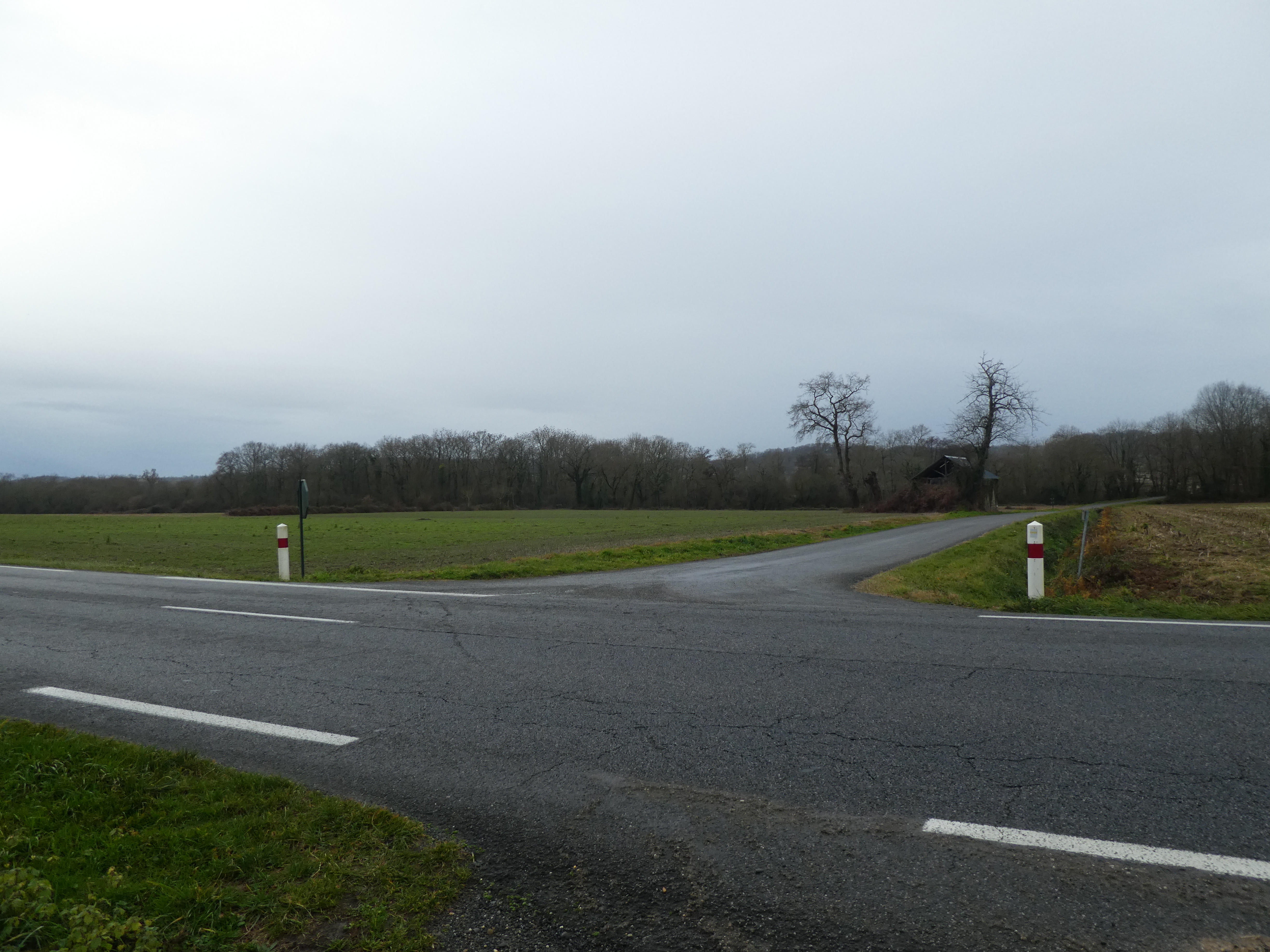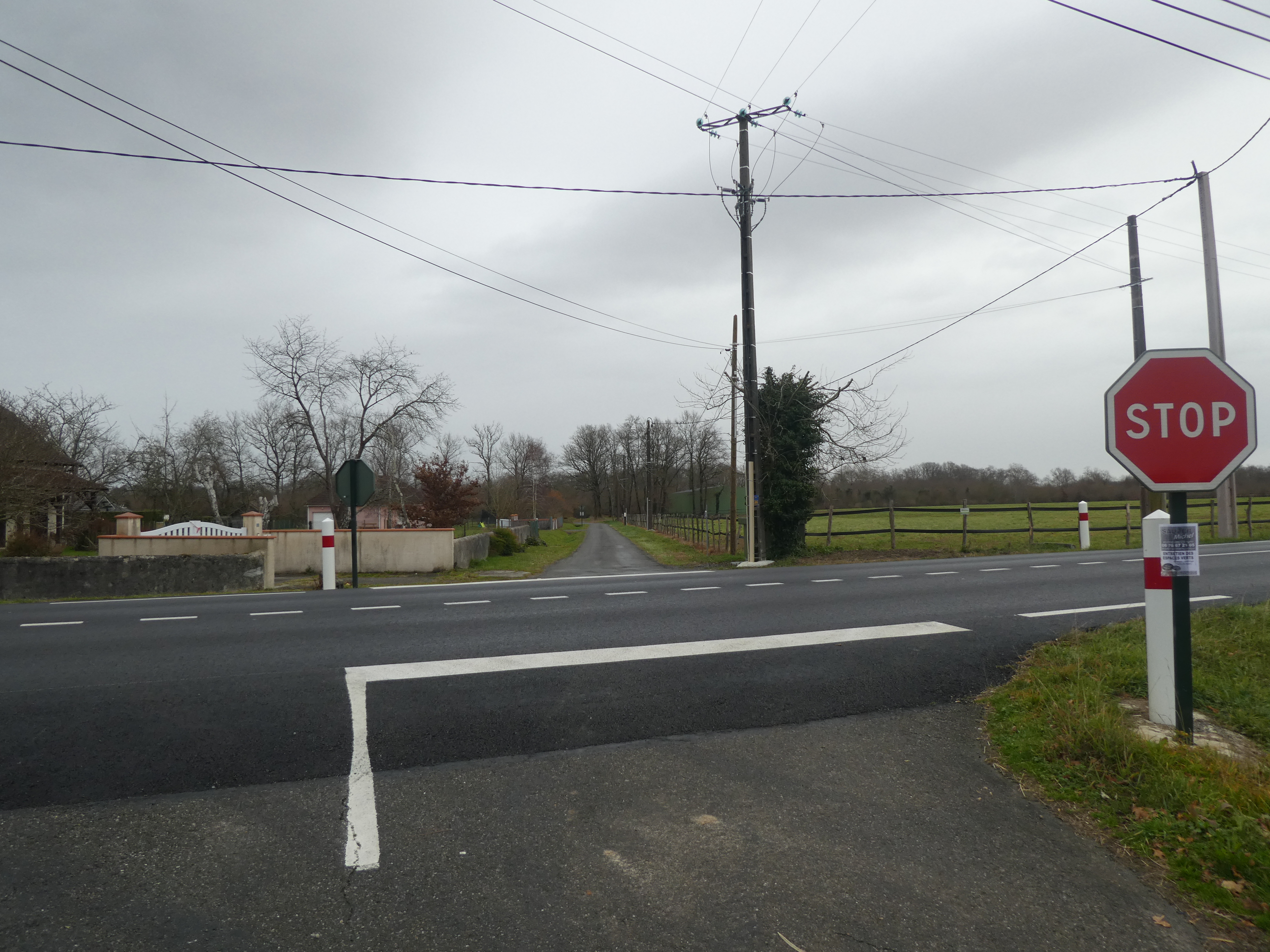A ce croisement avec la D945 (600 mètres après le précédent) (158 m), suivre la route partant tout droit direction Viellenave-d'Arthez, balisé en jaune (balises n°4) dorénavant (traverser prudemment la D945 !)