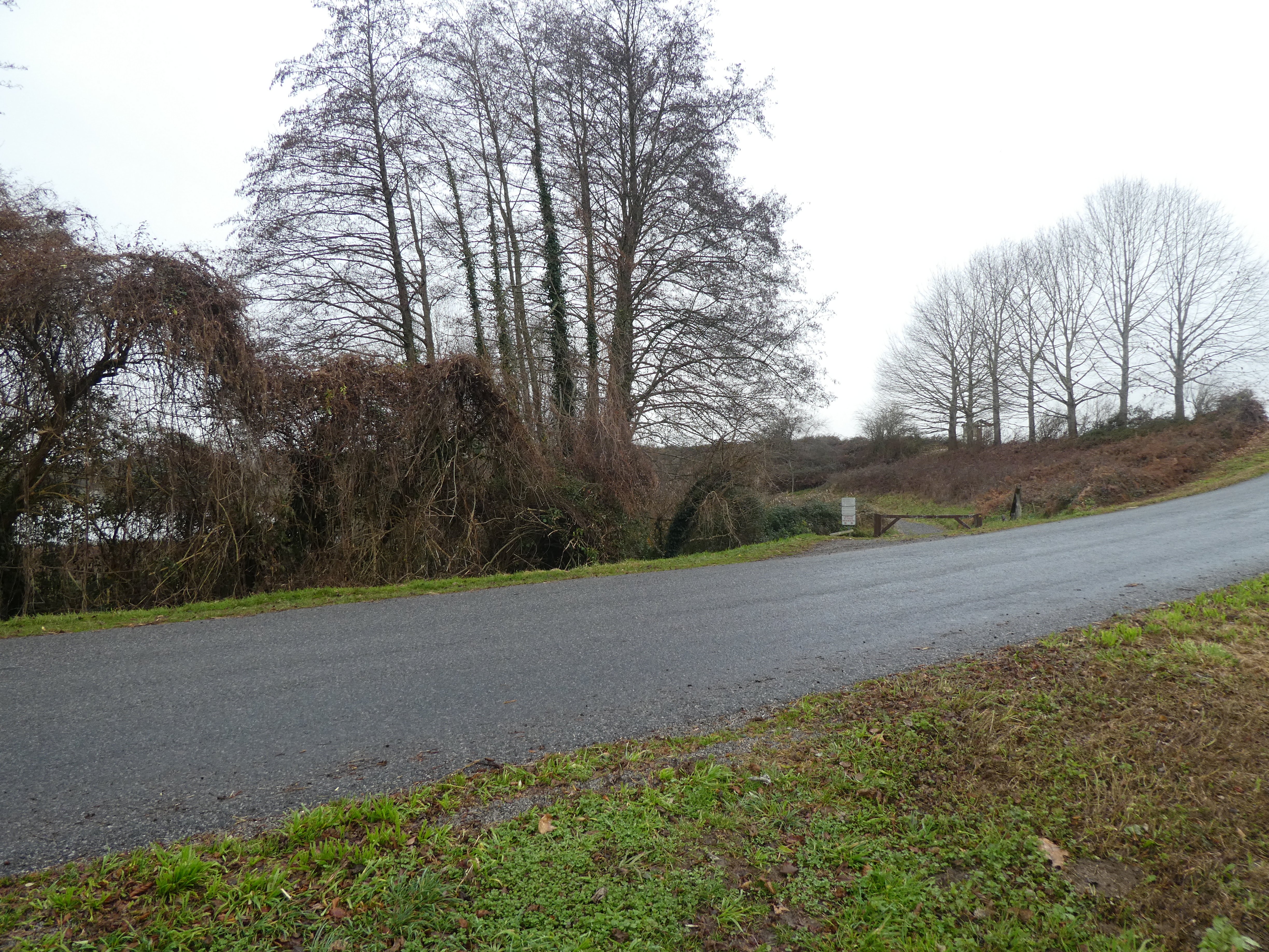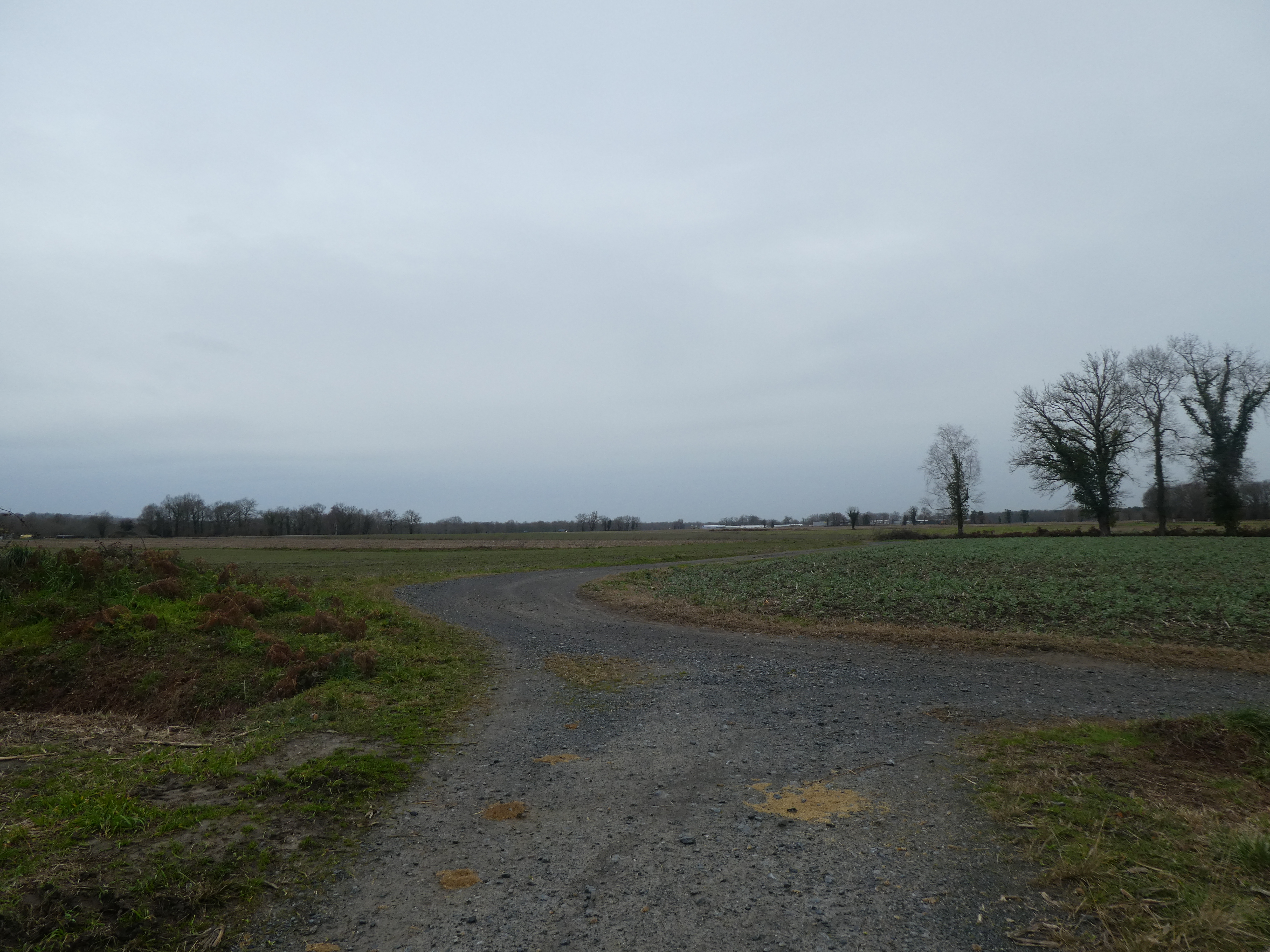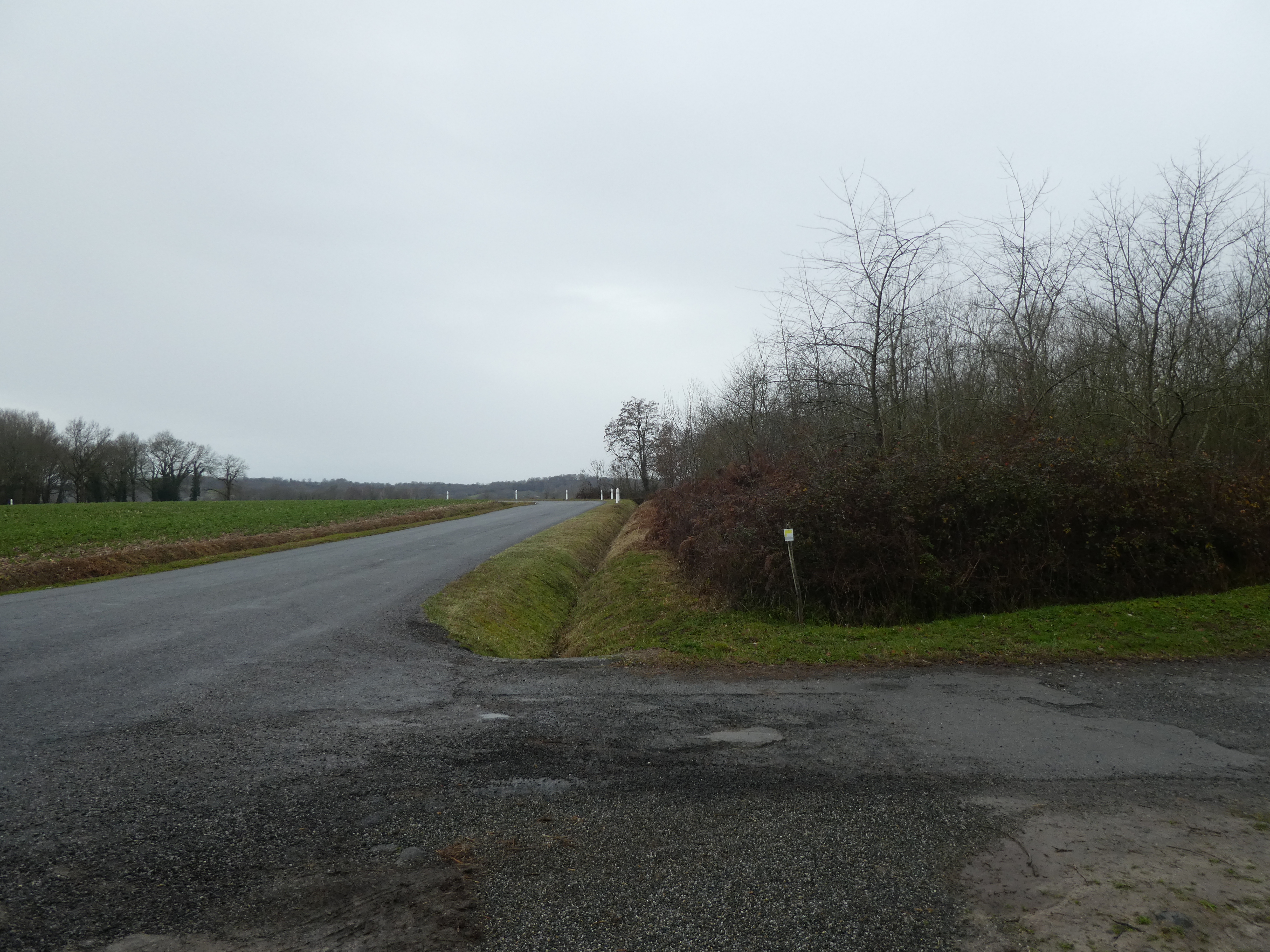 A ce croisement situé au niveau du Haras du Moulin (900 mètres après avoir traversé la D945), suivre le large chemin partant tout droit direction Lac de l'Ayguelongue, aucun balisage dorénavant