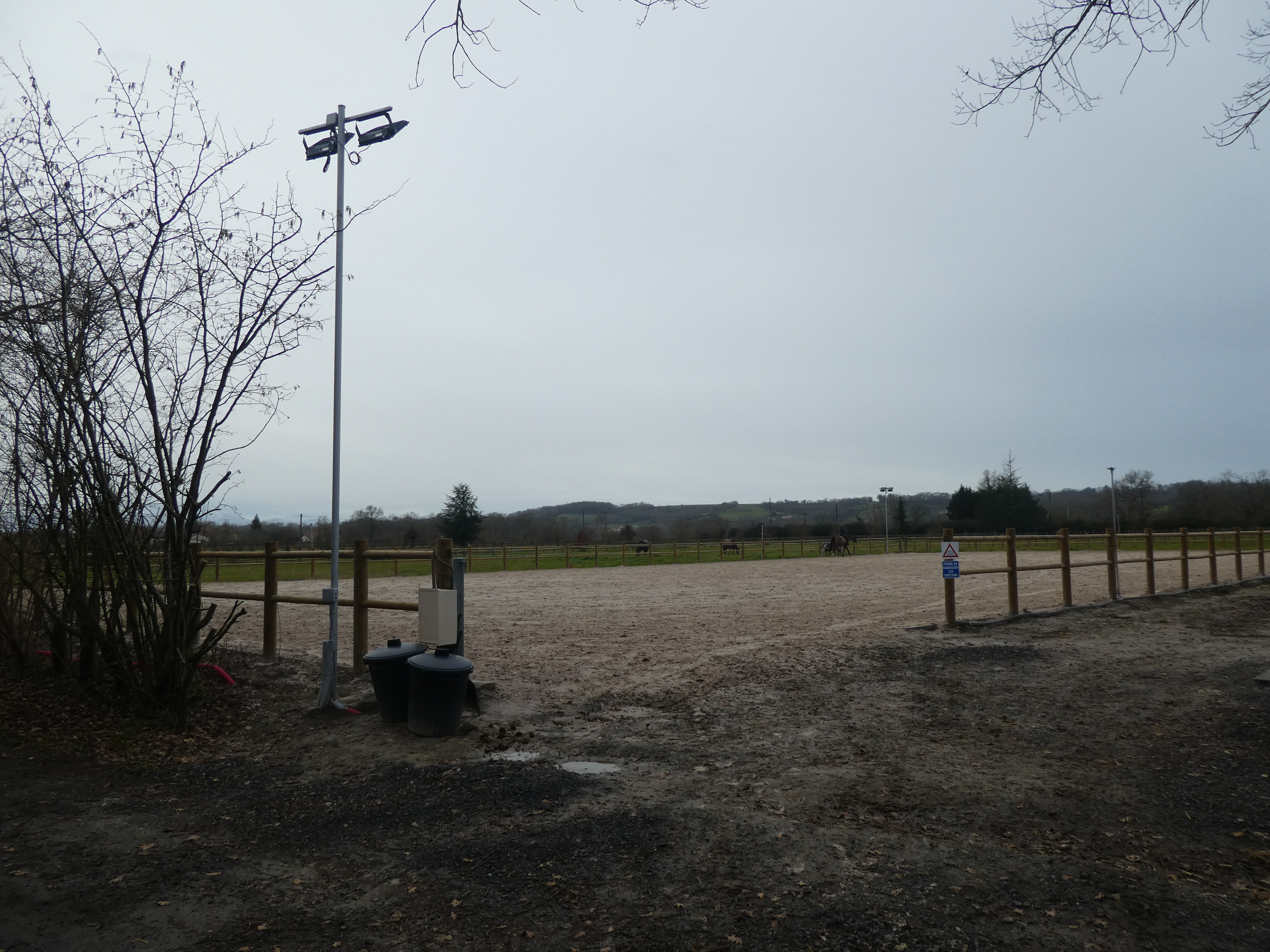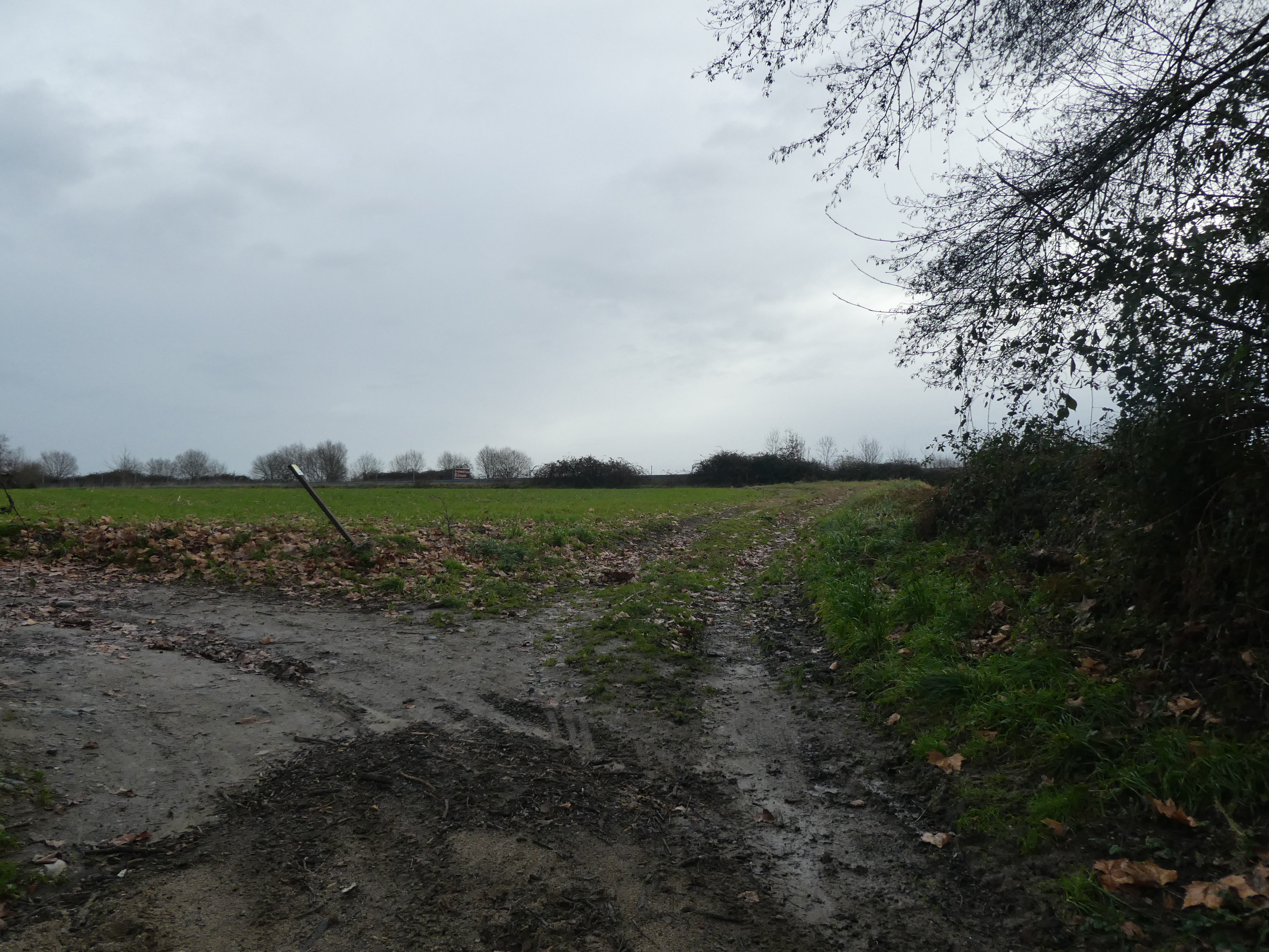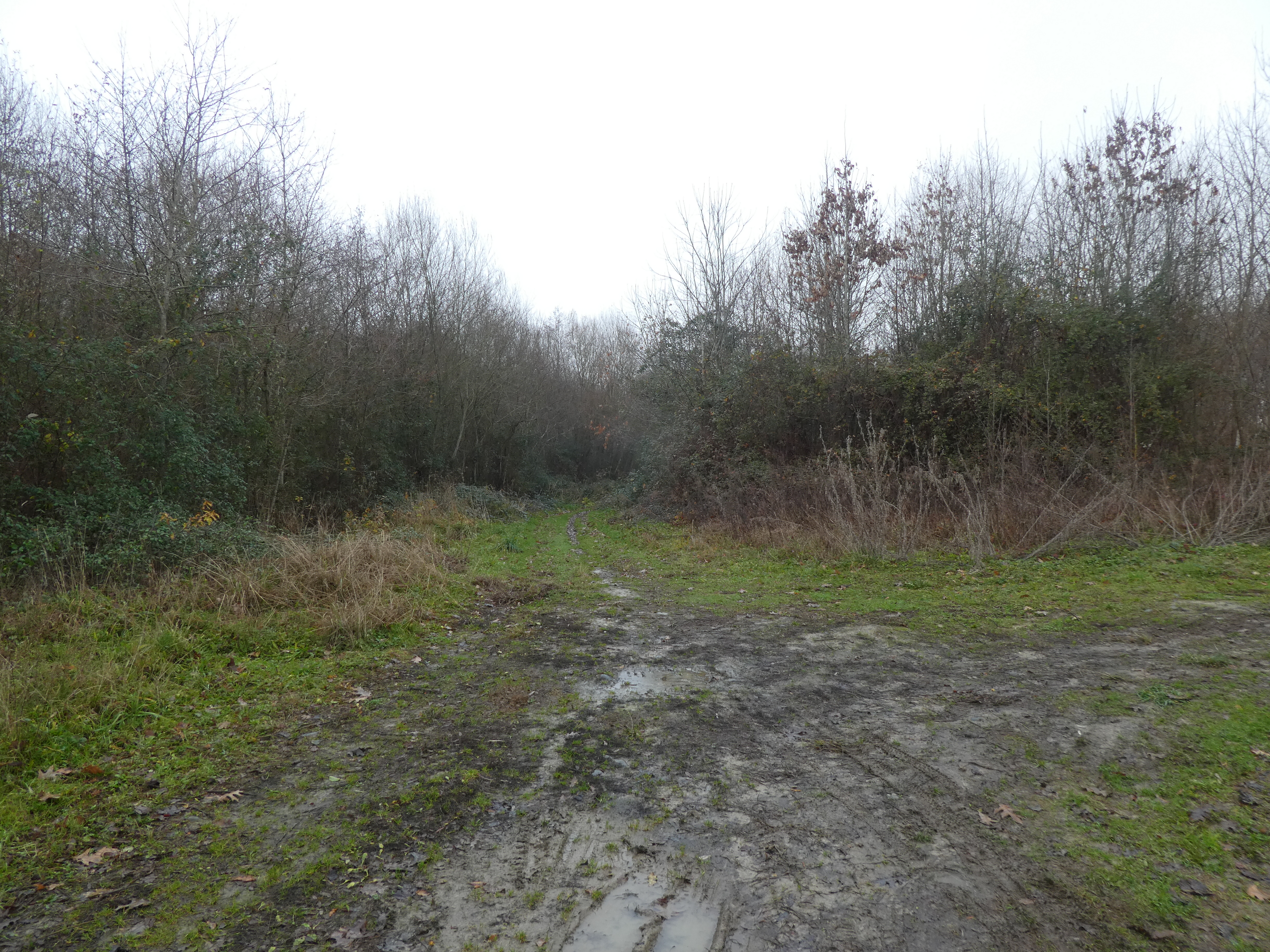 A ce croisement situé au niveau du Haras du Moulin (900 mètres après avoir traversé la D945), suivre le large chemin partant tout droit direction Lac de l'Ayguelongue, aucun balisage dorénavant