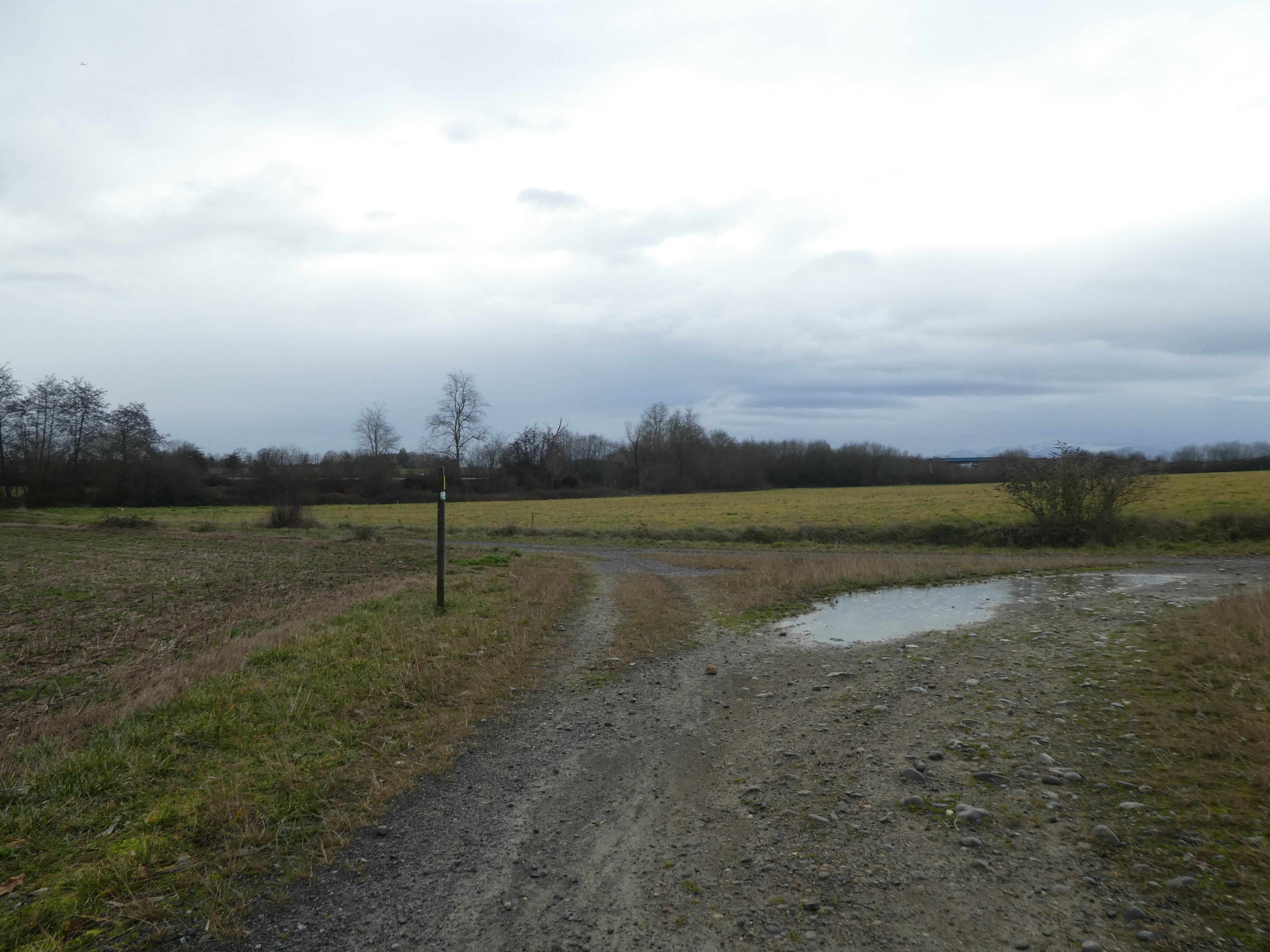 A ce croisement avec un large chemin (100 mètres après le précédent) (154 m), suivre ce dernier sur la droite et qui va couper la D945 direction Viellenave-d'Arthez, balisé sporadiquement en jaune (balises n°4)