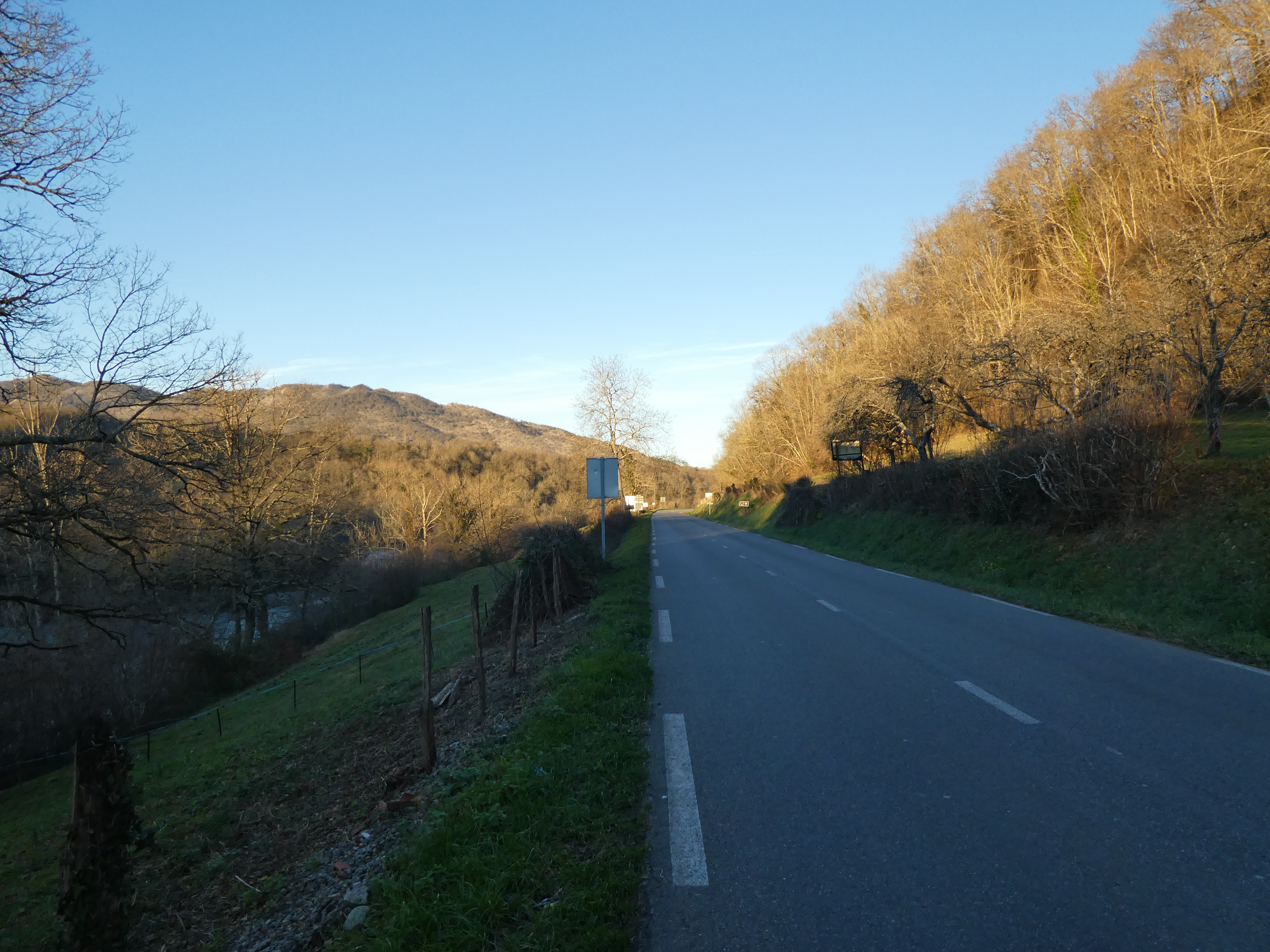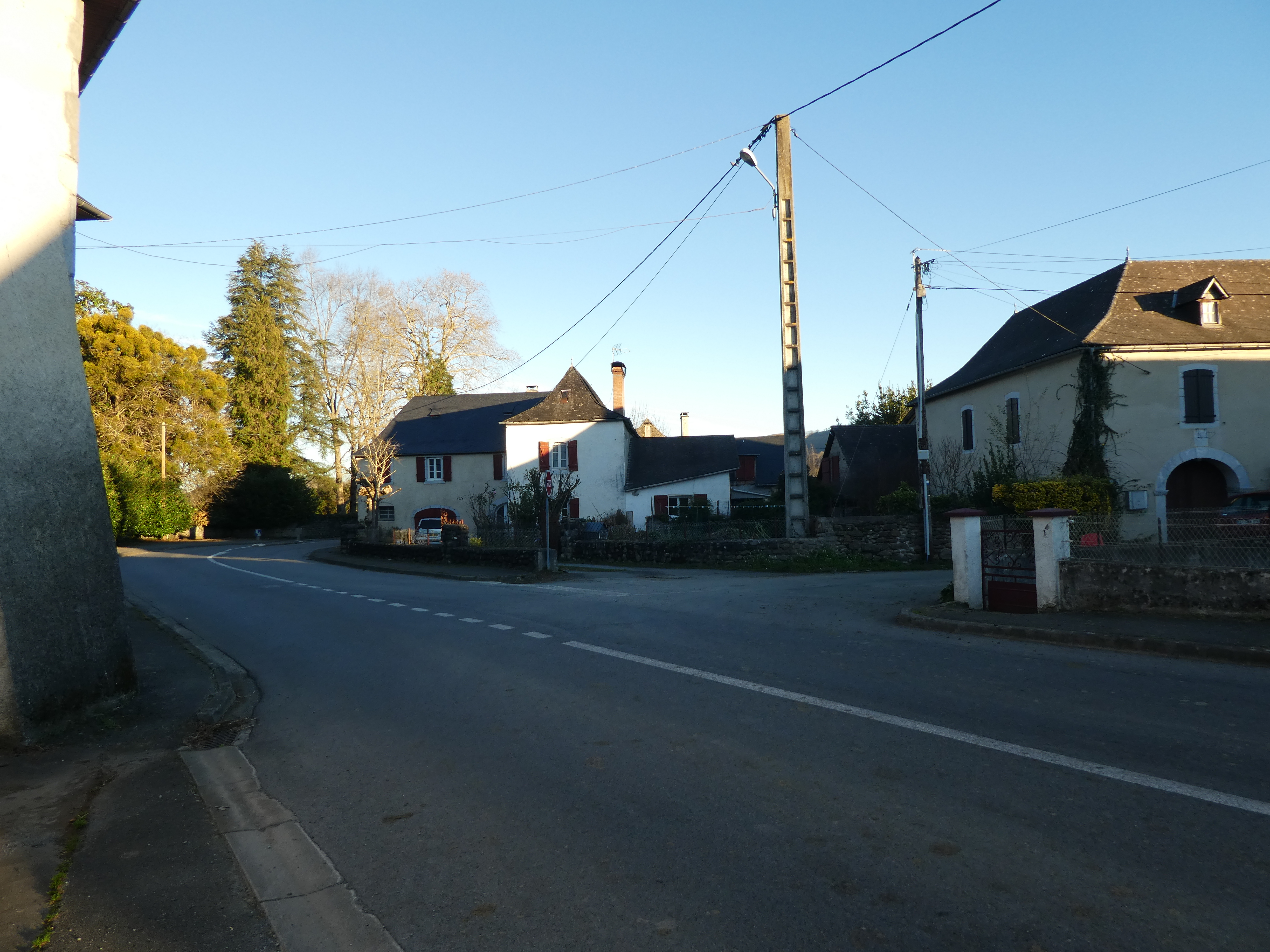 A ce croisement marqué par la présence d'un panneau directionnel (200 mètres après le précédent), suivre la route descendant tout droit direction Tardets-Sorholus, balisé sporadiquement en jaune