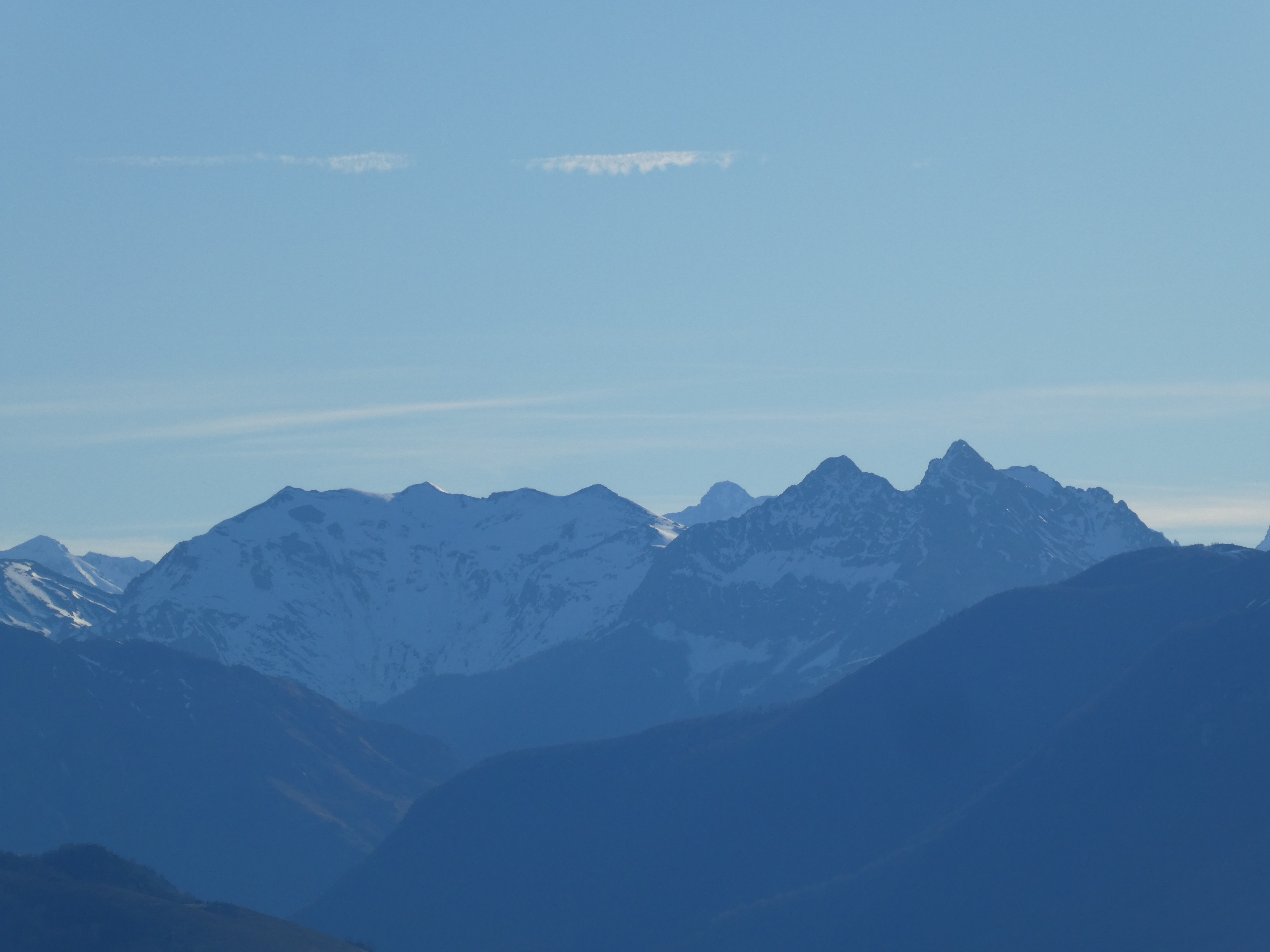 Zoom sur le Montagnon d'Iseye (2173 m) et le Mardas (2188 m) à gauche, le Balaïtous (3143 m) au centre ainsi que le Pic de Bergon (2148 m) et l'Embarrère (2221 m) à droite