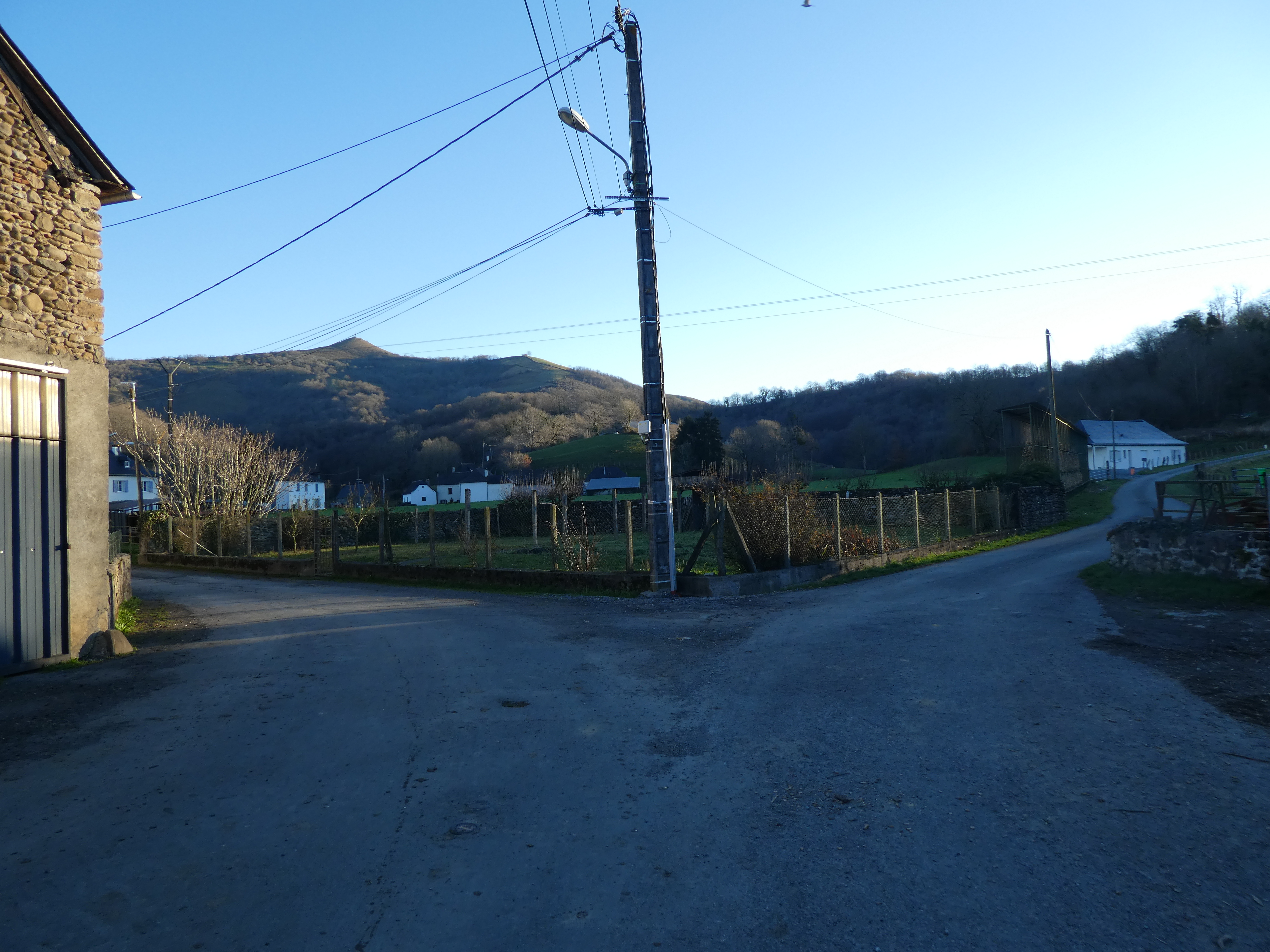 A ce croisement situé au niveau du lieu-dit "Etxebestea" (700 mètres après le précédent), suivre la route partant sur la droite direction Tardets-Sorholus, balisé sporadiquement en jaune