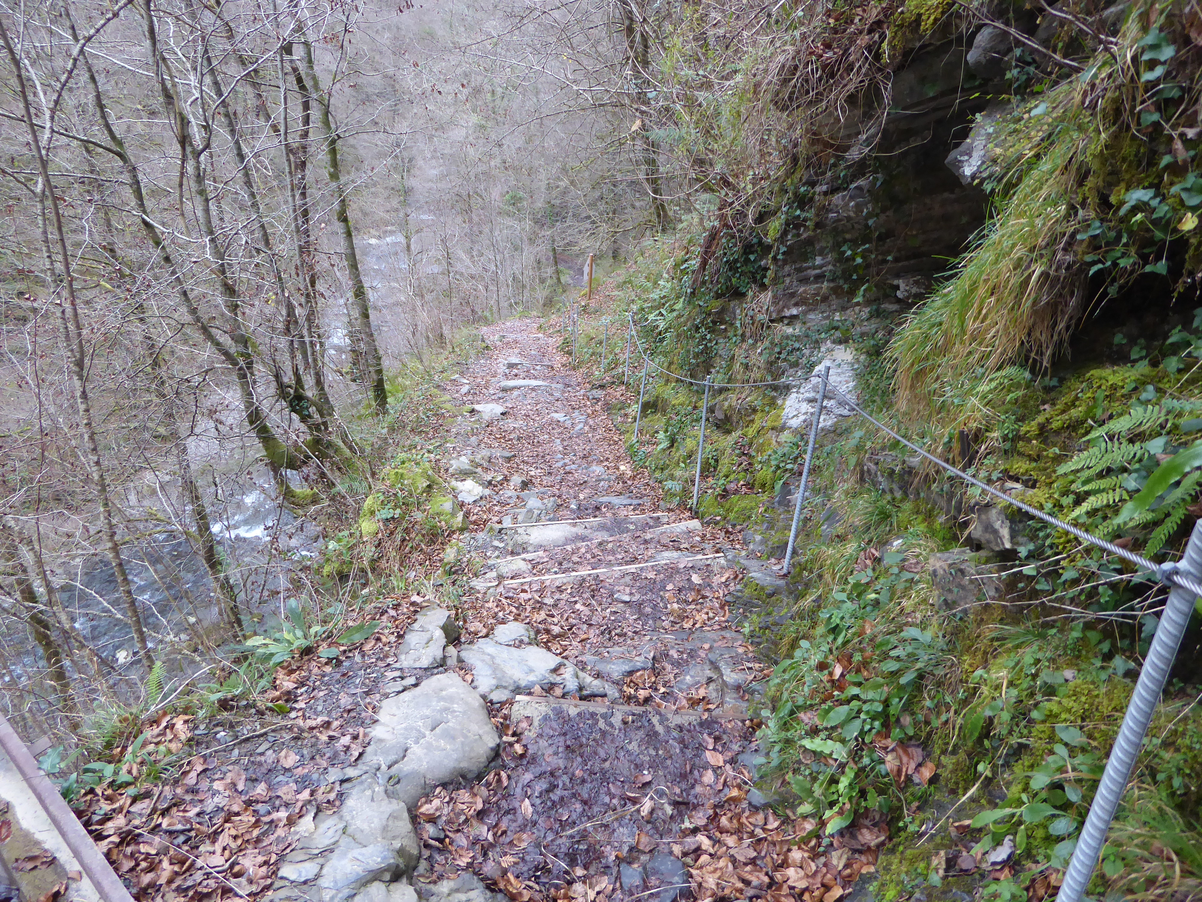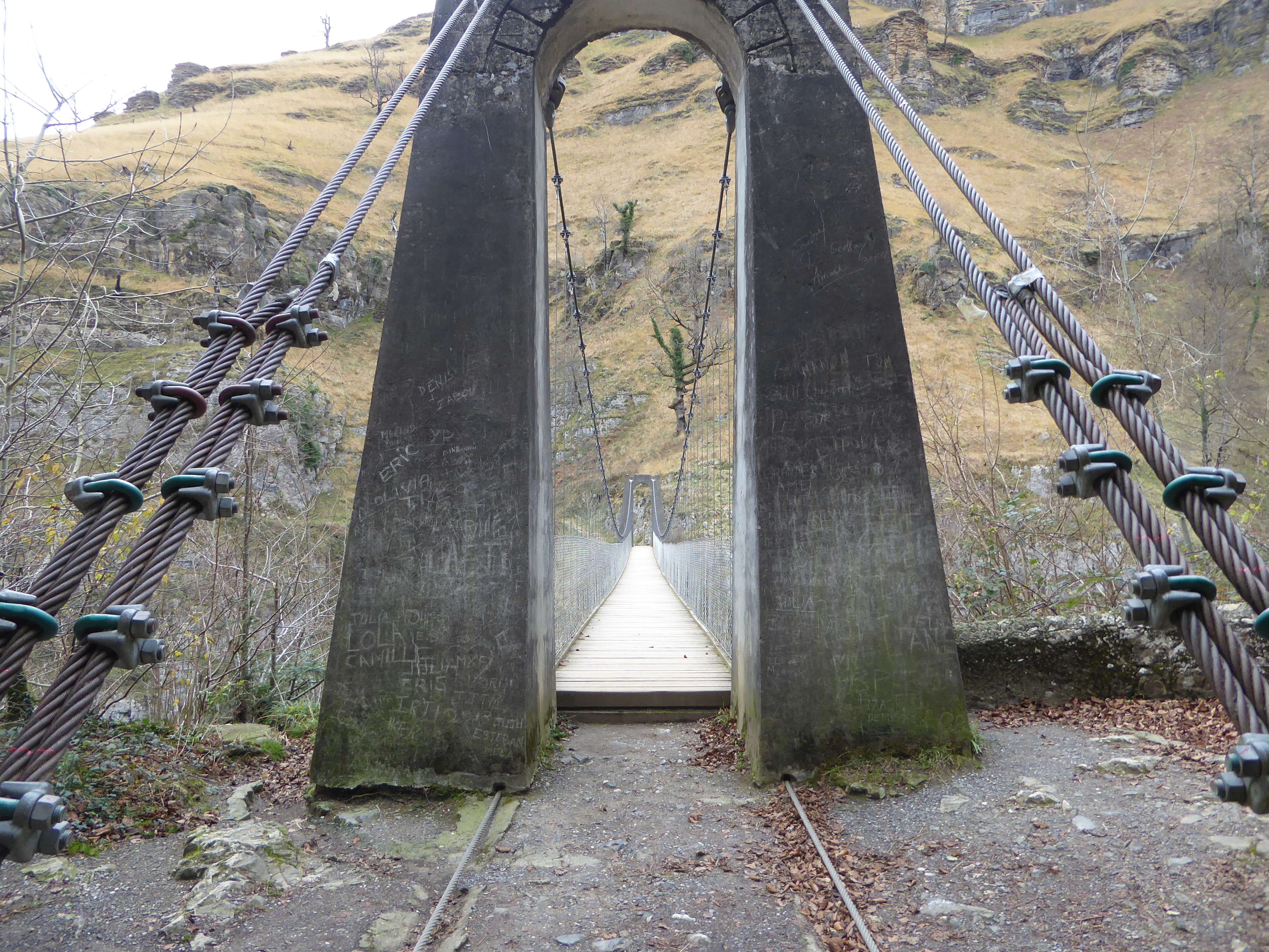 Arrivée à la Passerelle d'Holzarté (575 m) : traverser la passerelle pour rejoindre l'autre côté du canyon direction Pont de la Mouline, balisé en rouge et blanc