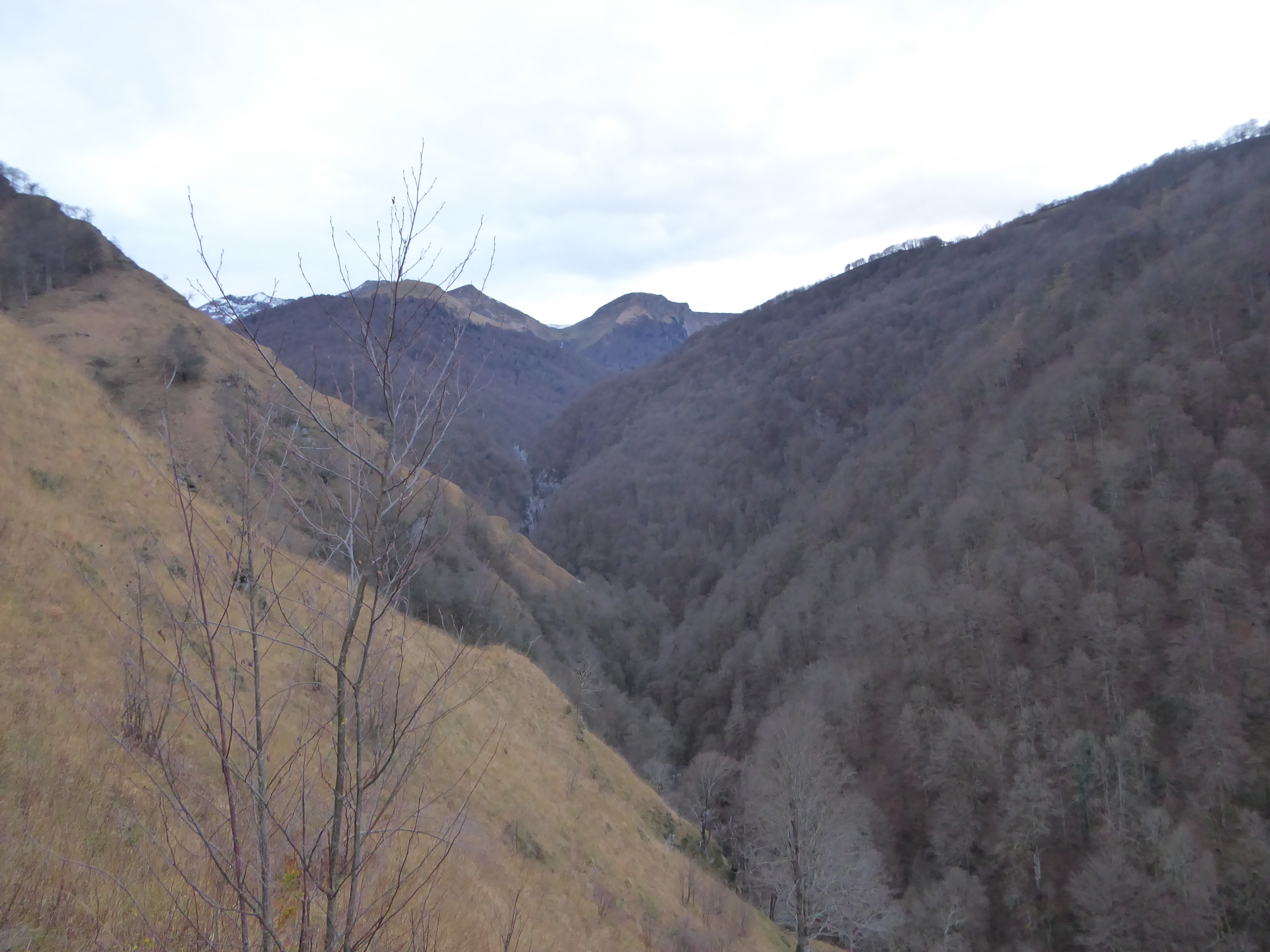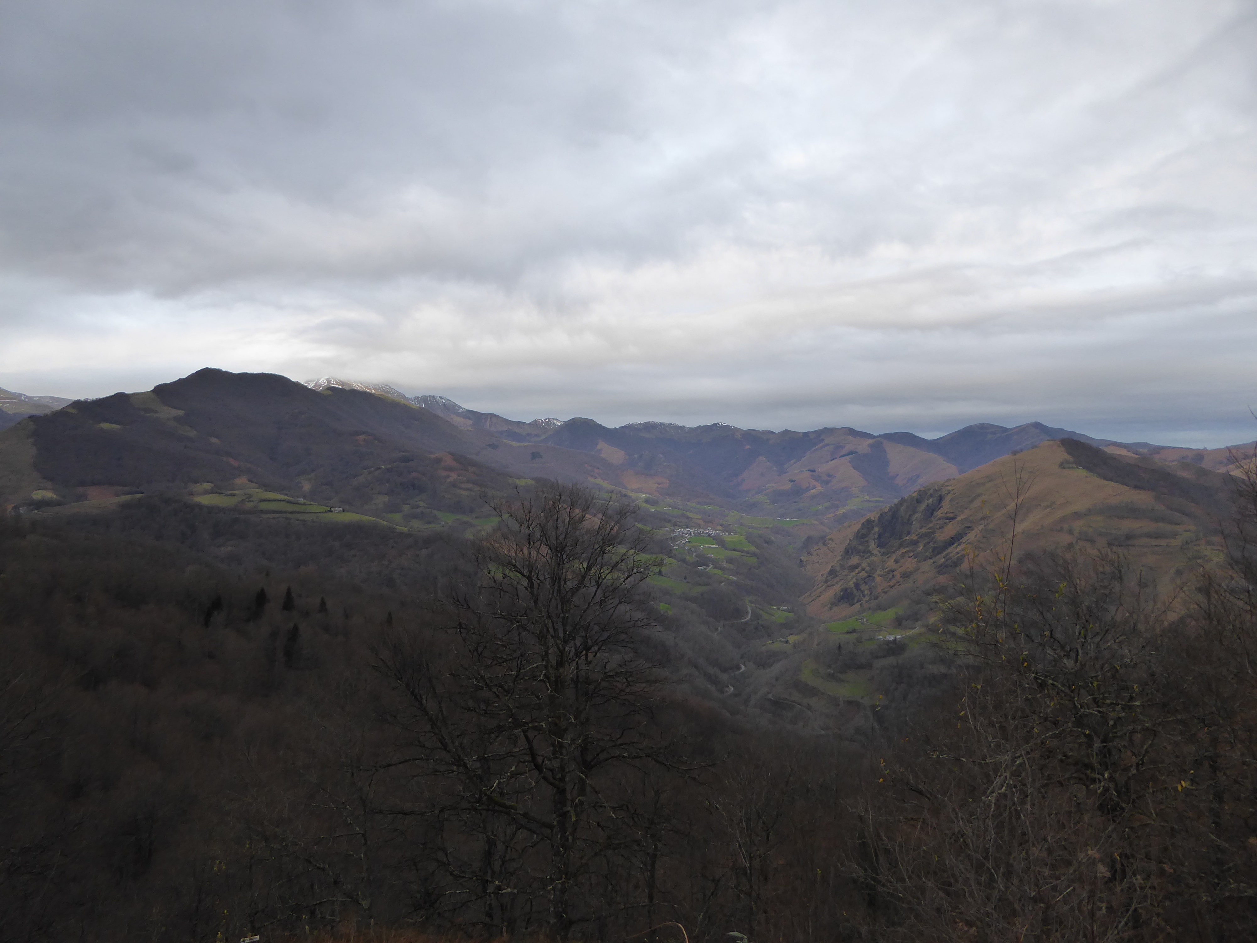 Très belle vue sur la Vallée du Gave de Larrau et le Pic d'Orhy à gauche masqué partiellement par les nuages