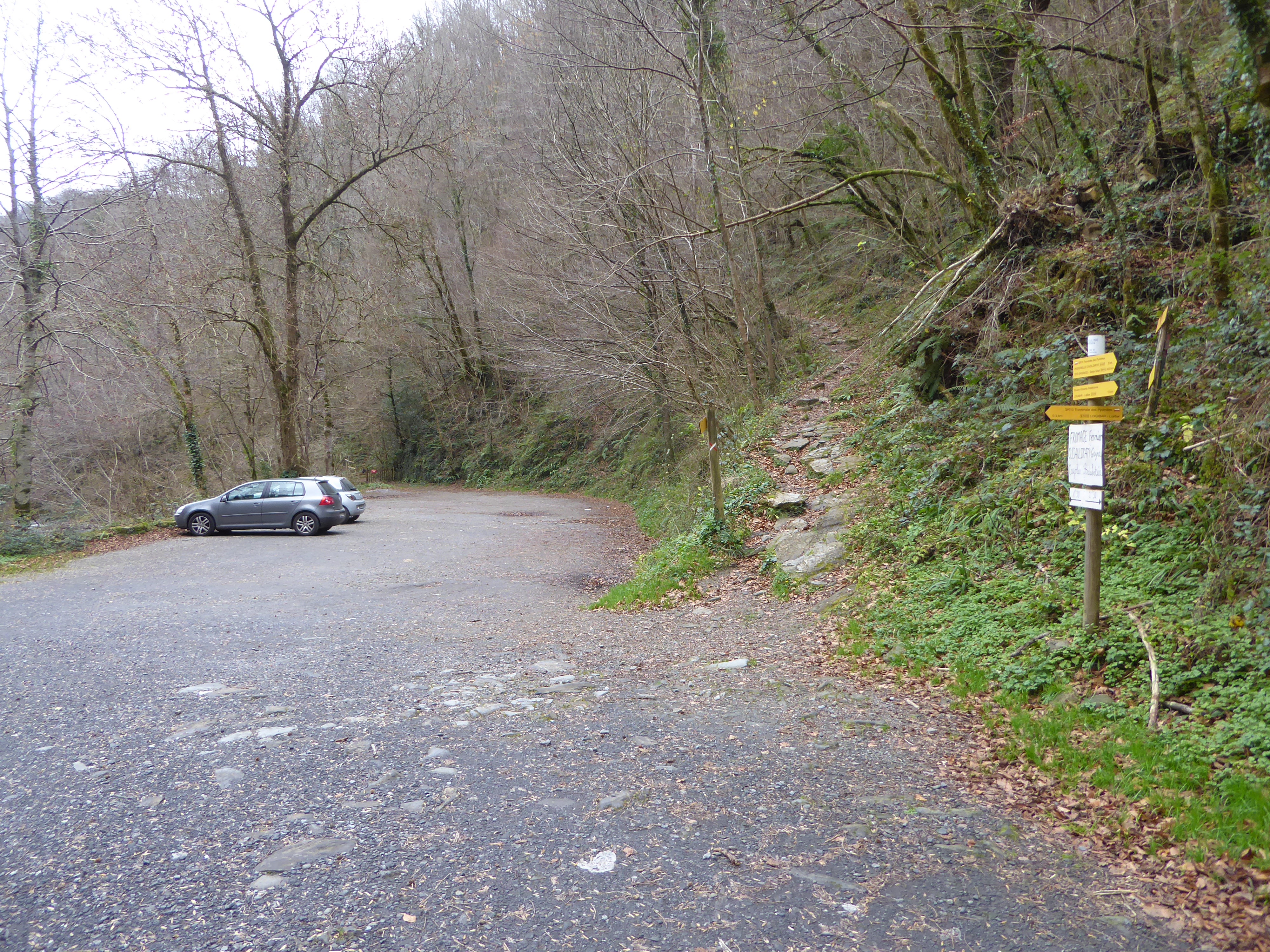 Pont d'Olhadübi (843 m) : traverser le pont puis suivre le chemin partant sur la droite direction Passerelle d'Holzarté, balisé en rouge et blanc