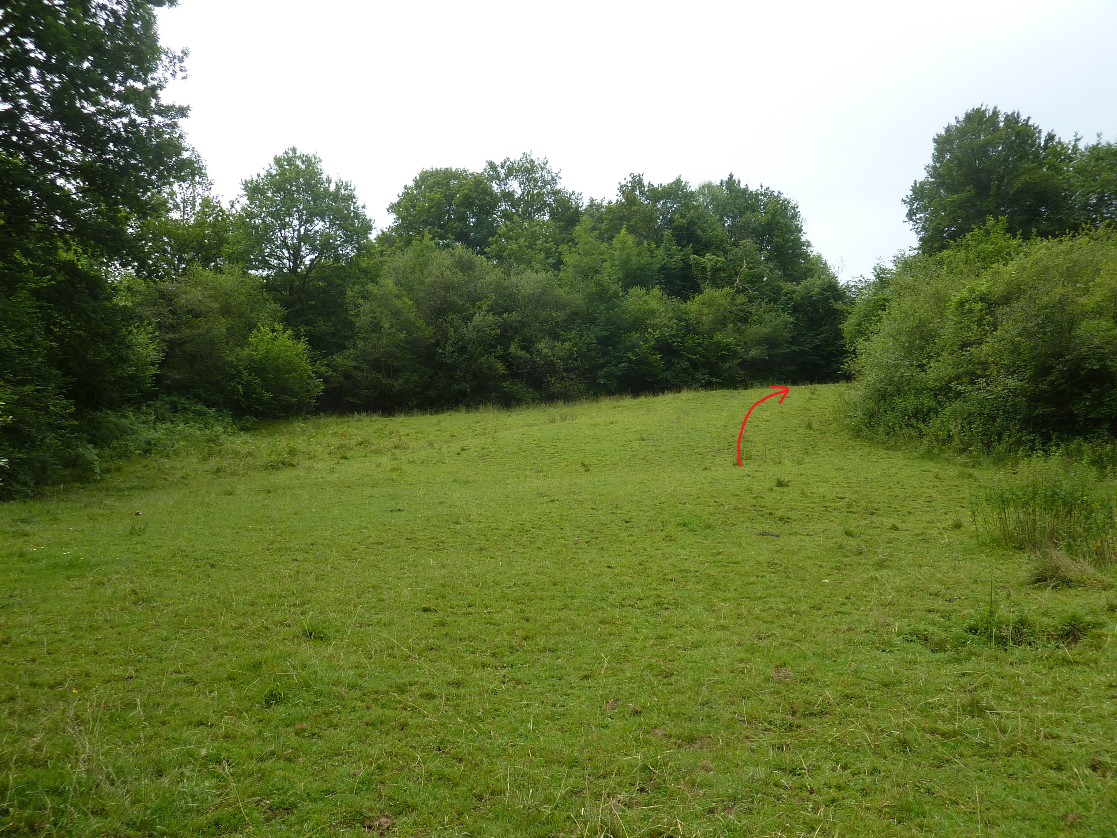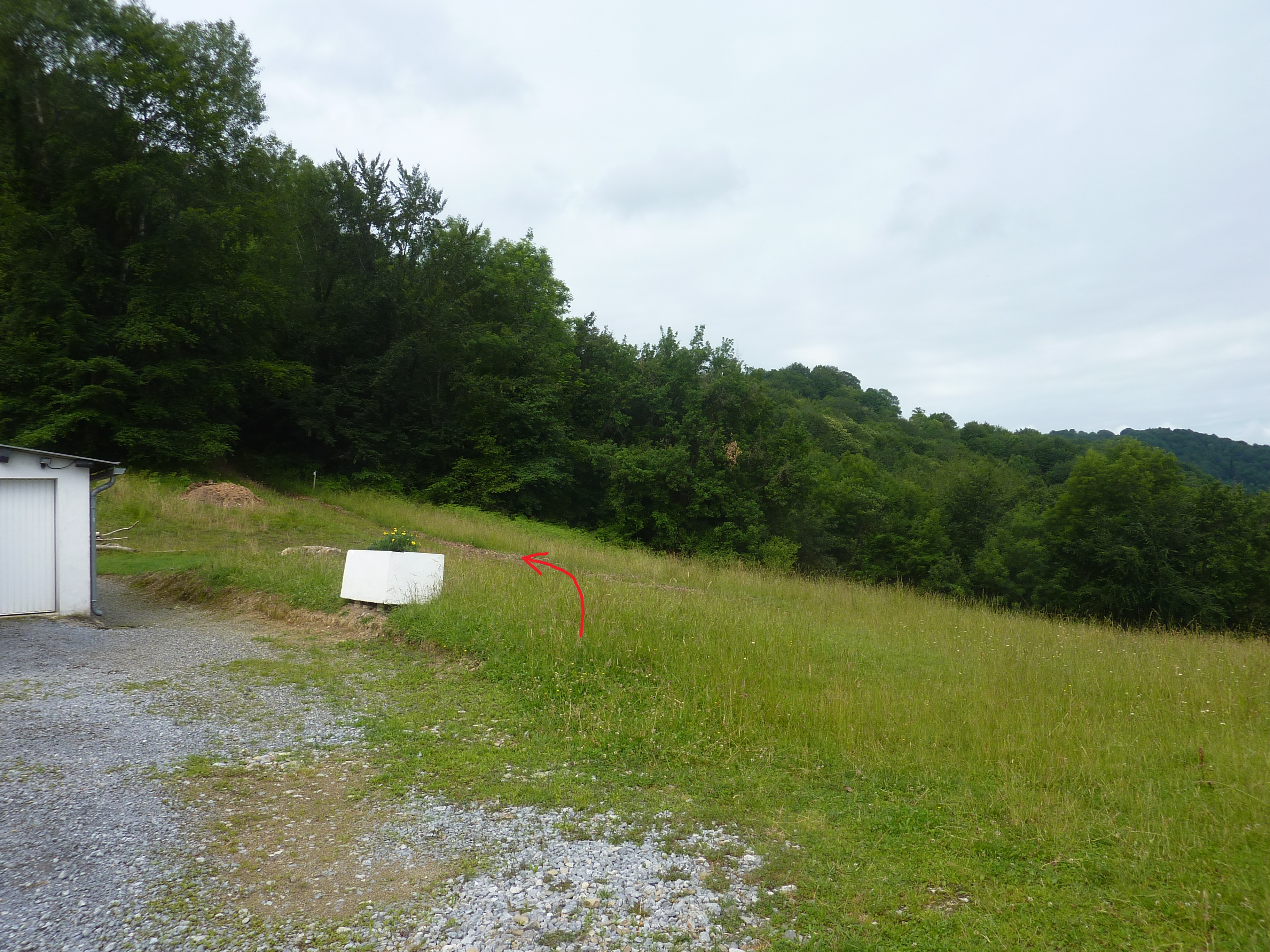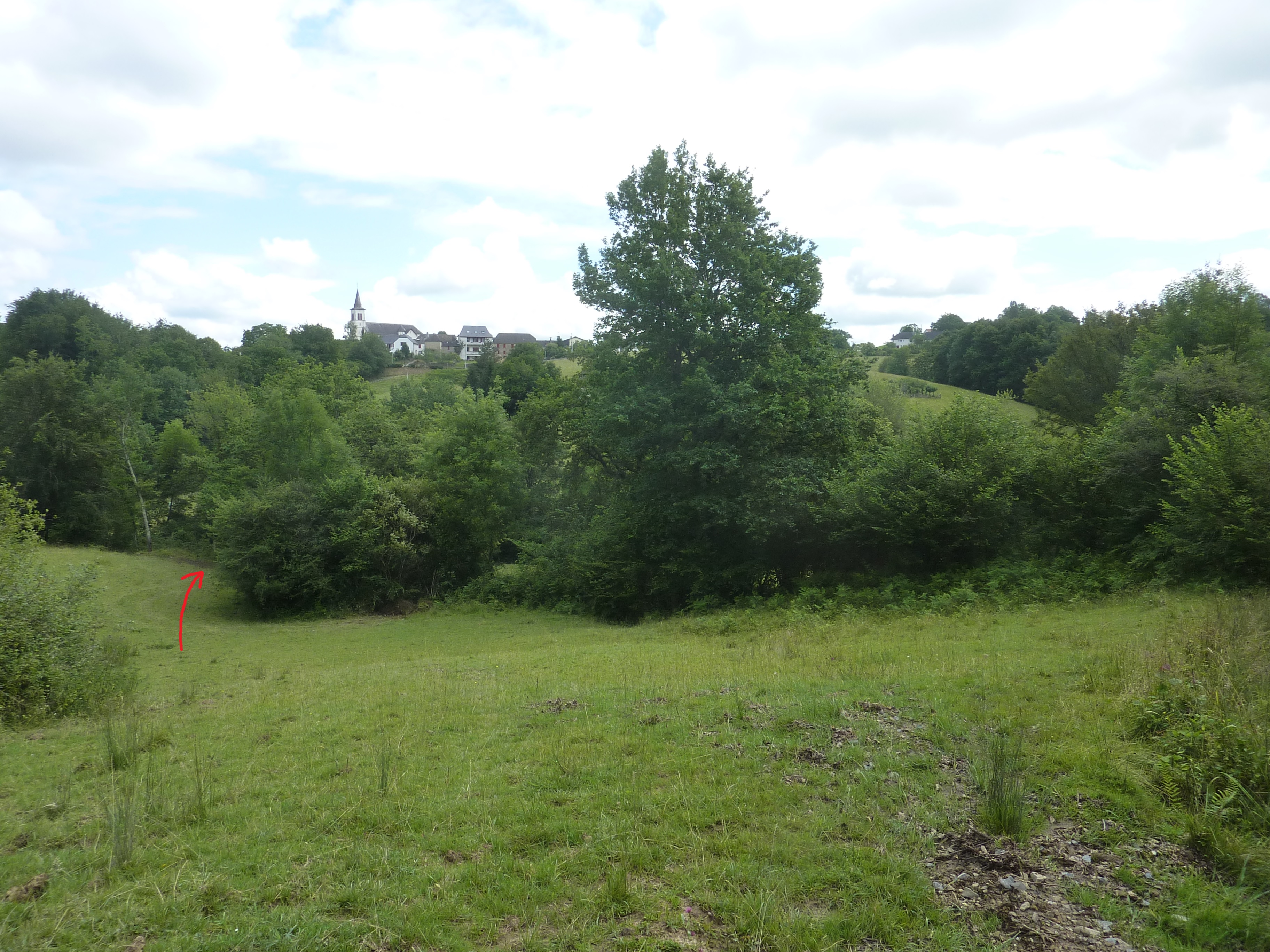 Au niveau de cette pente herbeuse (50 mètres après avoir franchi le Gorria), monter à vue sur la droite afin de rejoindre le chemin balisé en jaune direction Sommet de Cambillou, balisé en jaune désuet