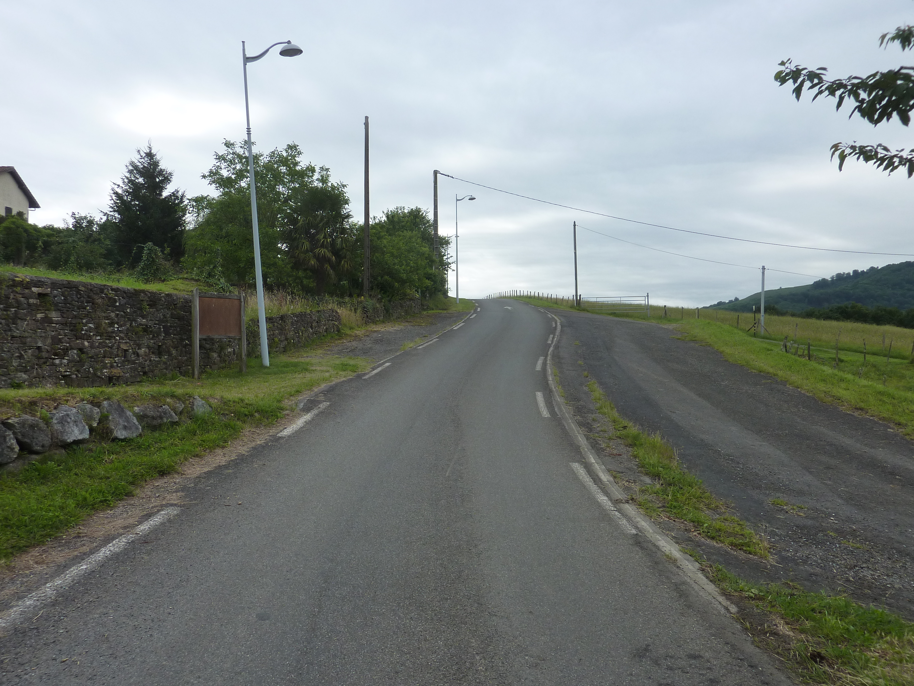 A cette intersection au niveau du lieu-dit "Ligizea" (600 mètres après le précédent croisement), suivre la route partant sur la gauche direction Esquiule, balisé en jaune désuet