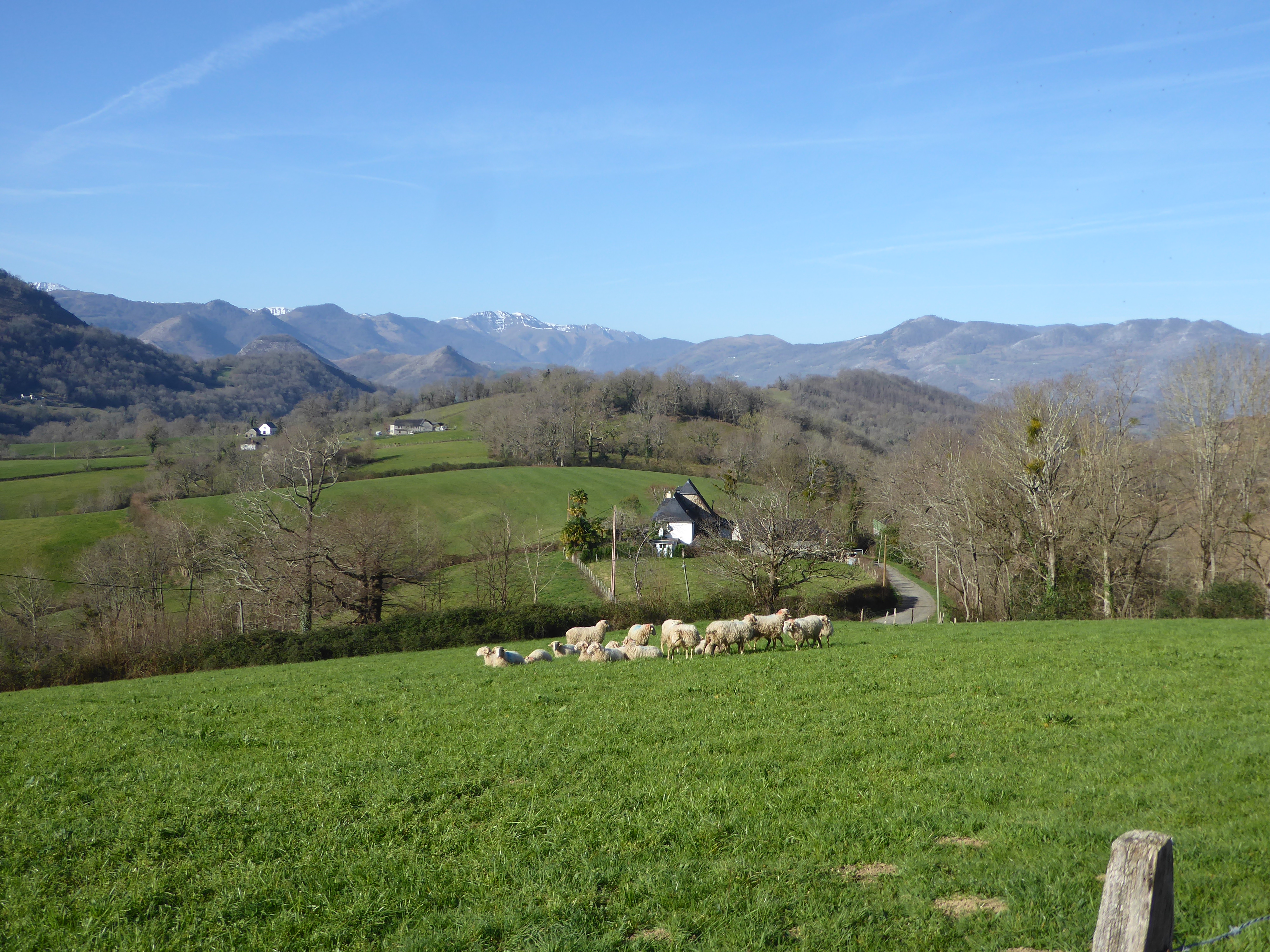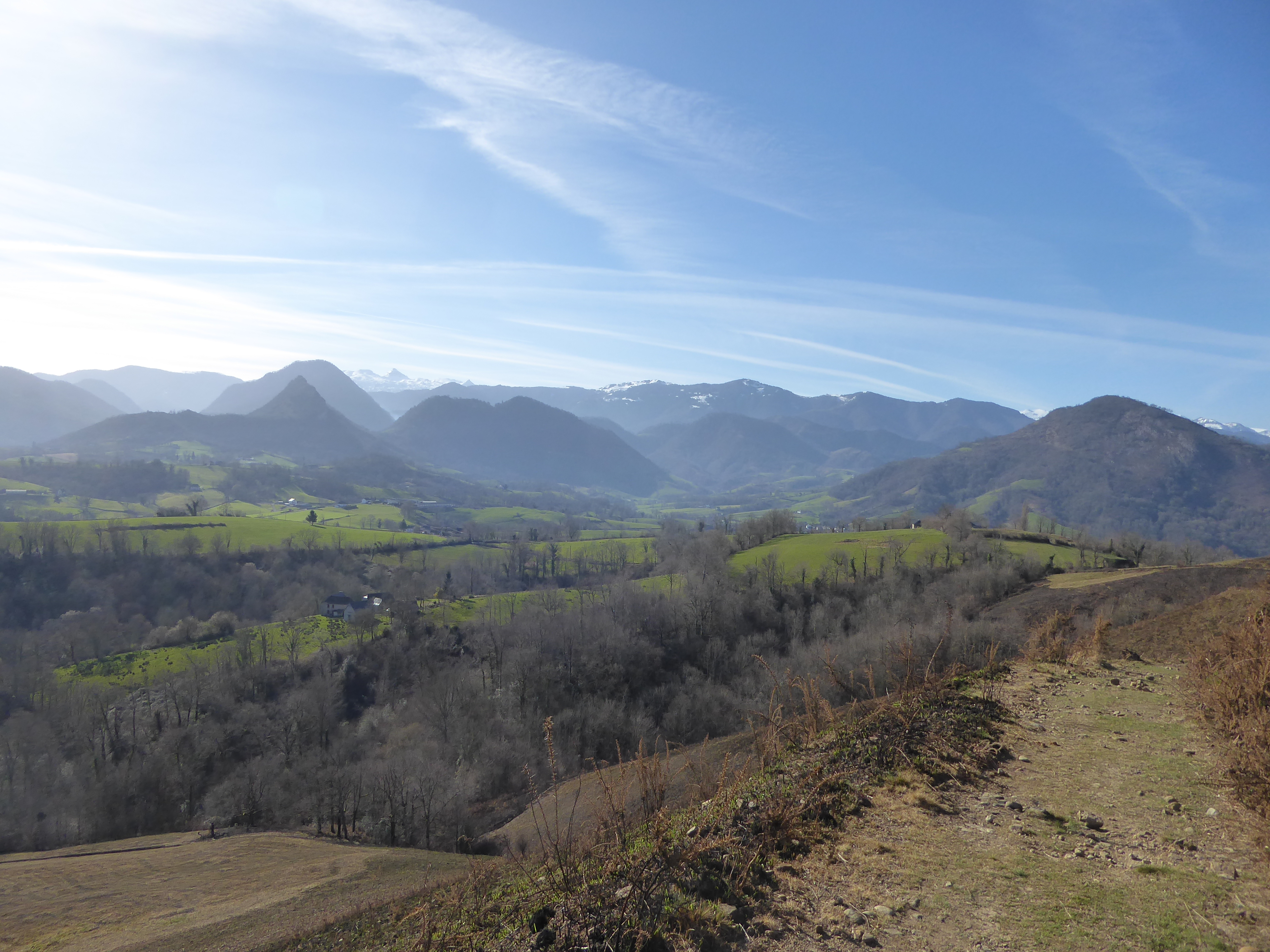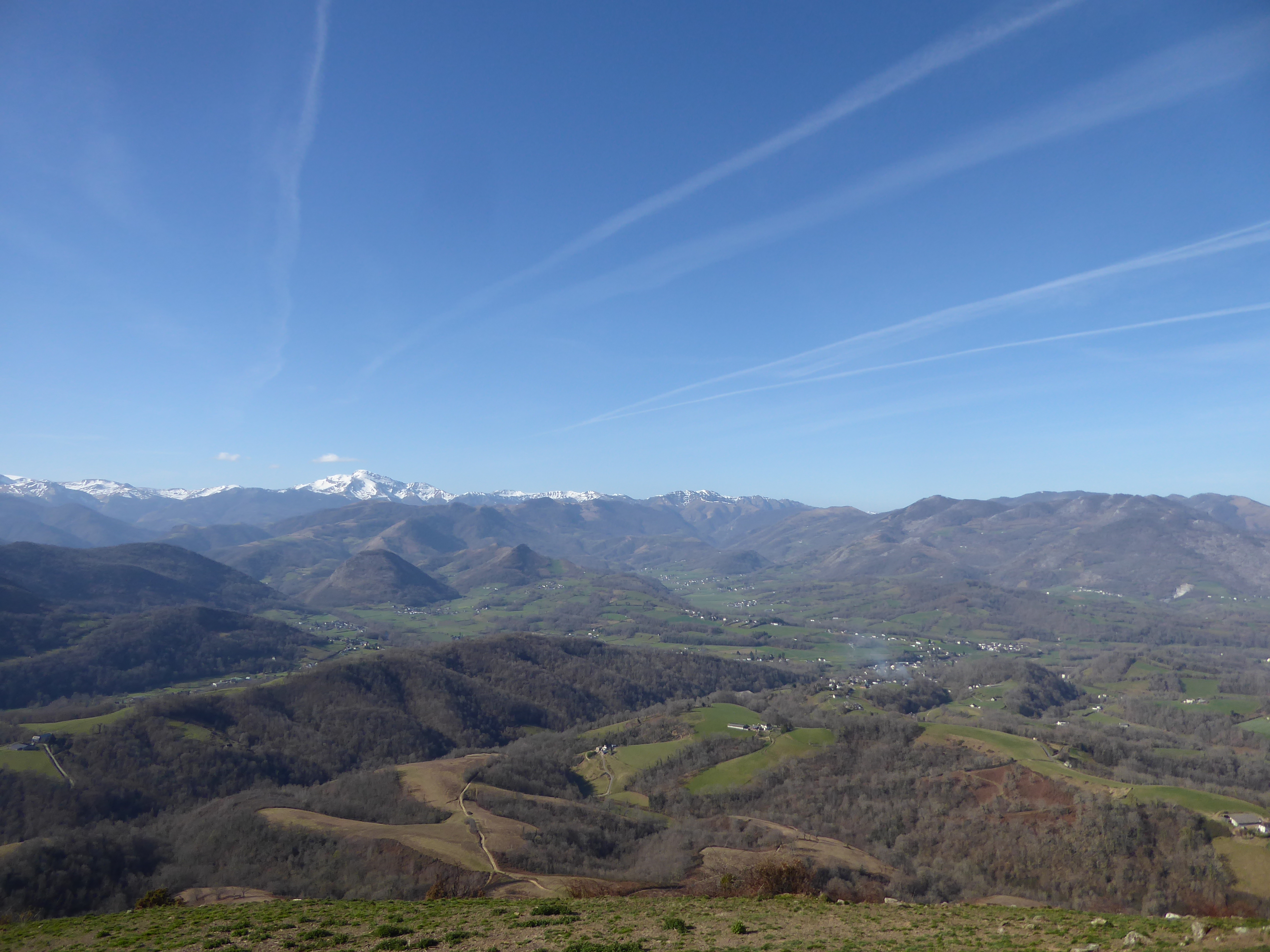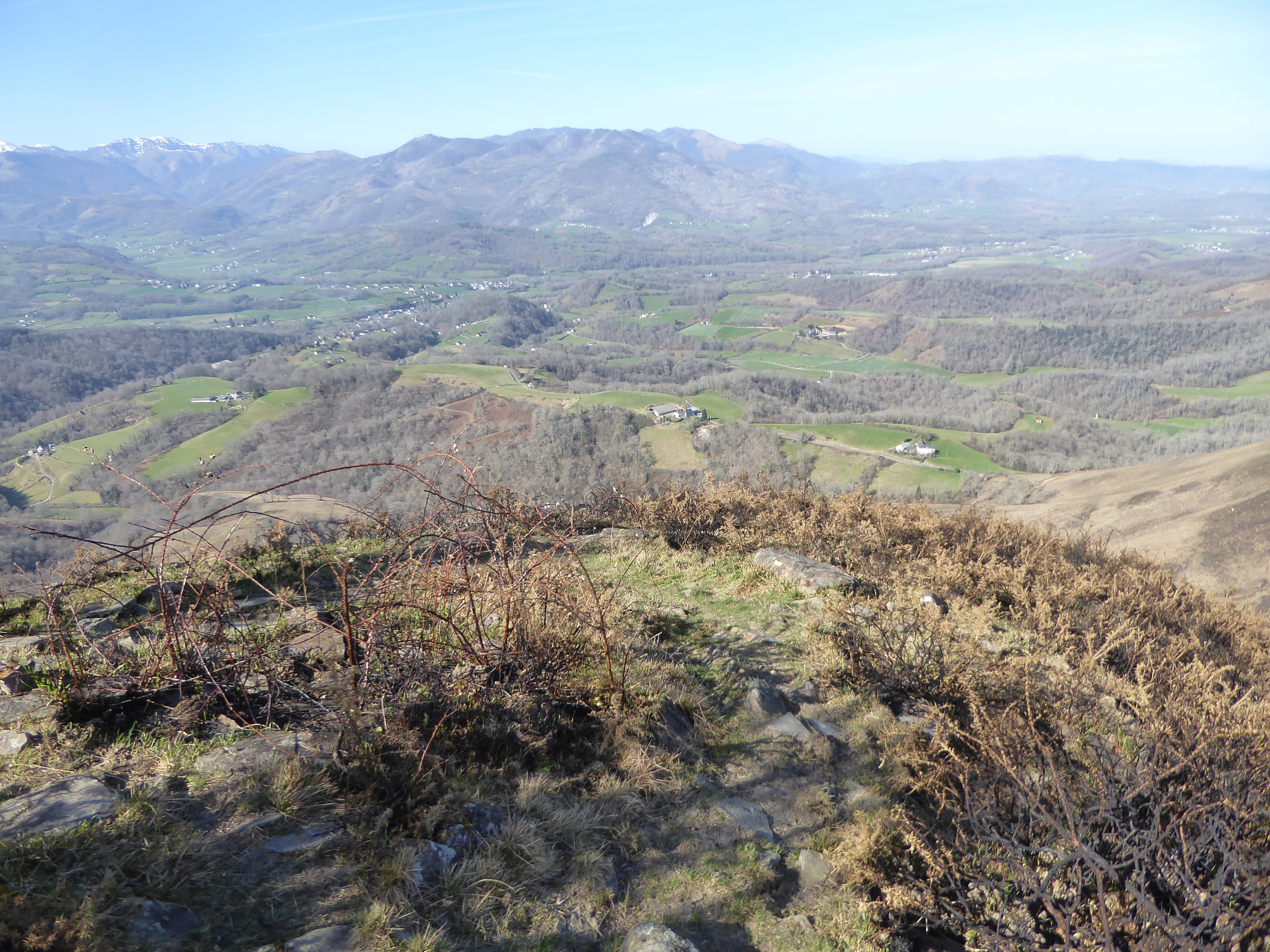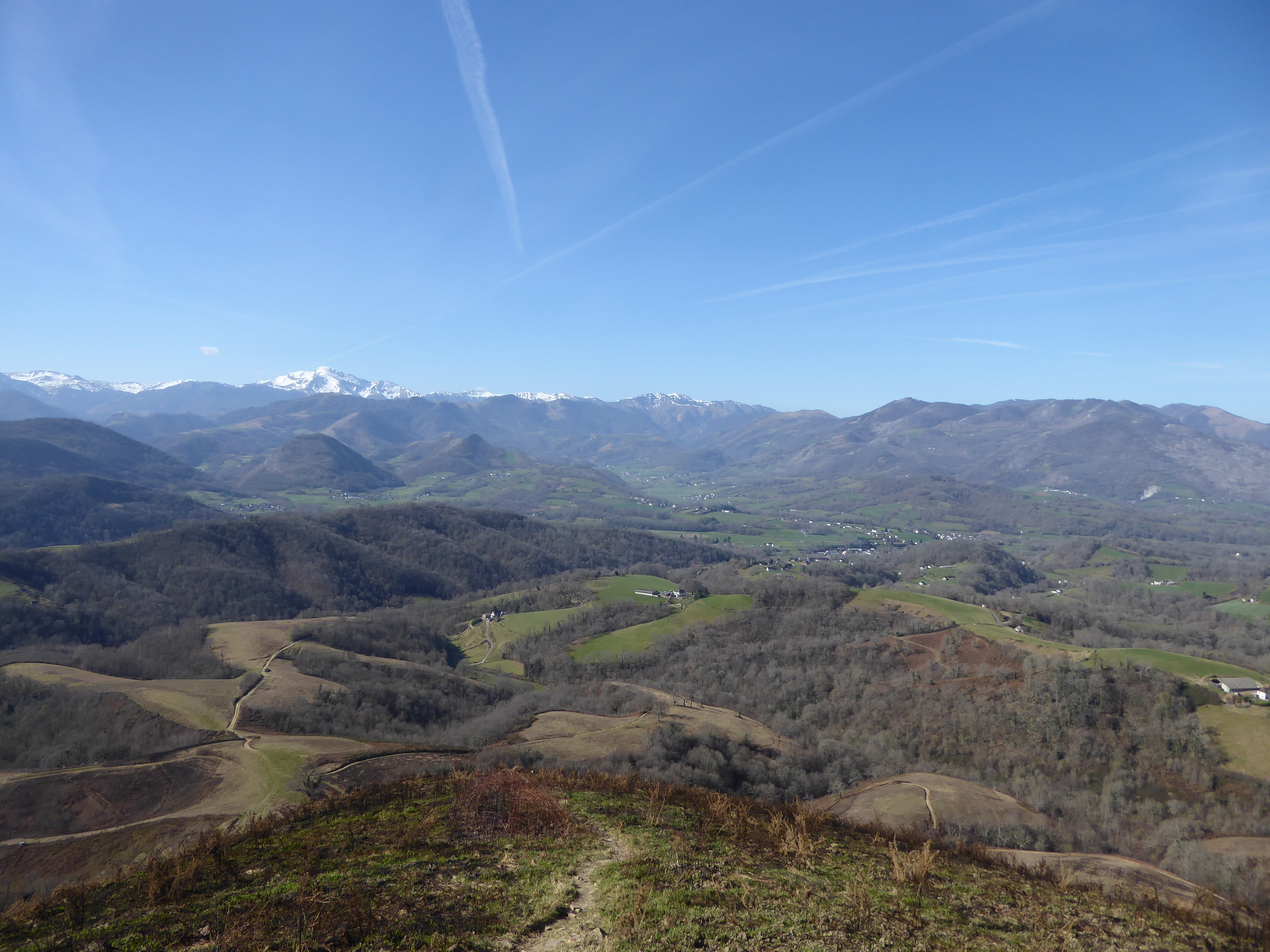 Belle vue sur la Vallée du Saison avec les villages de Tardets-Sorholus et Licq-Athérey au fond ... et le Pic d'Orhy enneigé en arrière-plan ; premier sommet à dépasser les 2000 mètres d'altitude en venant de l'océan