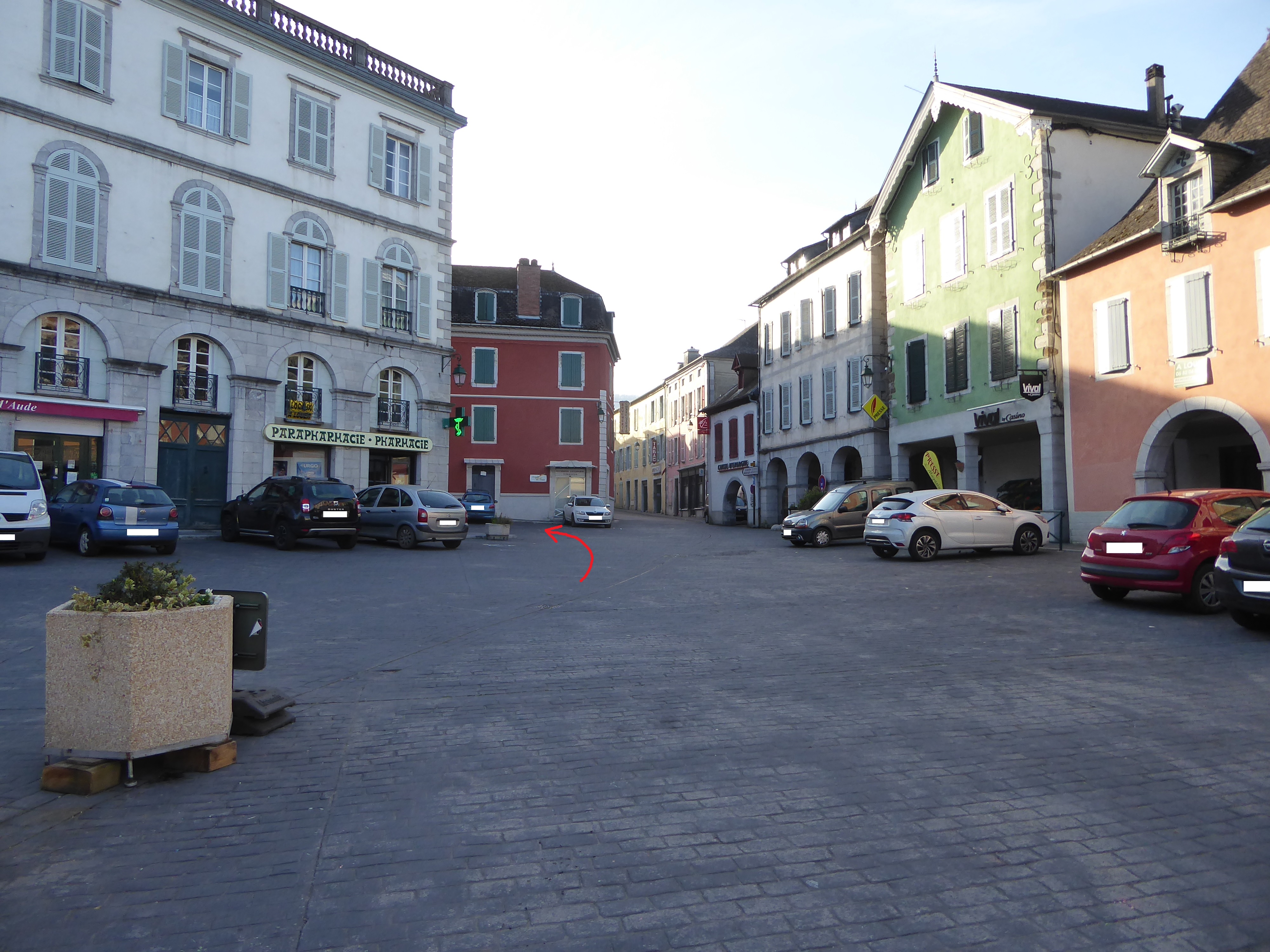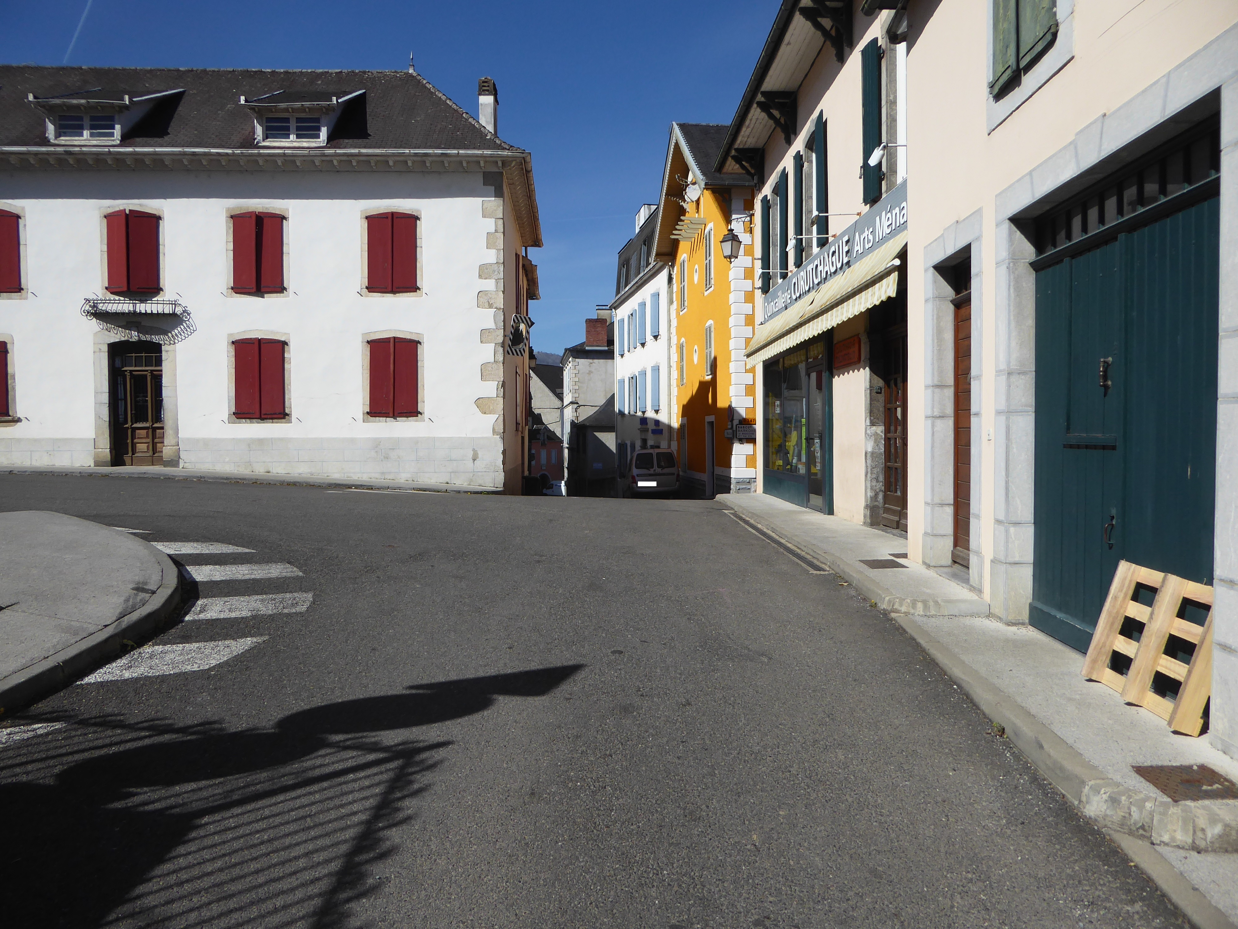 A cette intersection juste après le fronton, suivre la rue partant tout droit direction Tardets-Sorholus, aucun balisage dorénavant