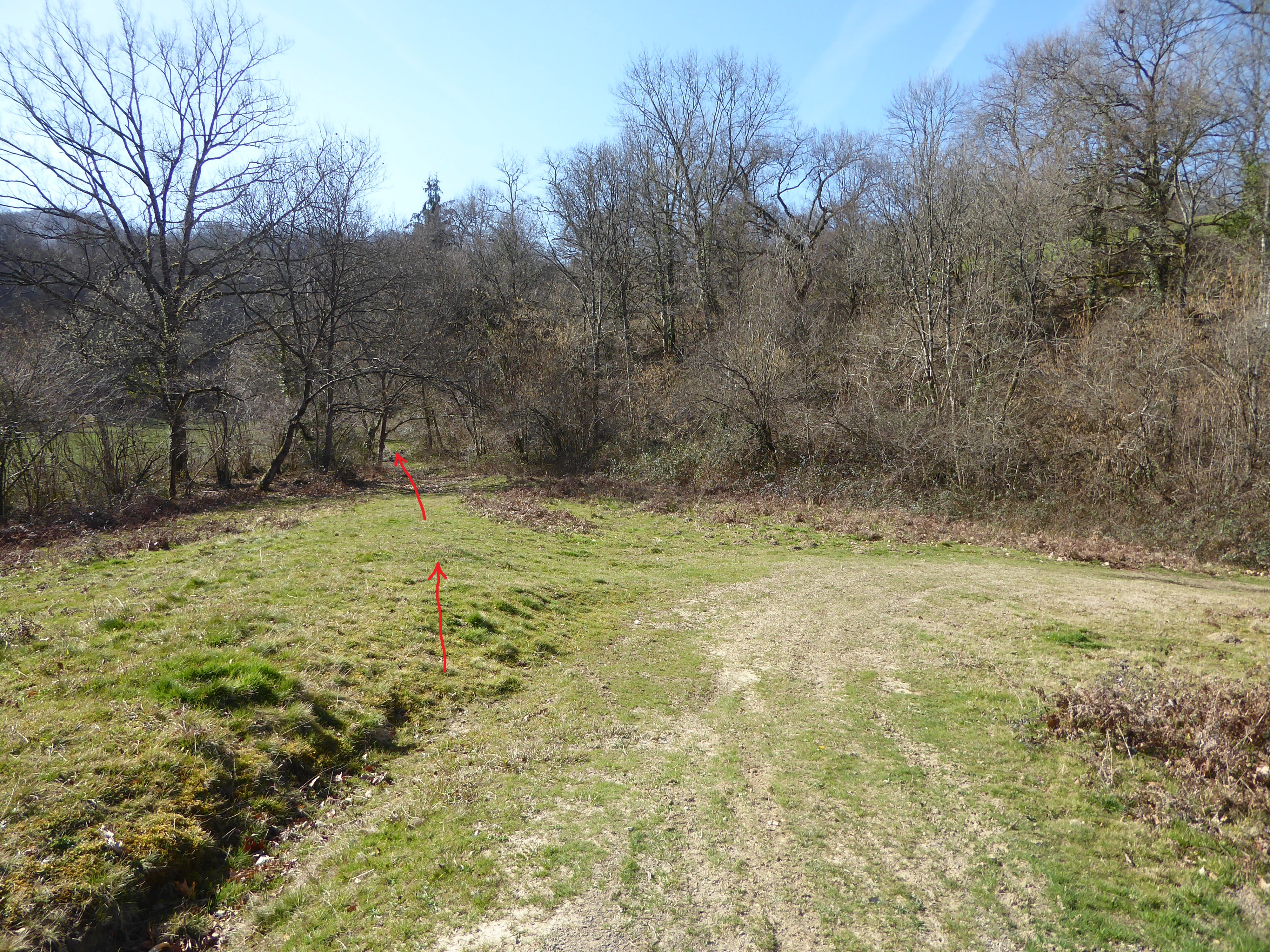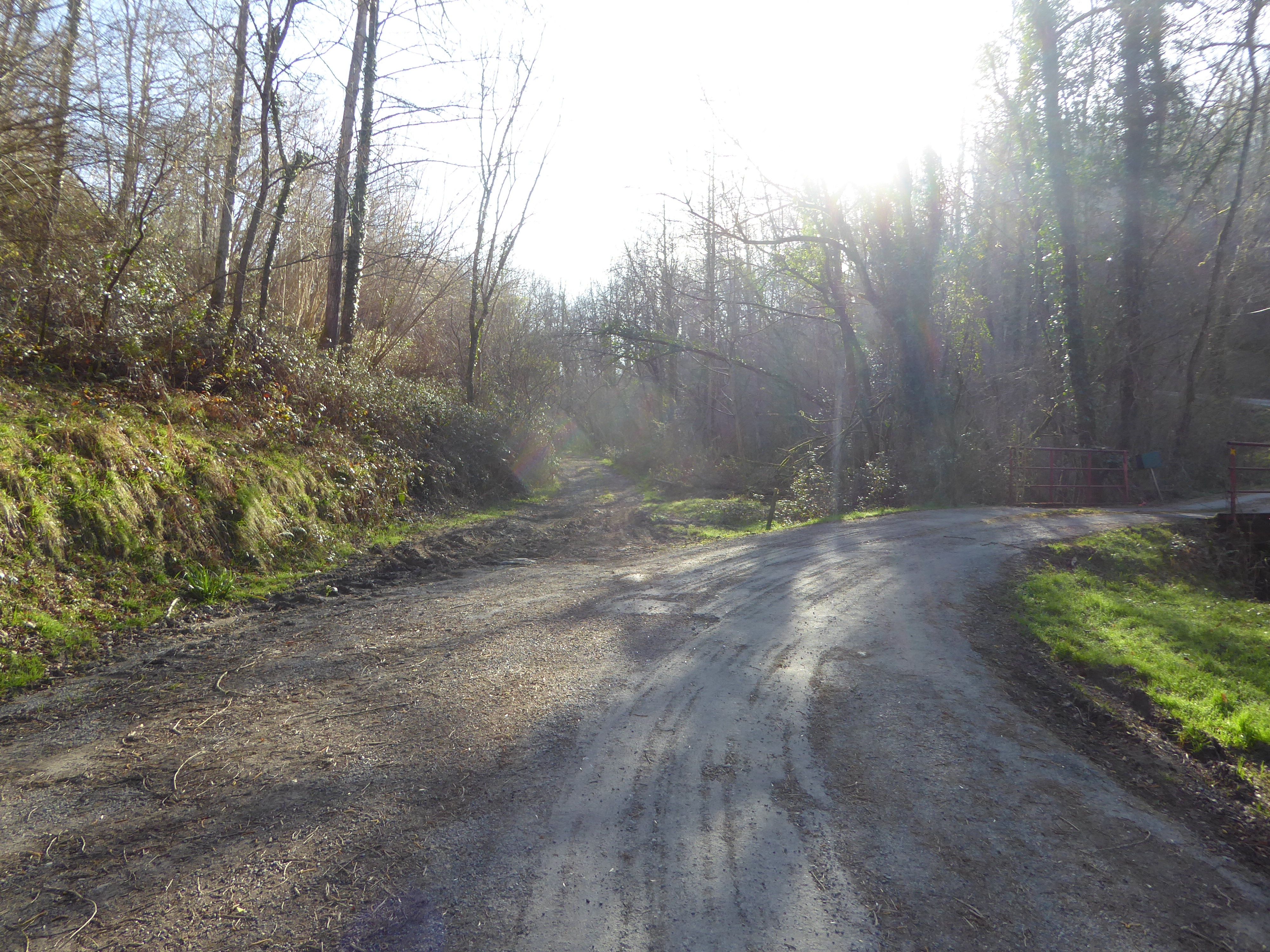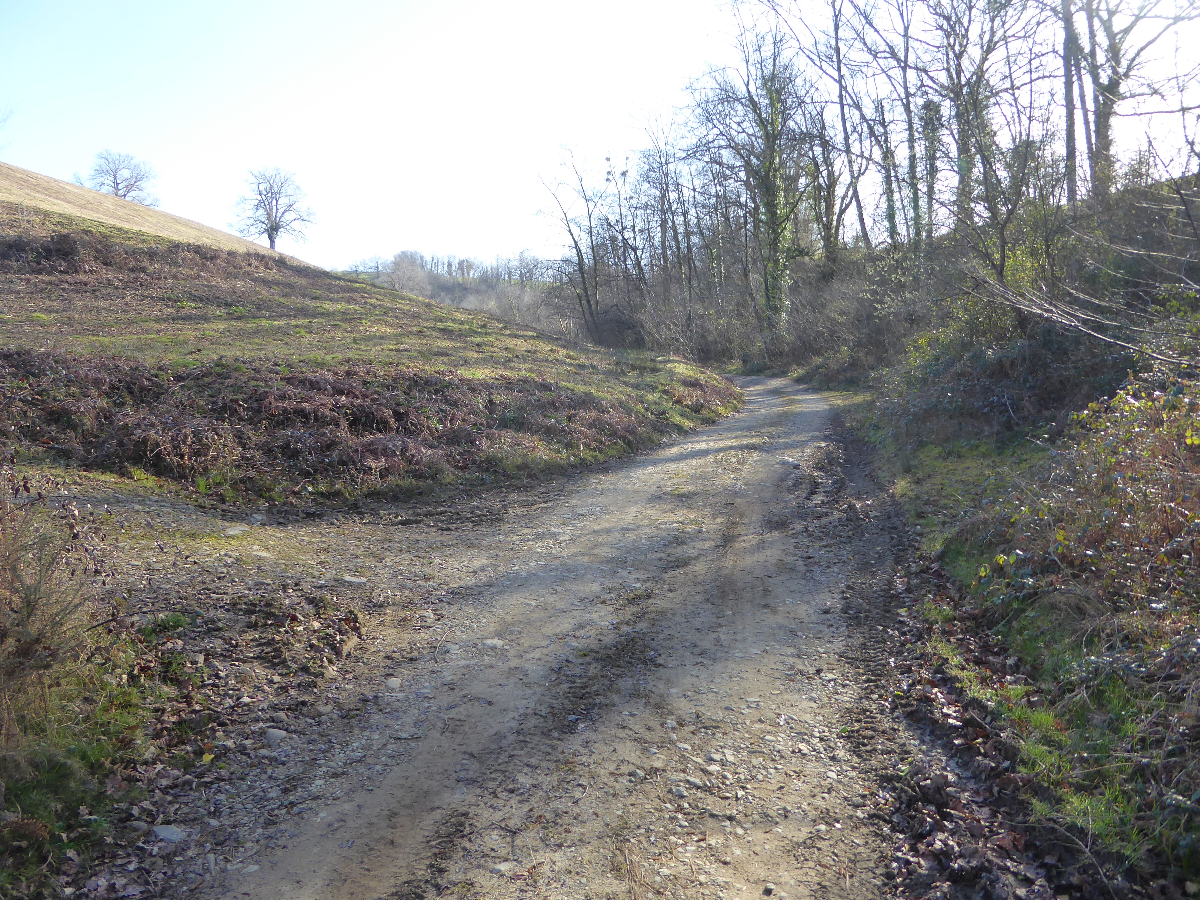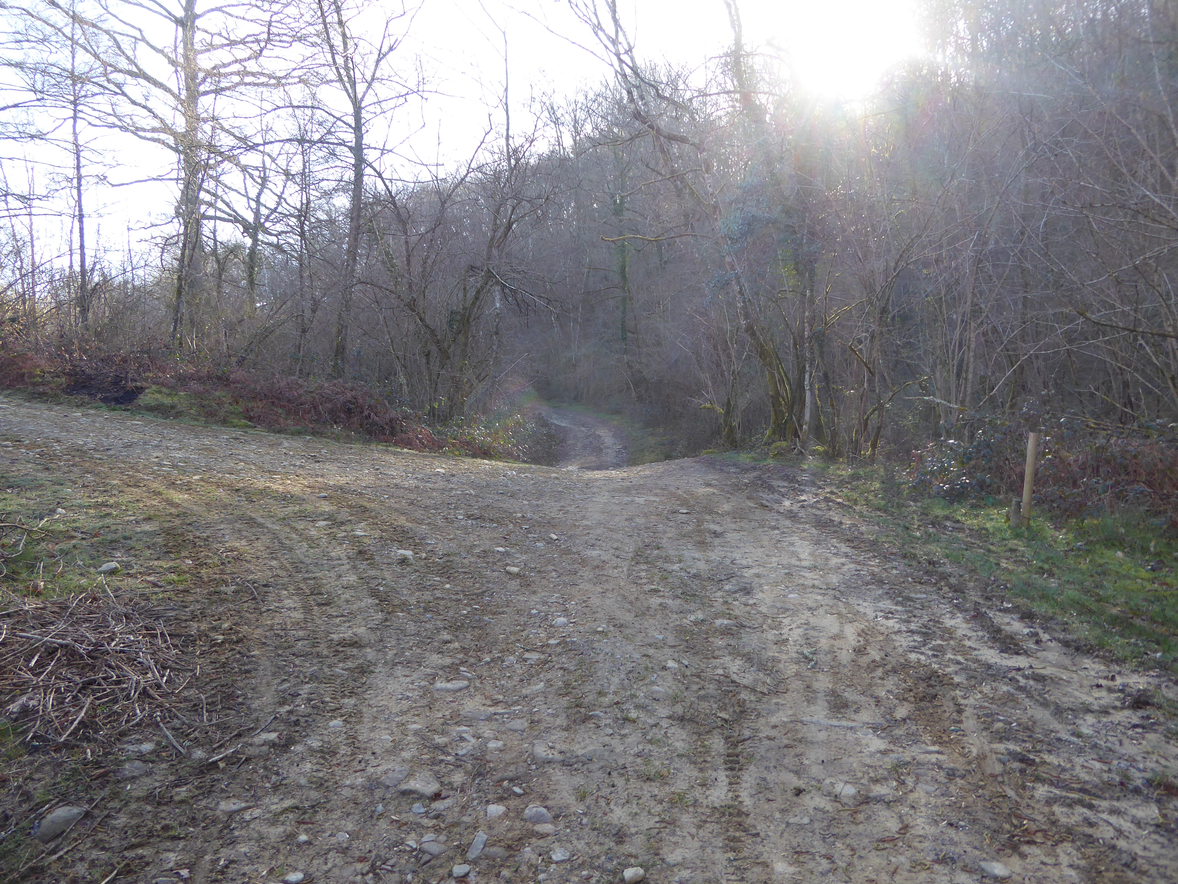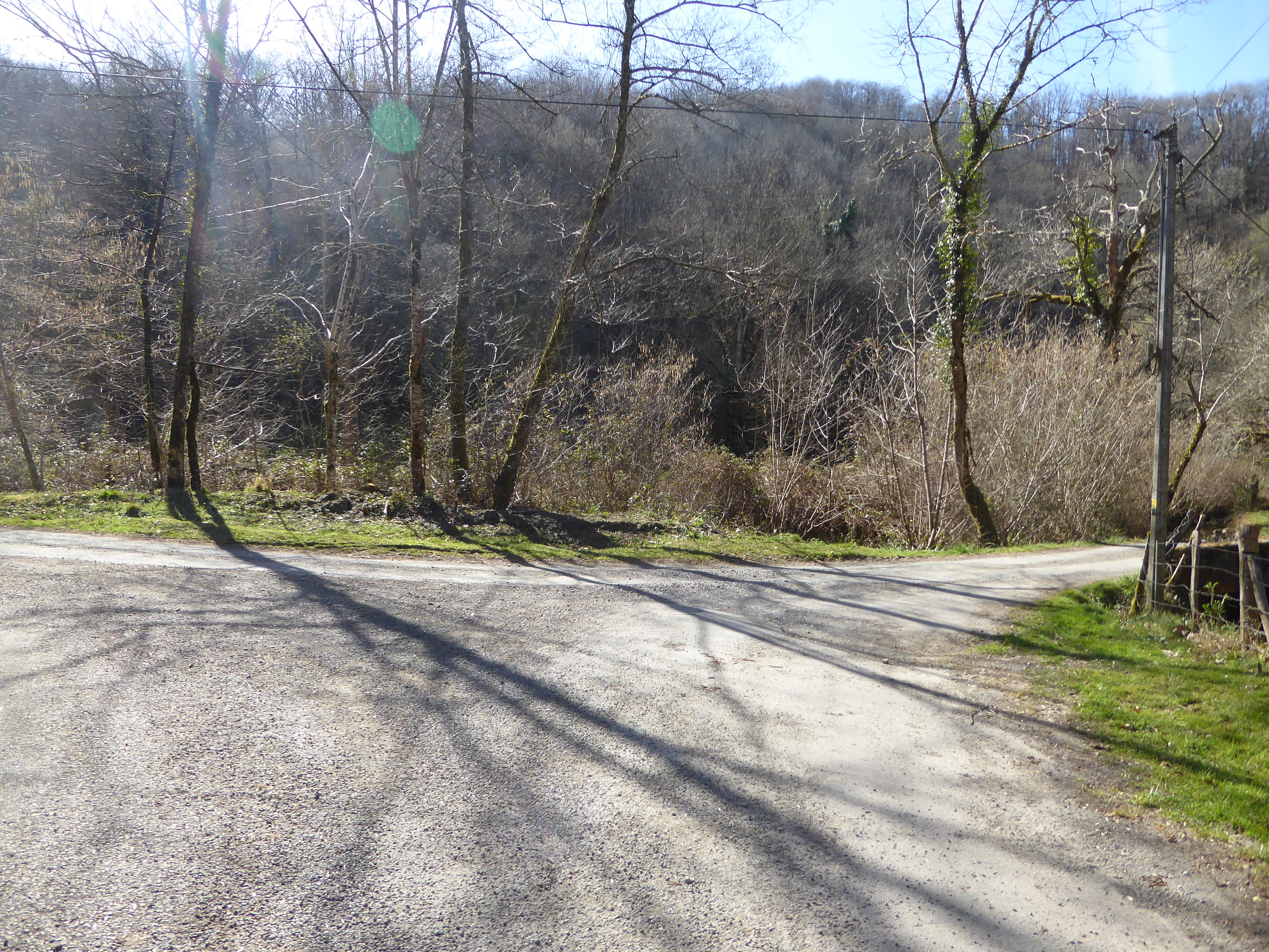 Au niveau de ce virage avant que le chemin partant sur la droite ne rentre dans un sous-bois (800 mètres après le croisement précédent), suivre le chemin dérobé descendant légèrement sur la gauche et traversant le Ruisseau d'Erretzü direction Tardets-Sorholus (attention, le chemin de droite traverse aussi ce même ruisseau ...)