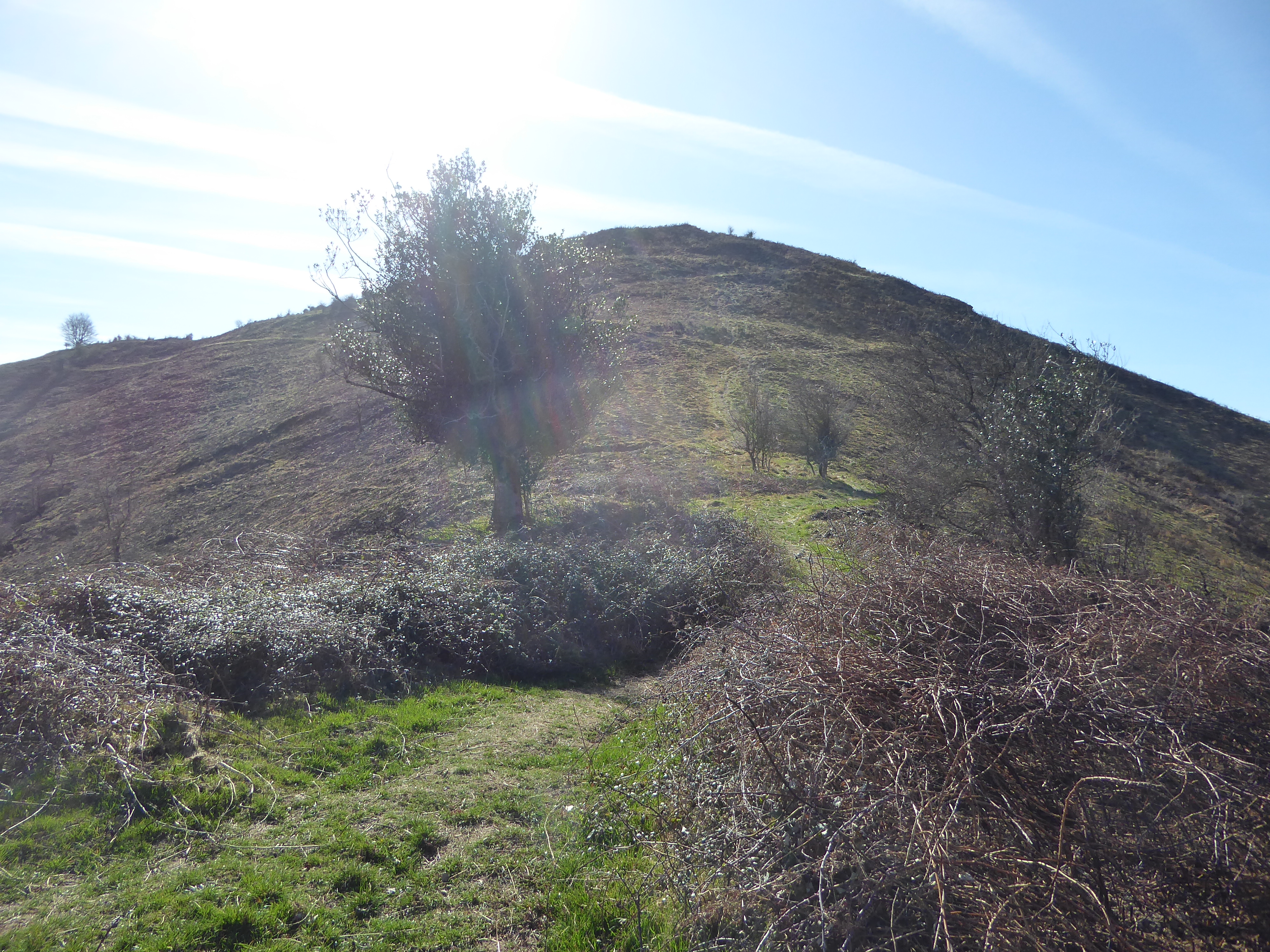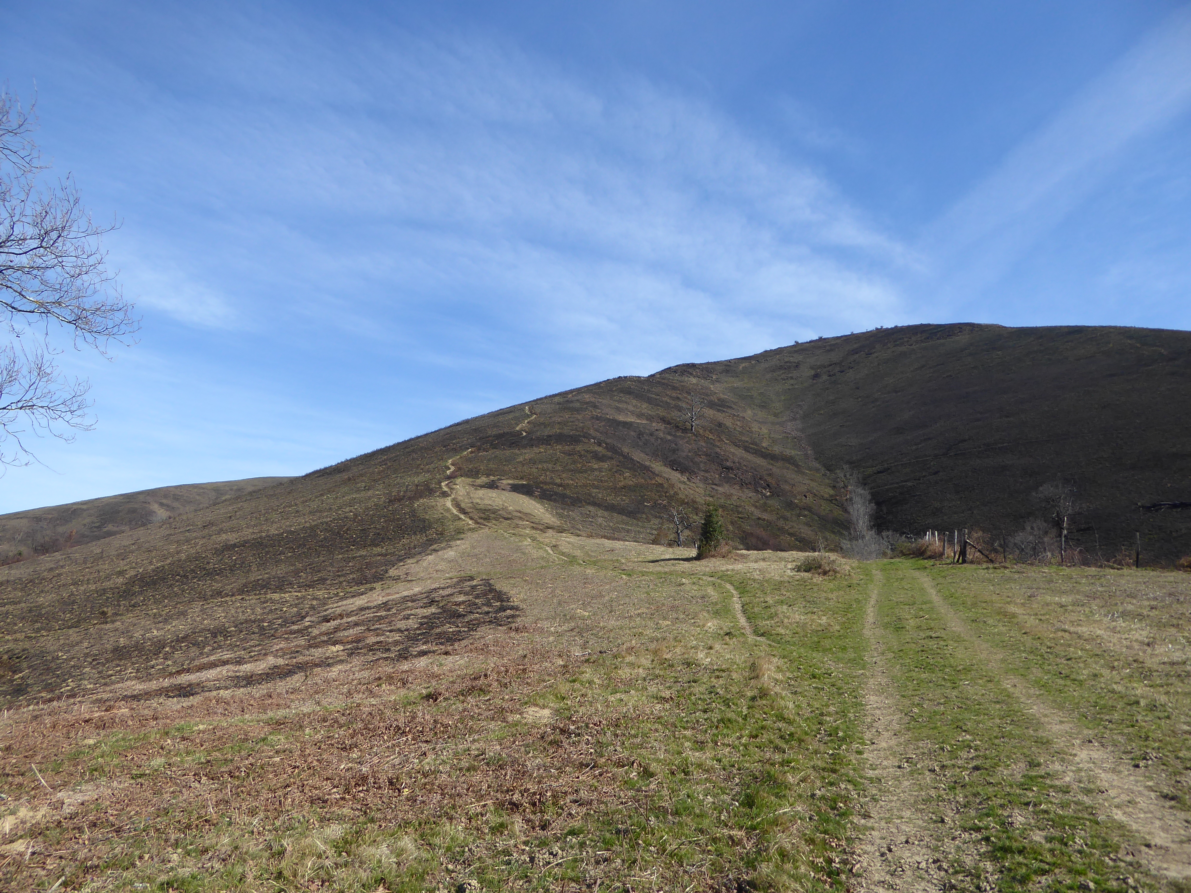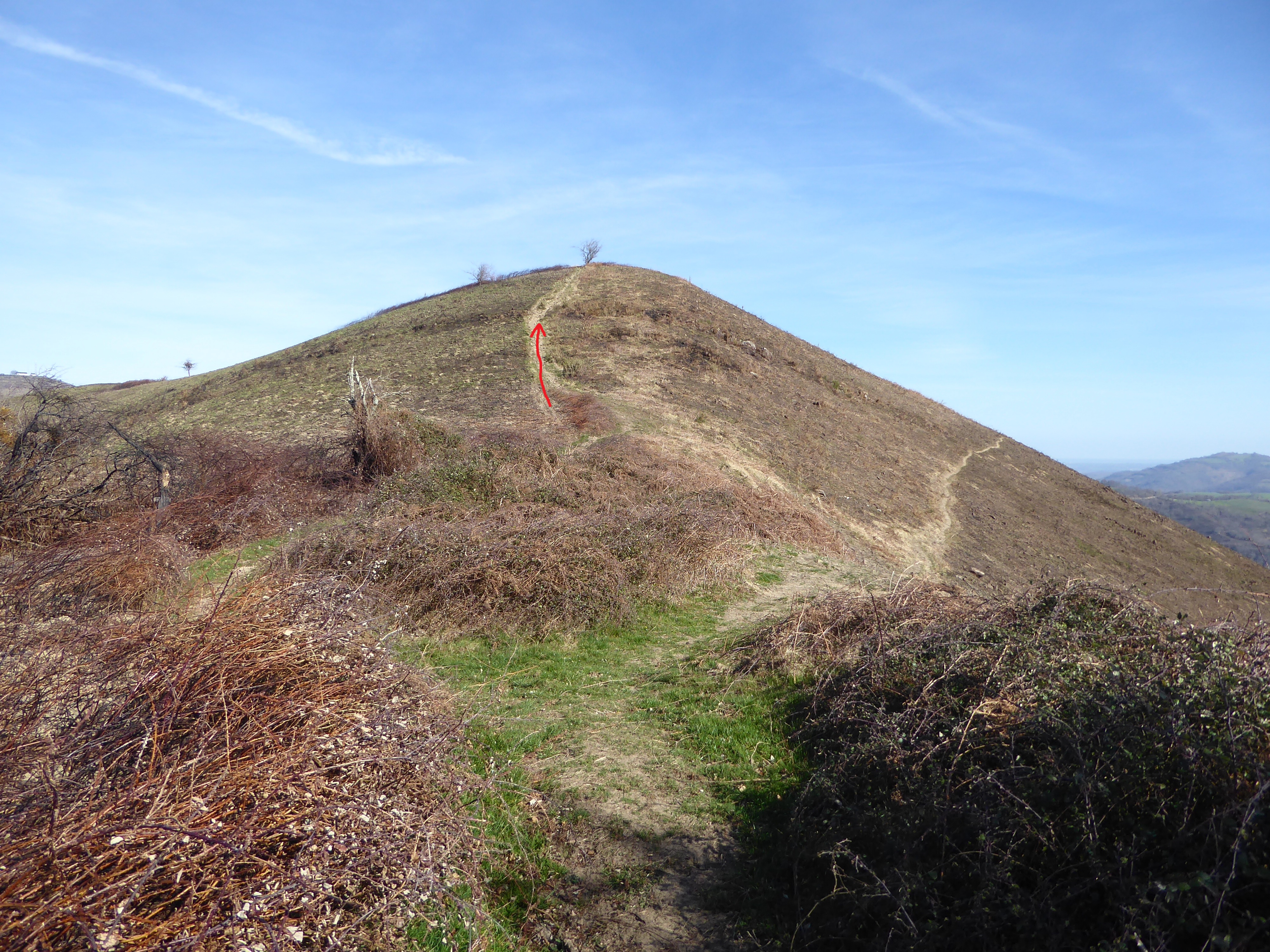 A ce croisement (50 mètres après avoir quitté le sommet), deux possibiltés : soit continuer à suivre le chemin descendant tout droit et balisé en jaune pour ceux qui ne veulent pas monter à l'Oholegitako Hegia ou soit suivre le chemin descendant sur la droite non balisé menant à l'Oholegitako Hegia ; deuxième option choisie direction Oholegitako Hegia, aucun balisage dorénavant