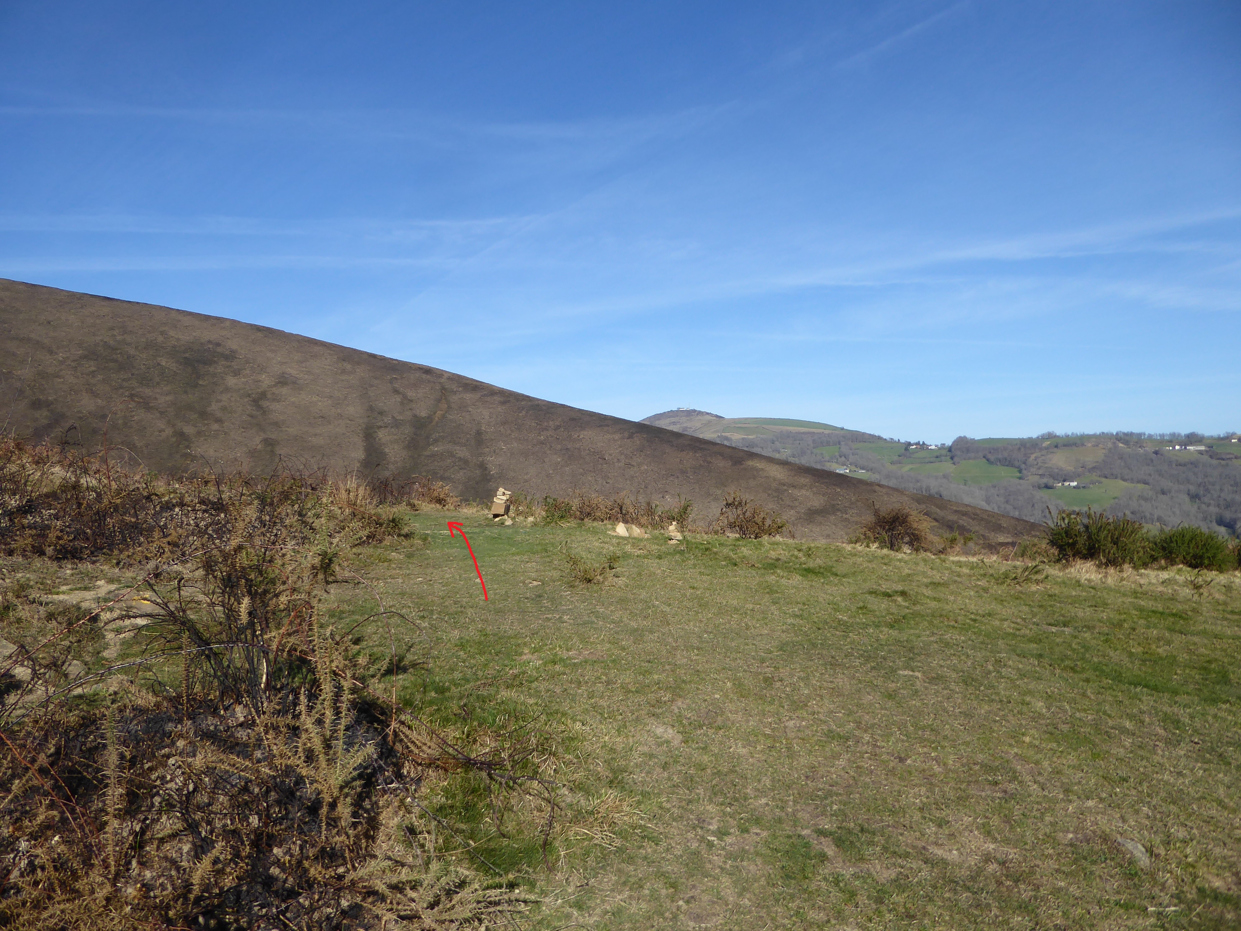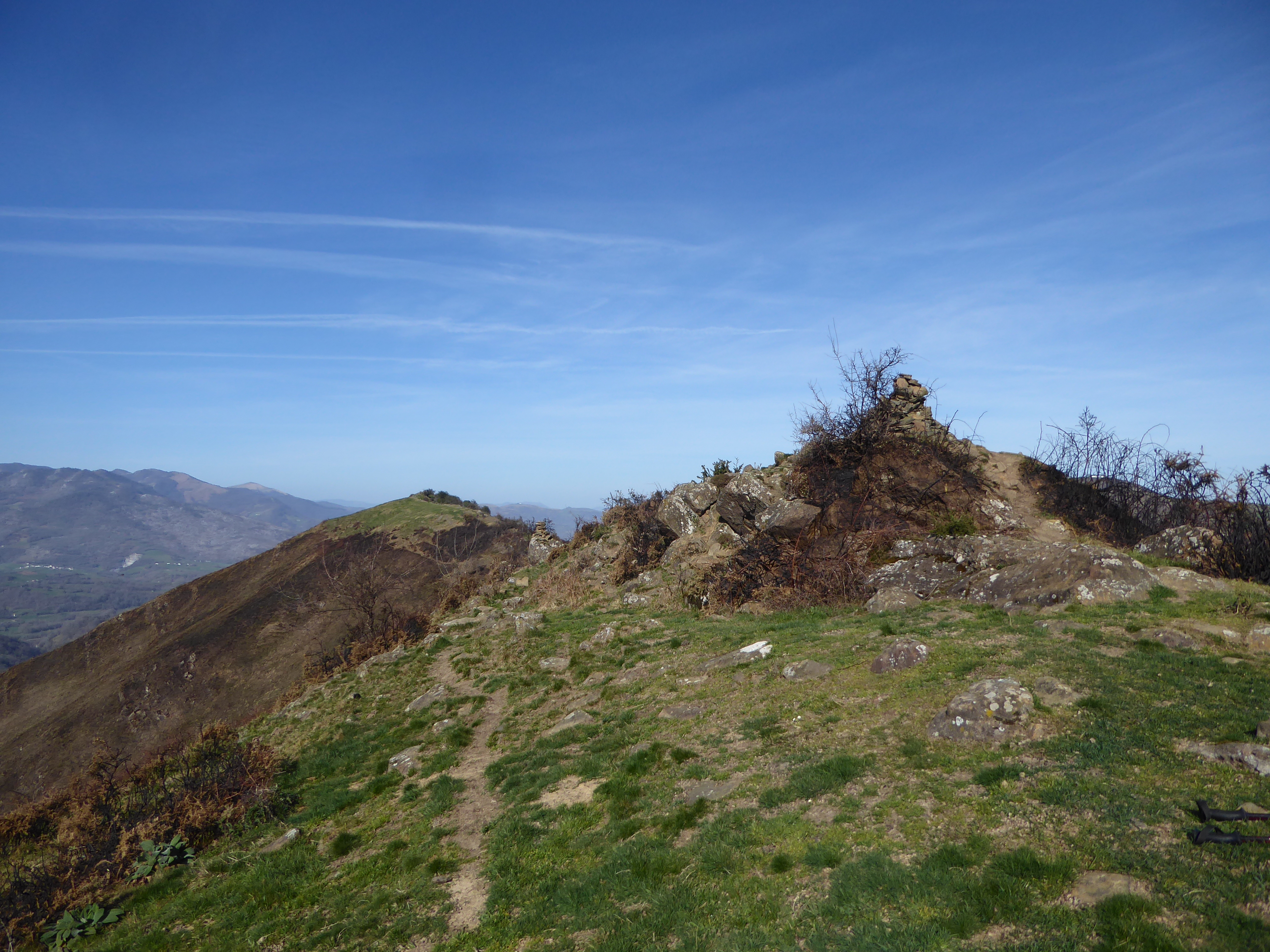 Arrivée au sommet de l'Ohgolegitako Hegia (643 m) : panorama semblable à celui du Sommet d'Erretzü masqué par ce dernier en direction de la Pierre Saint-Martin