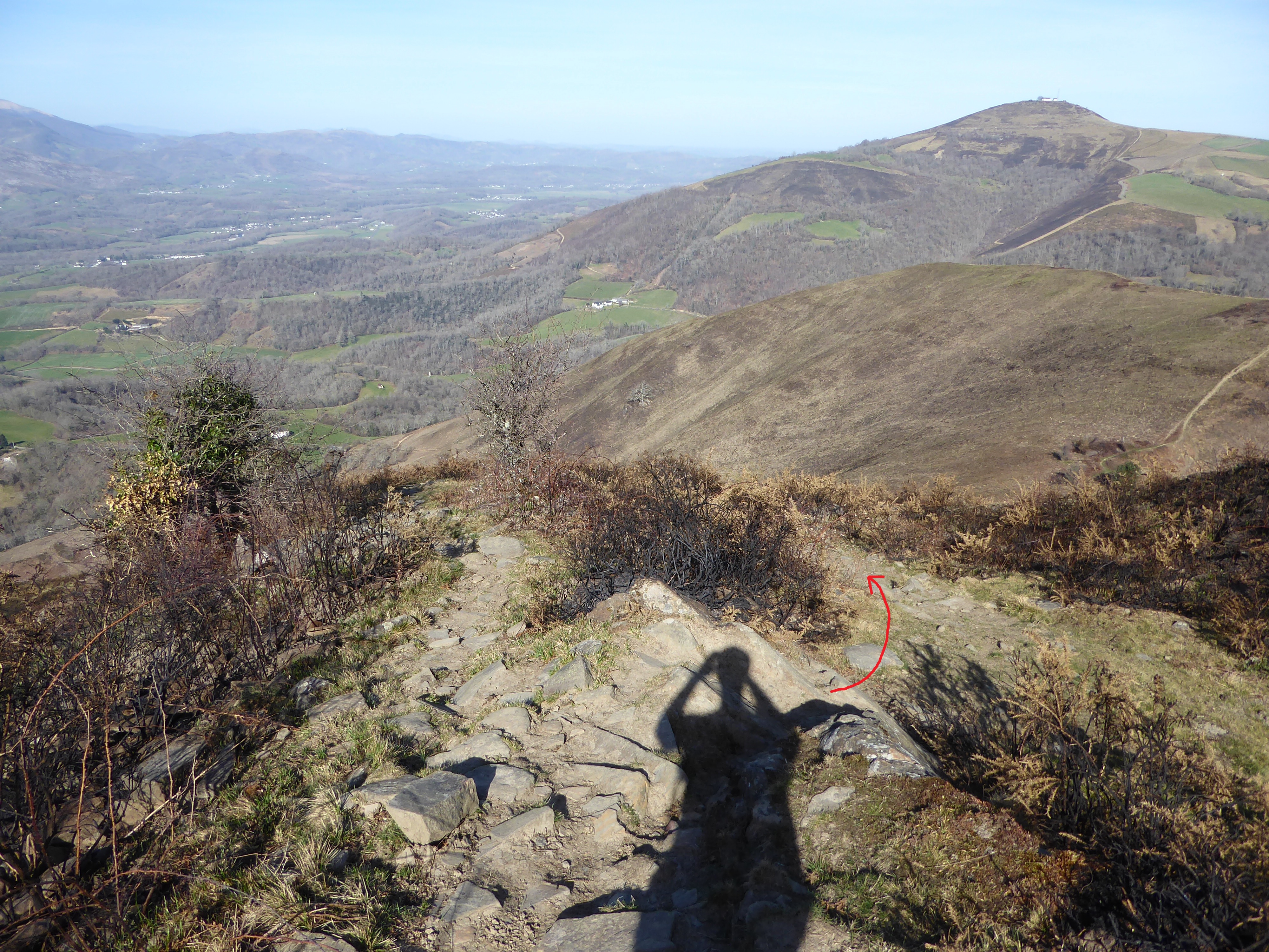 Vue arrière sur l'itinéraire de descente du Sommet d'Erretzü